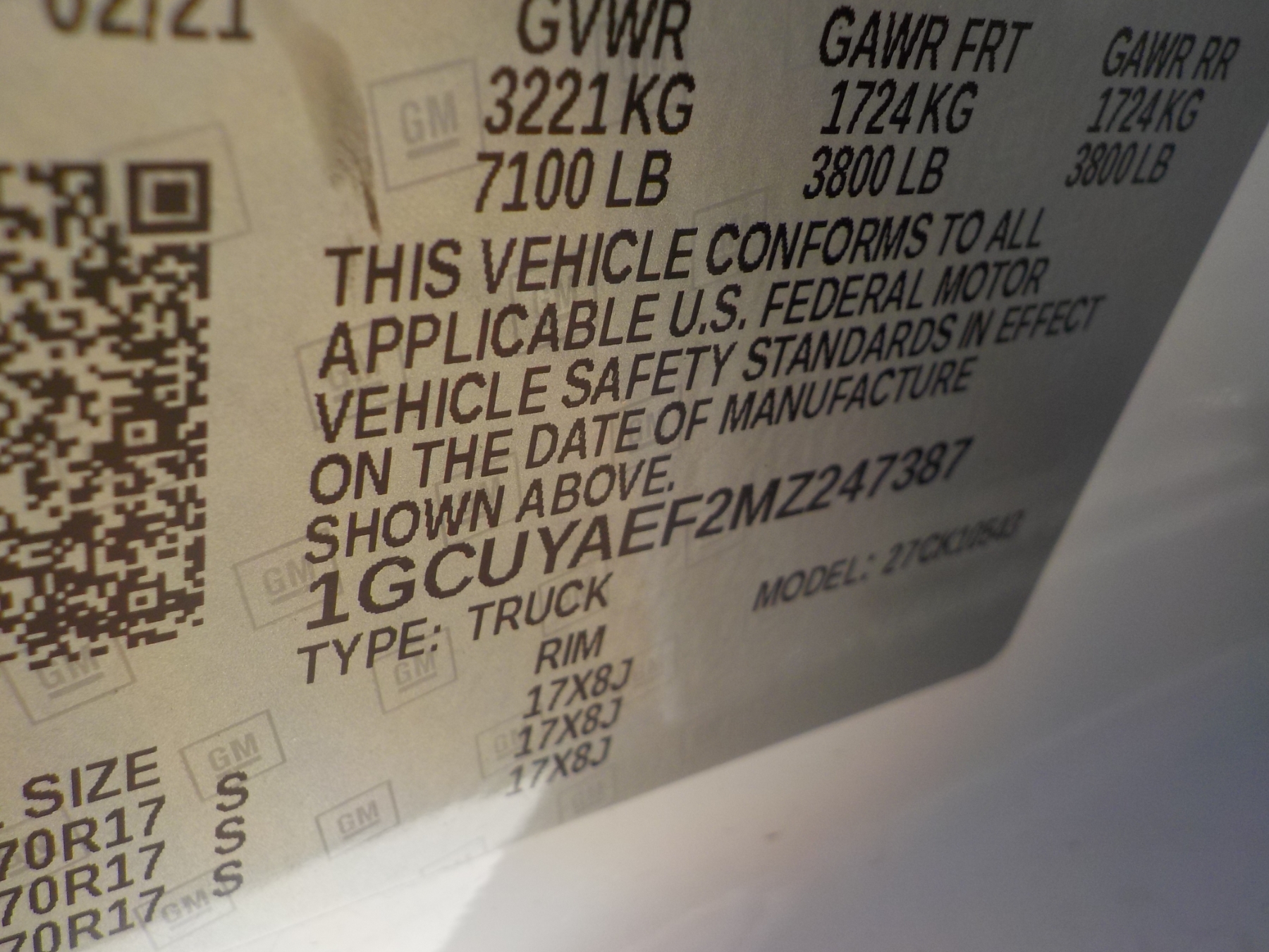 Vehicle ID Number: 1GCUYAEF2MZ247387