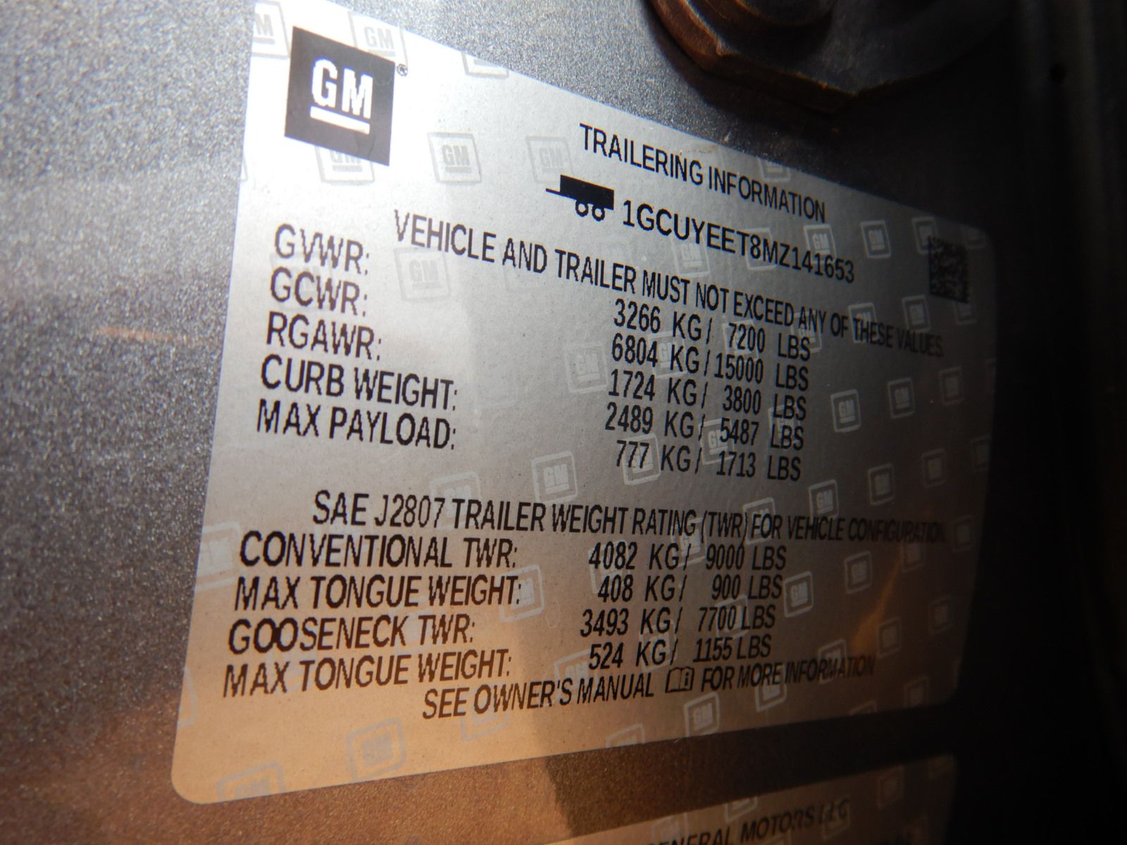 Vehicle ID Number: 1GCUYEET8MZ141653