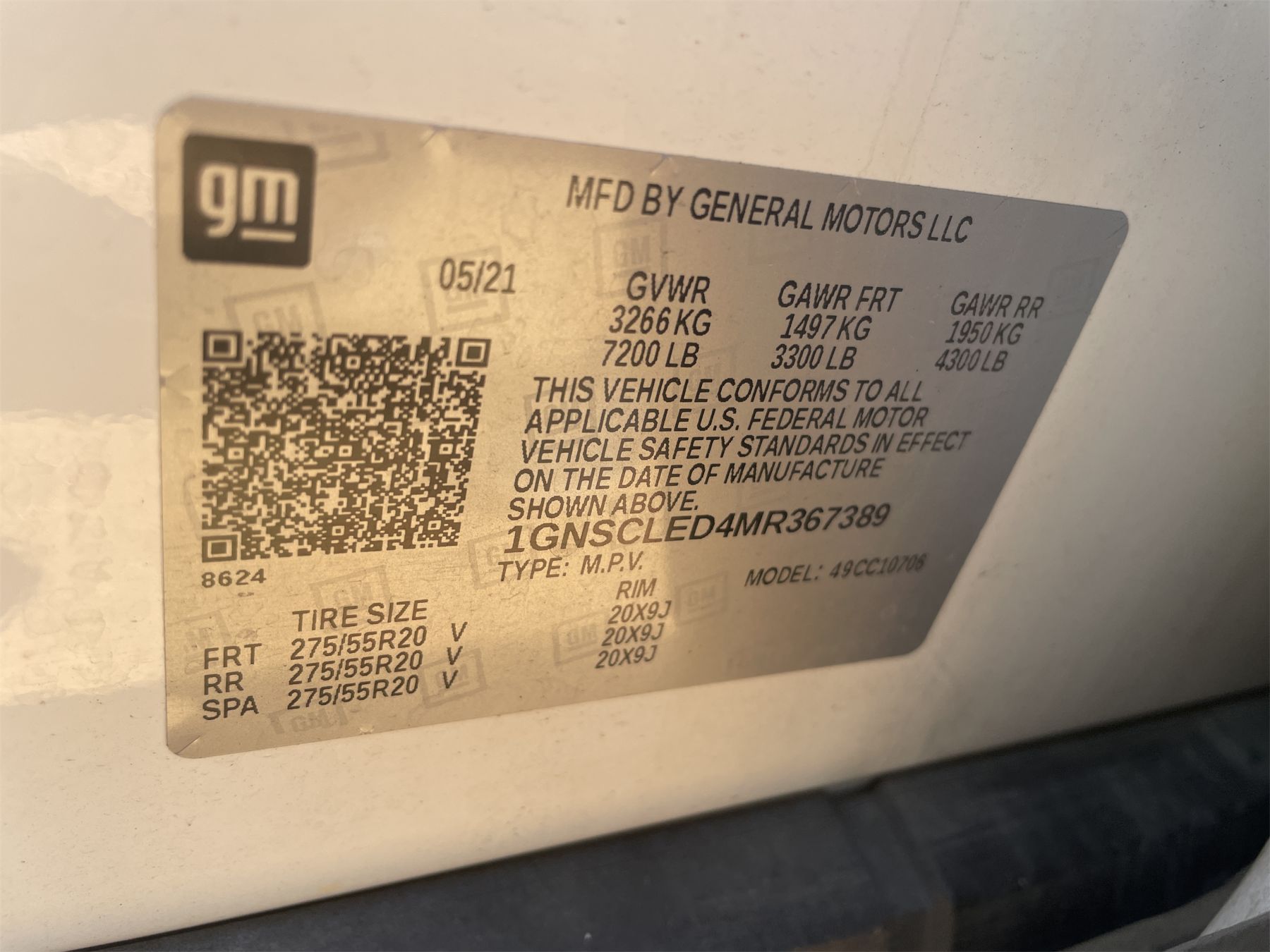 Vehicle ID Number: 1GNSCLED4MR367389