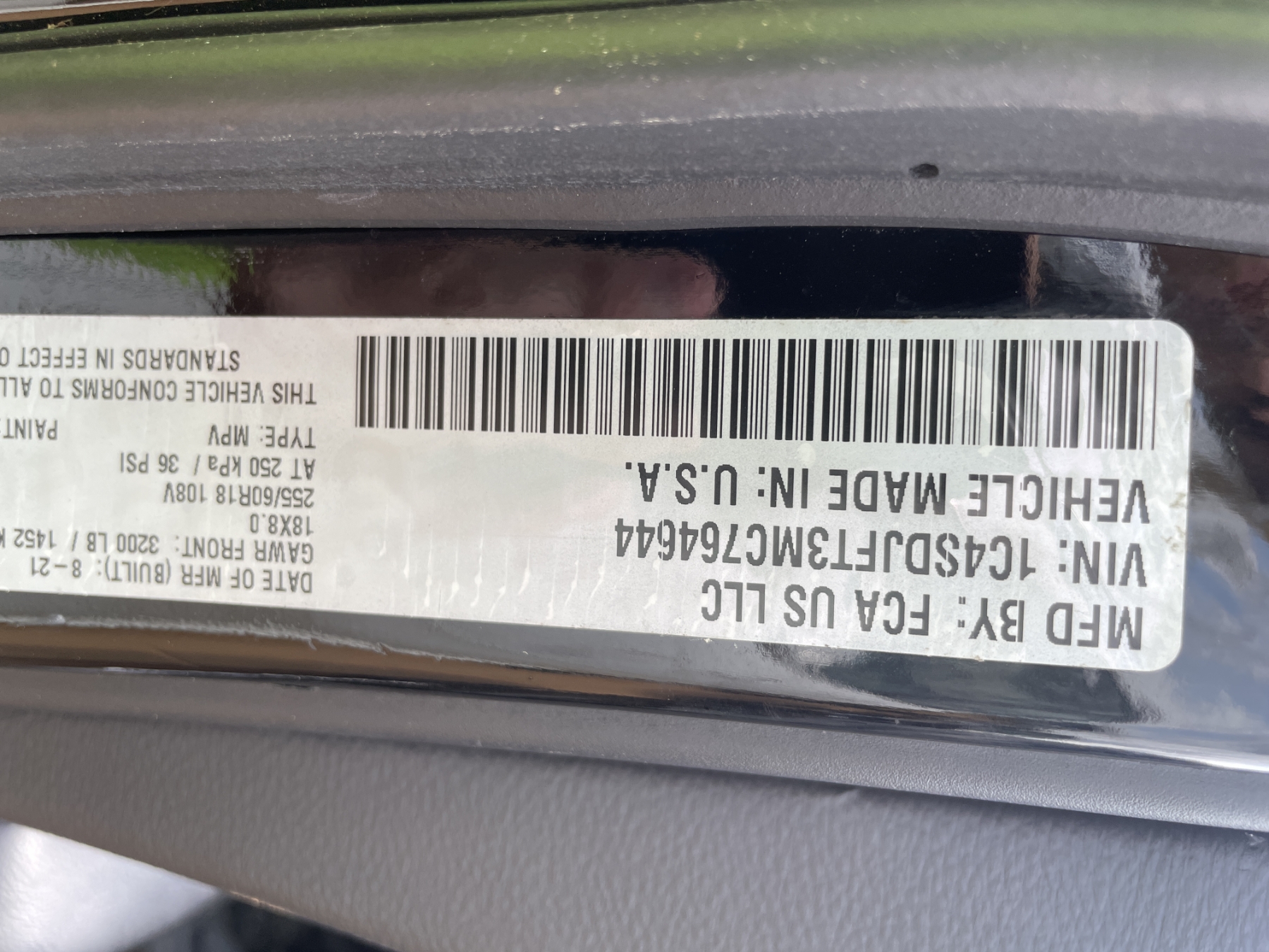 Vehicle ID Number: 1C4SDJFT3MC764644