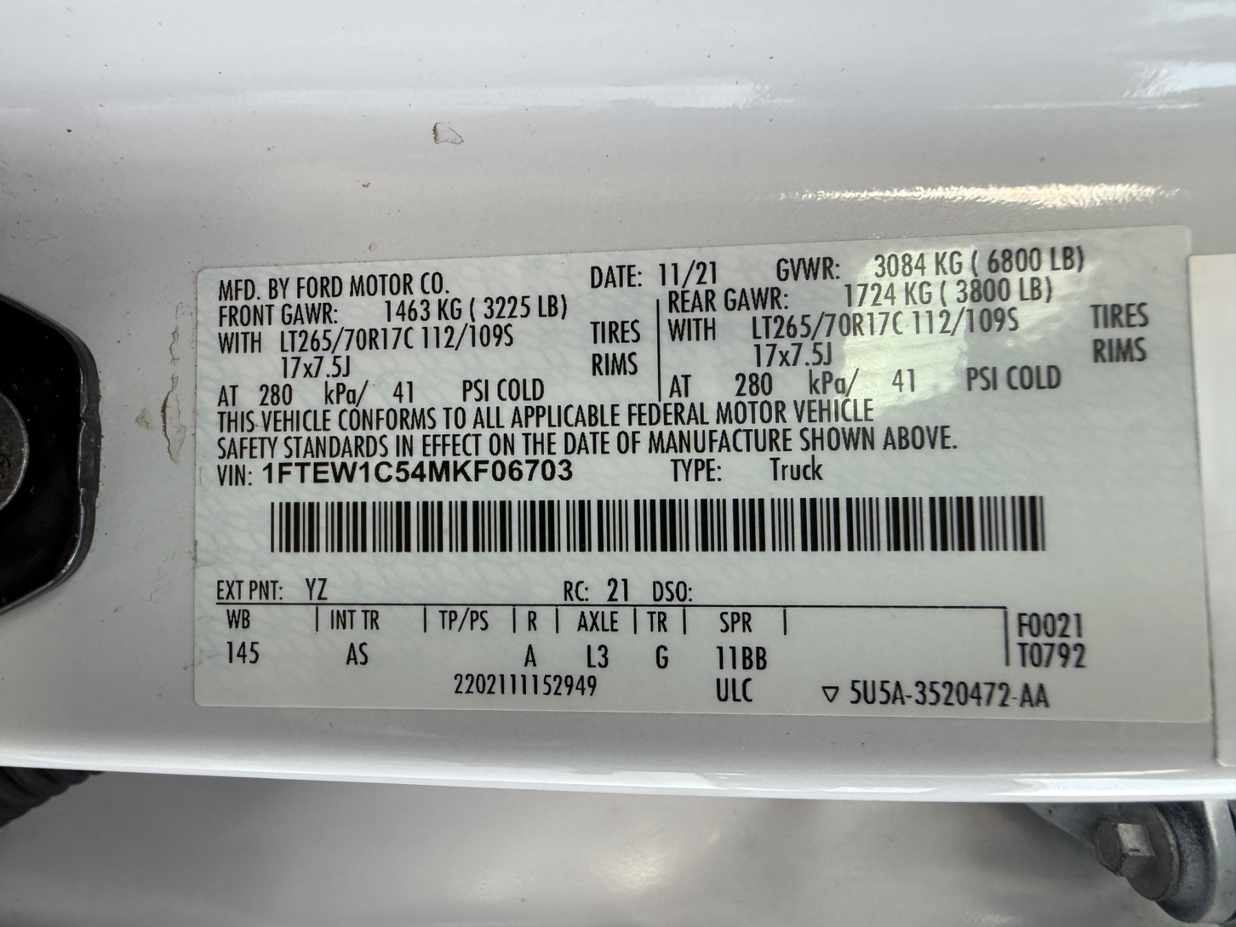 Vehicle ID Number: 1FTEW1C54MKF06703