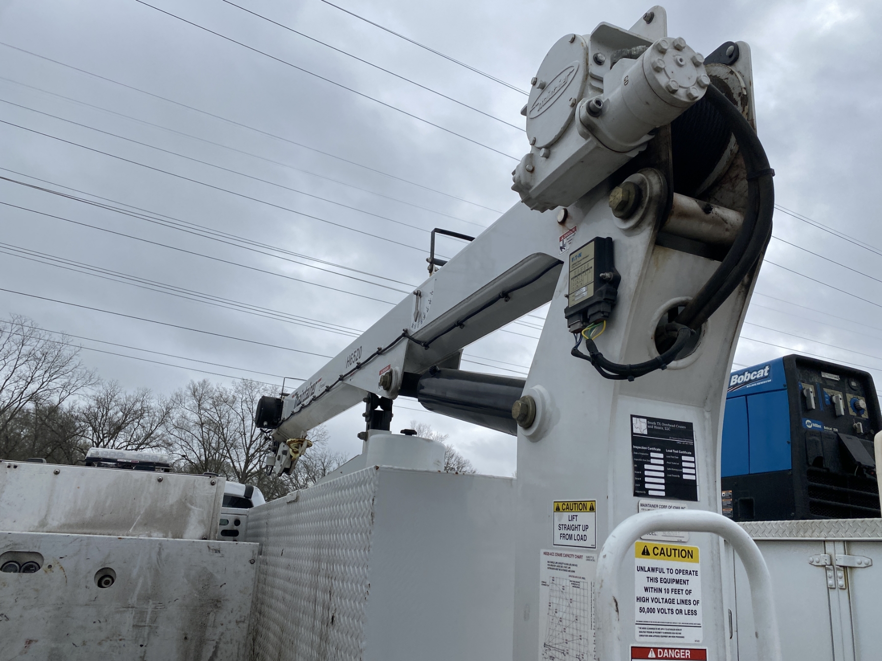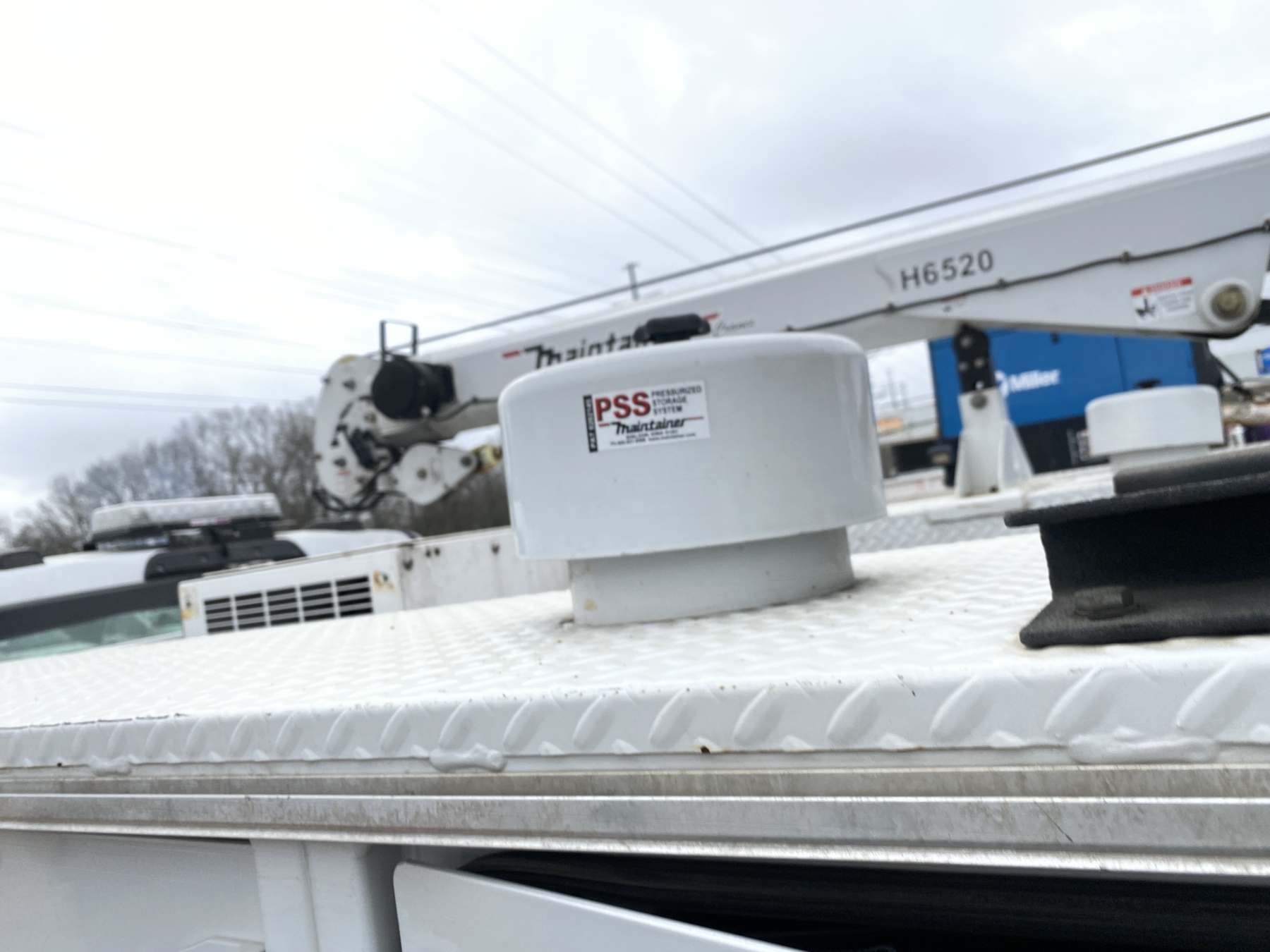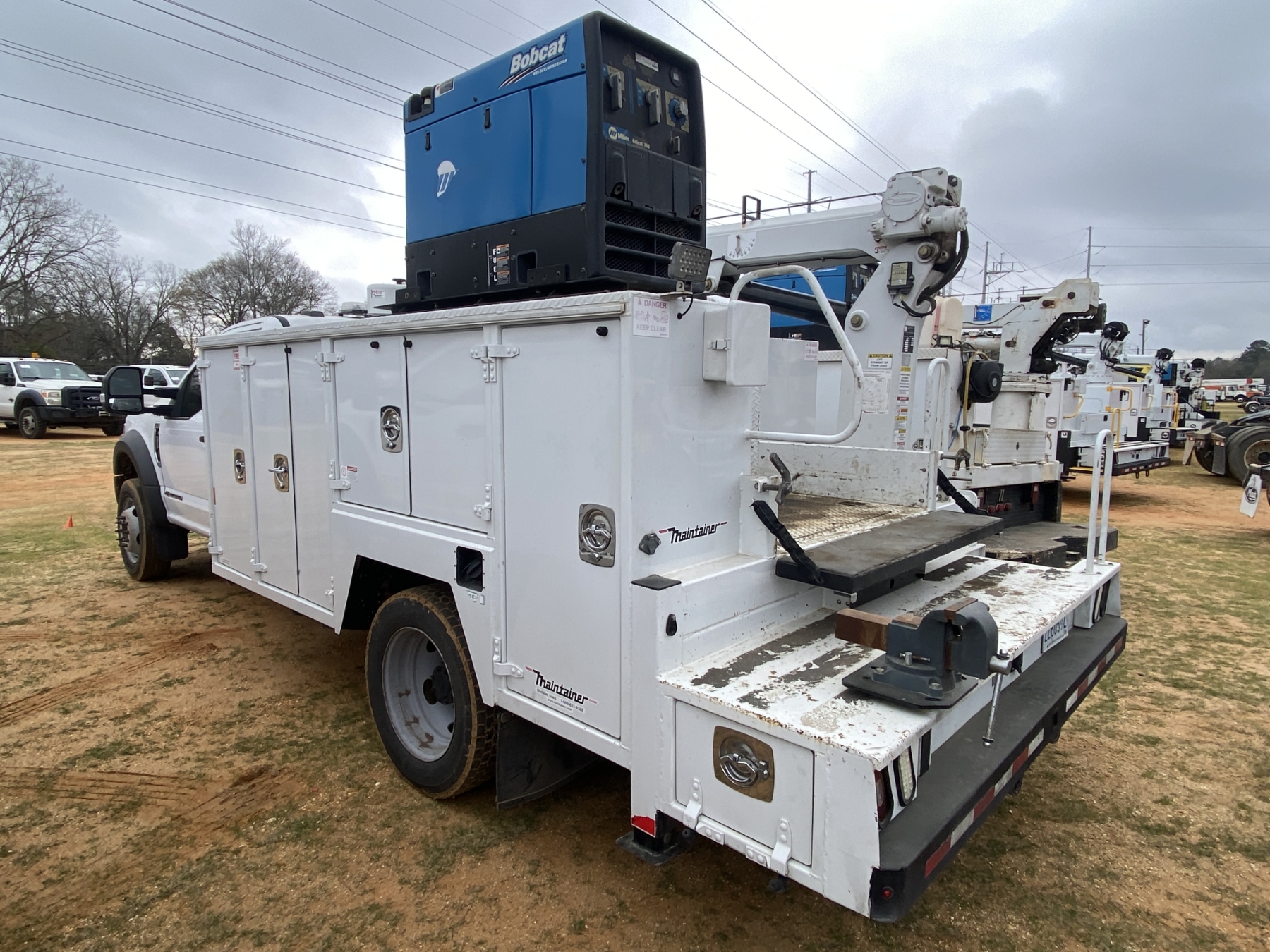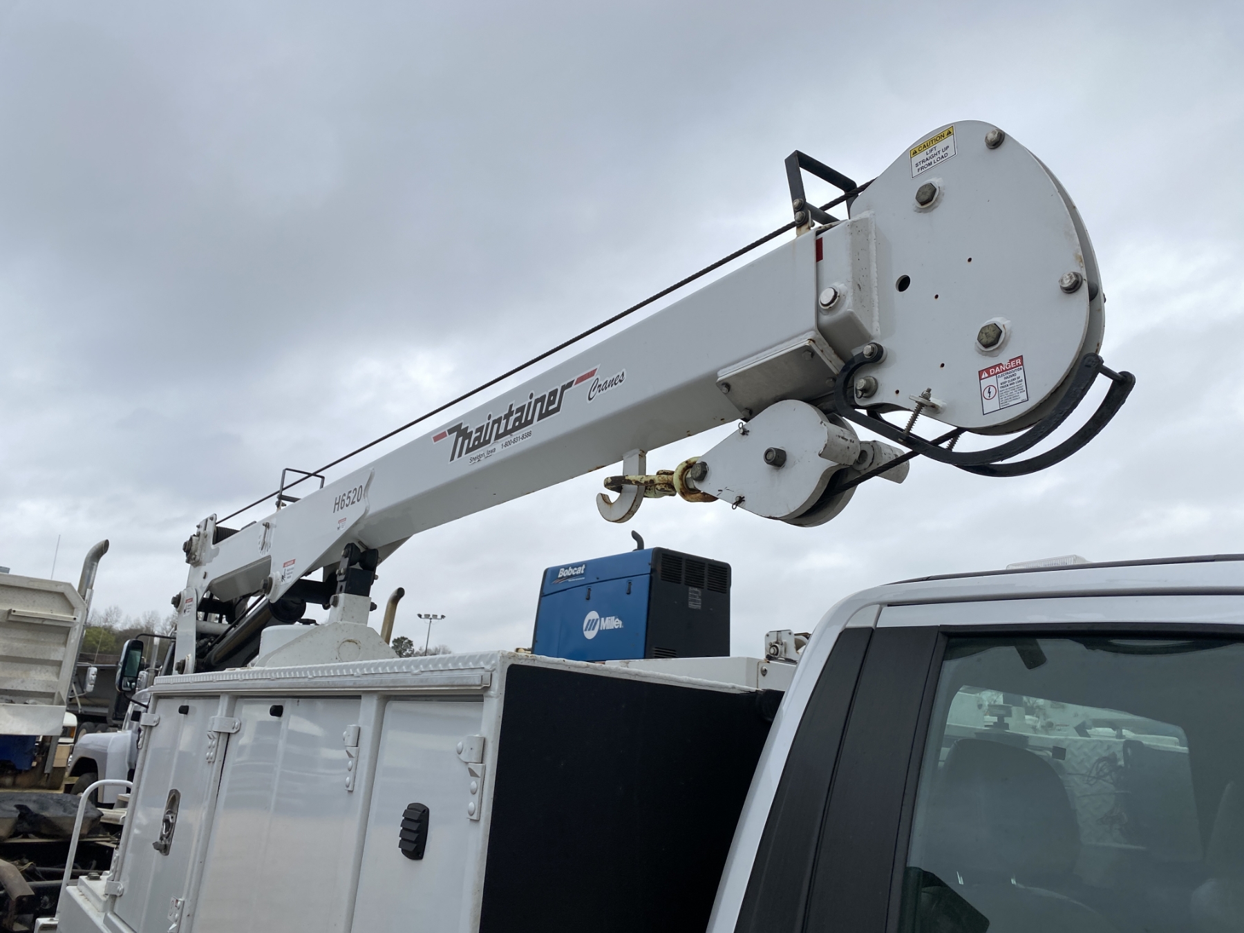 4x4, Power Stroke diesel, A/T, Maintainer service body, Maintainer H6520 crane, Vanair hyd air compressor, Miller Bobcat 260 welder