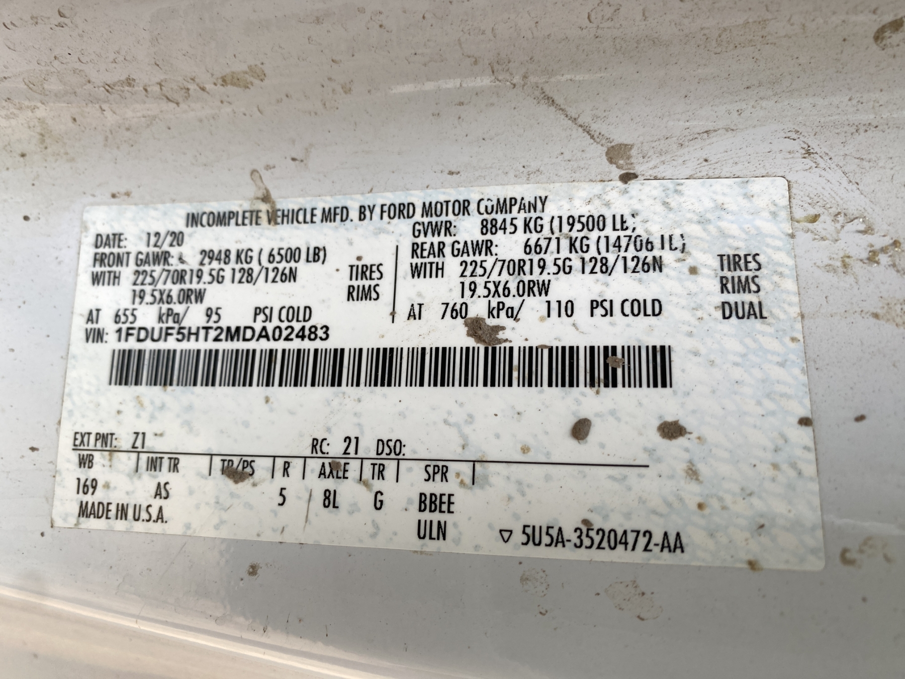 Vehicle ID Number: 1FDUF5HT2MDA02483