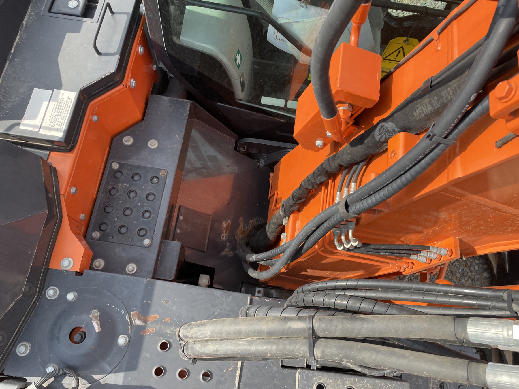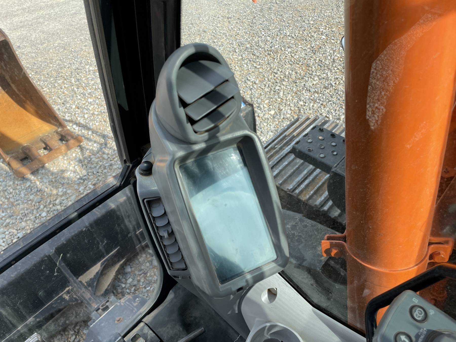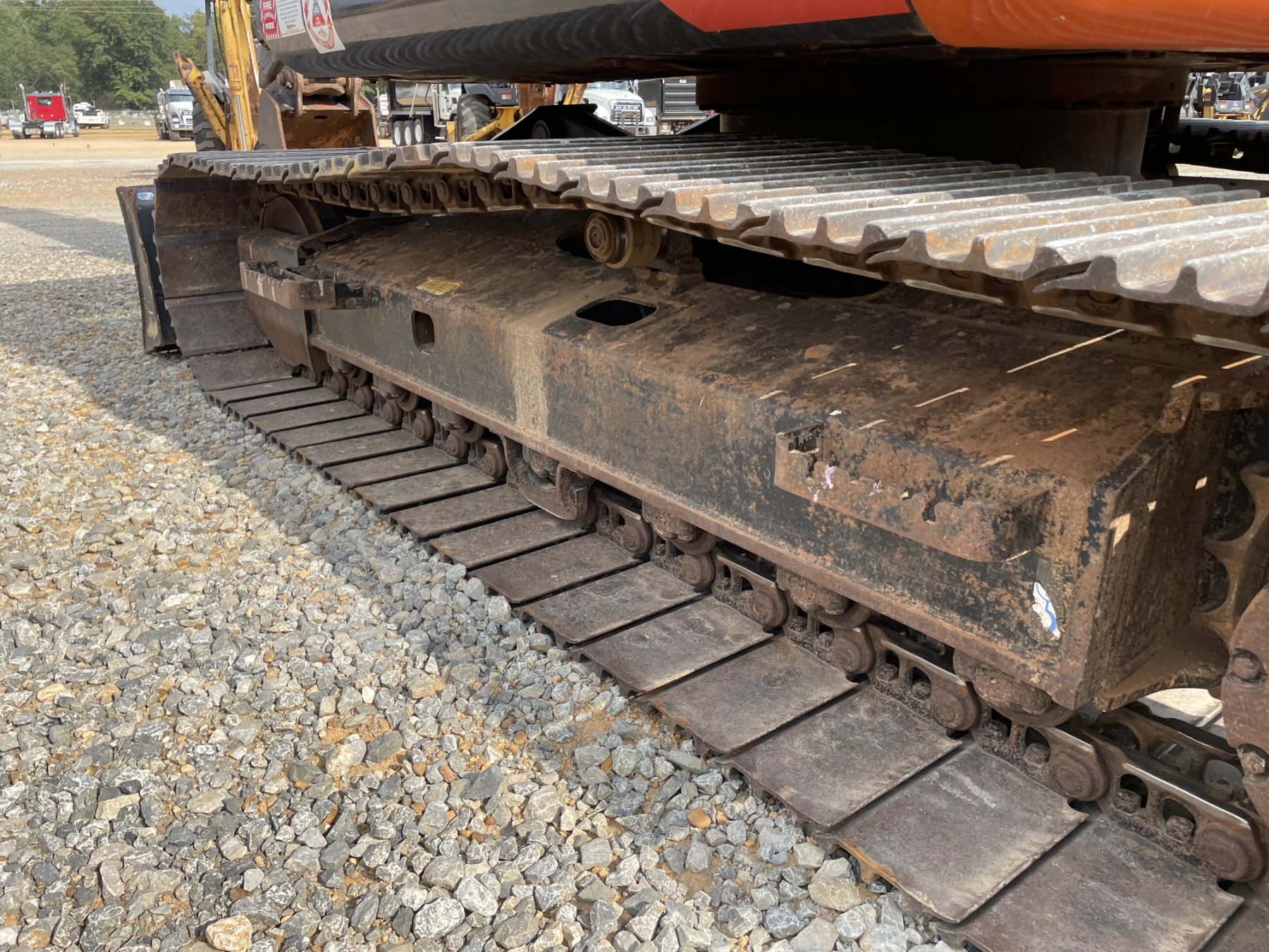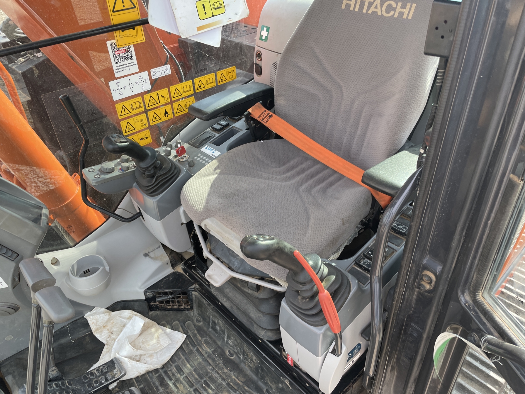 9' 9" stick, 24" bucket, coupler, aux hyd, blade, cab, A/C