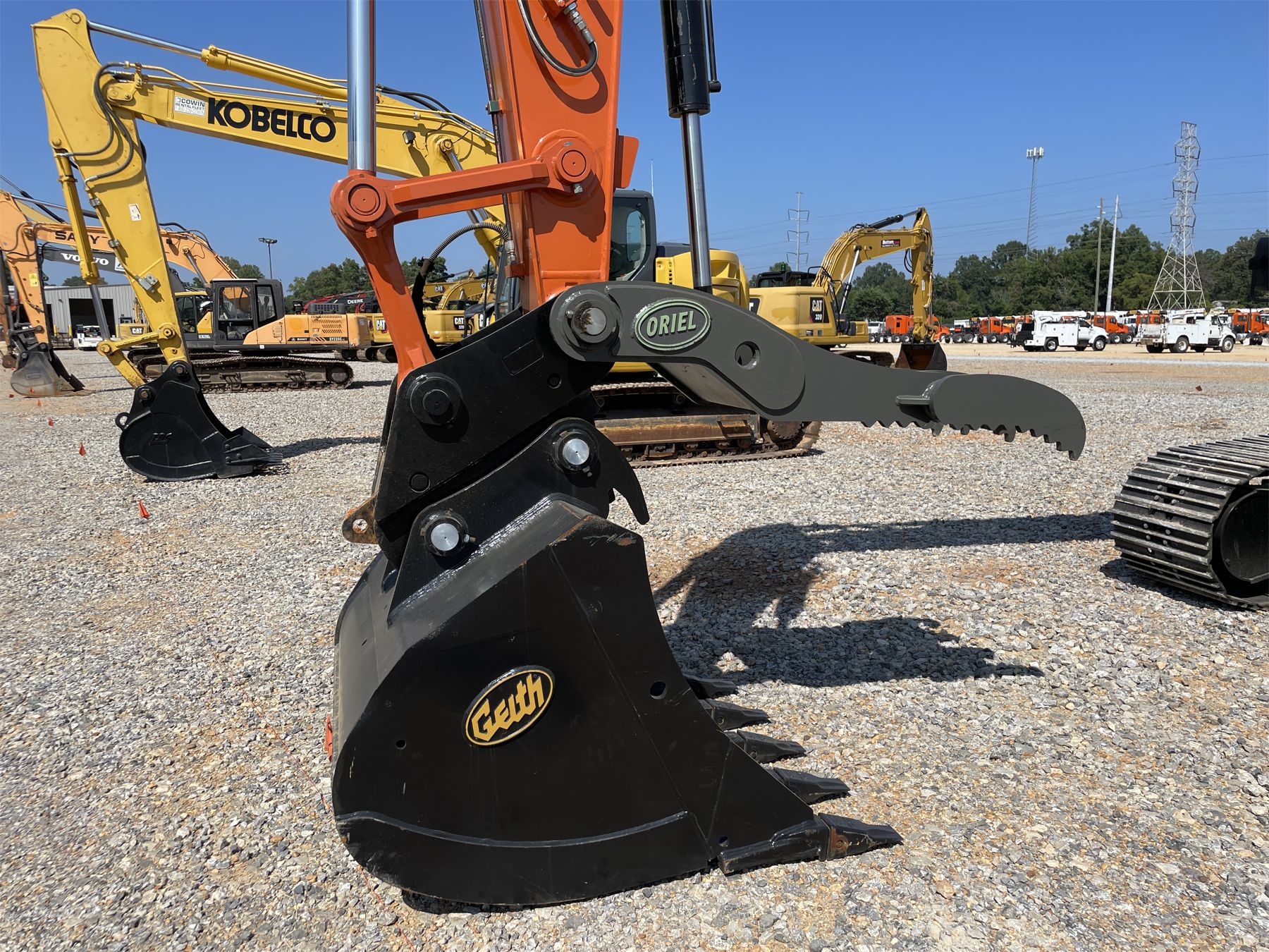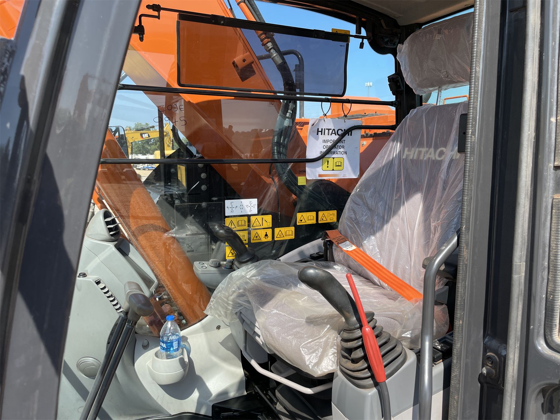 9' 6" stick, 54" bucket, coupler, hyd thumb, aux hyd, cab, A/C