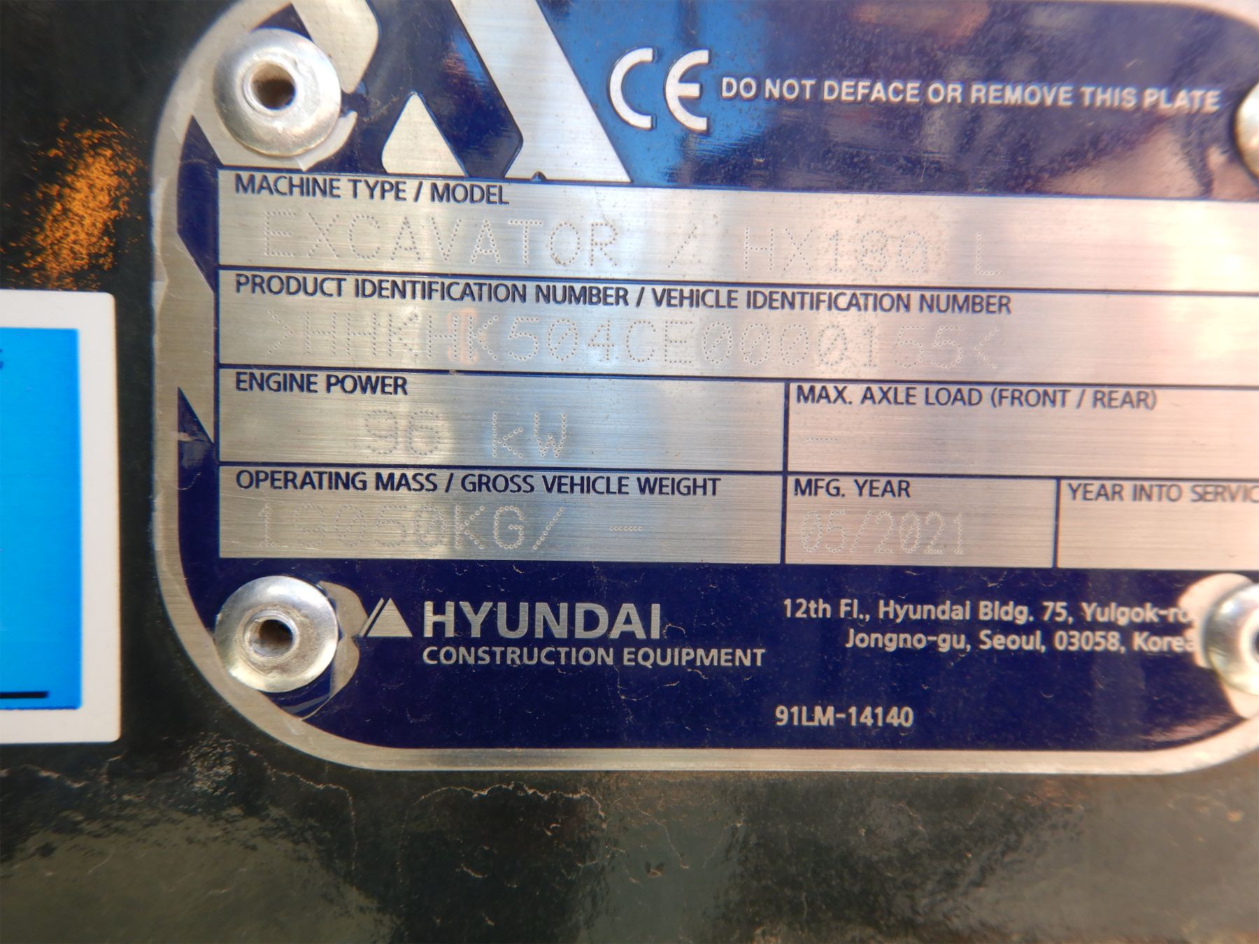2021 HYUNDAI HX180L Excavator