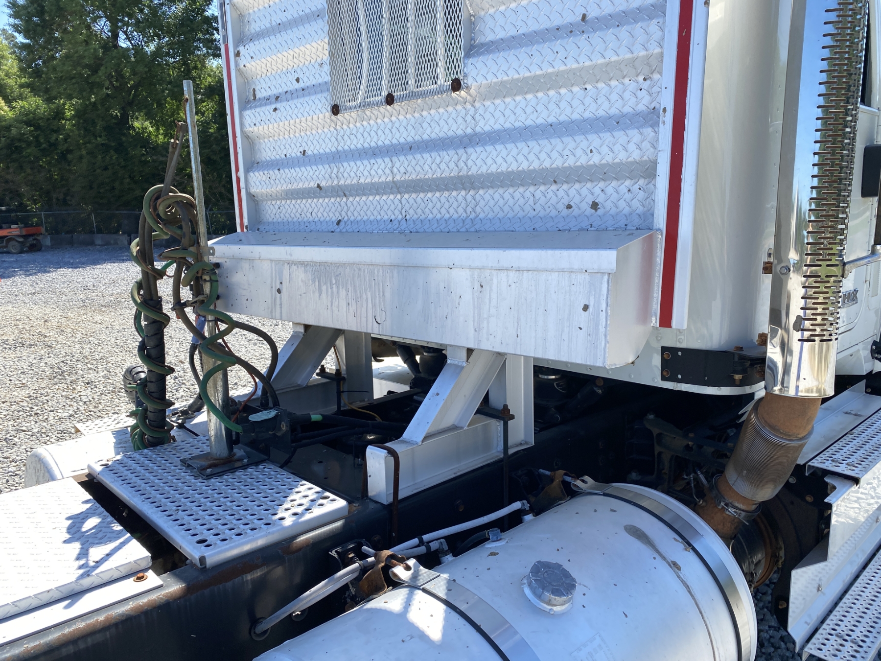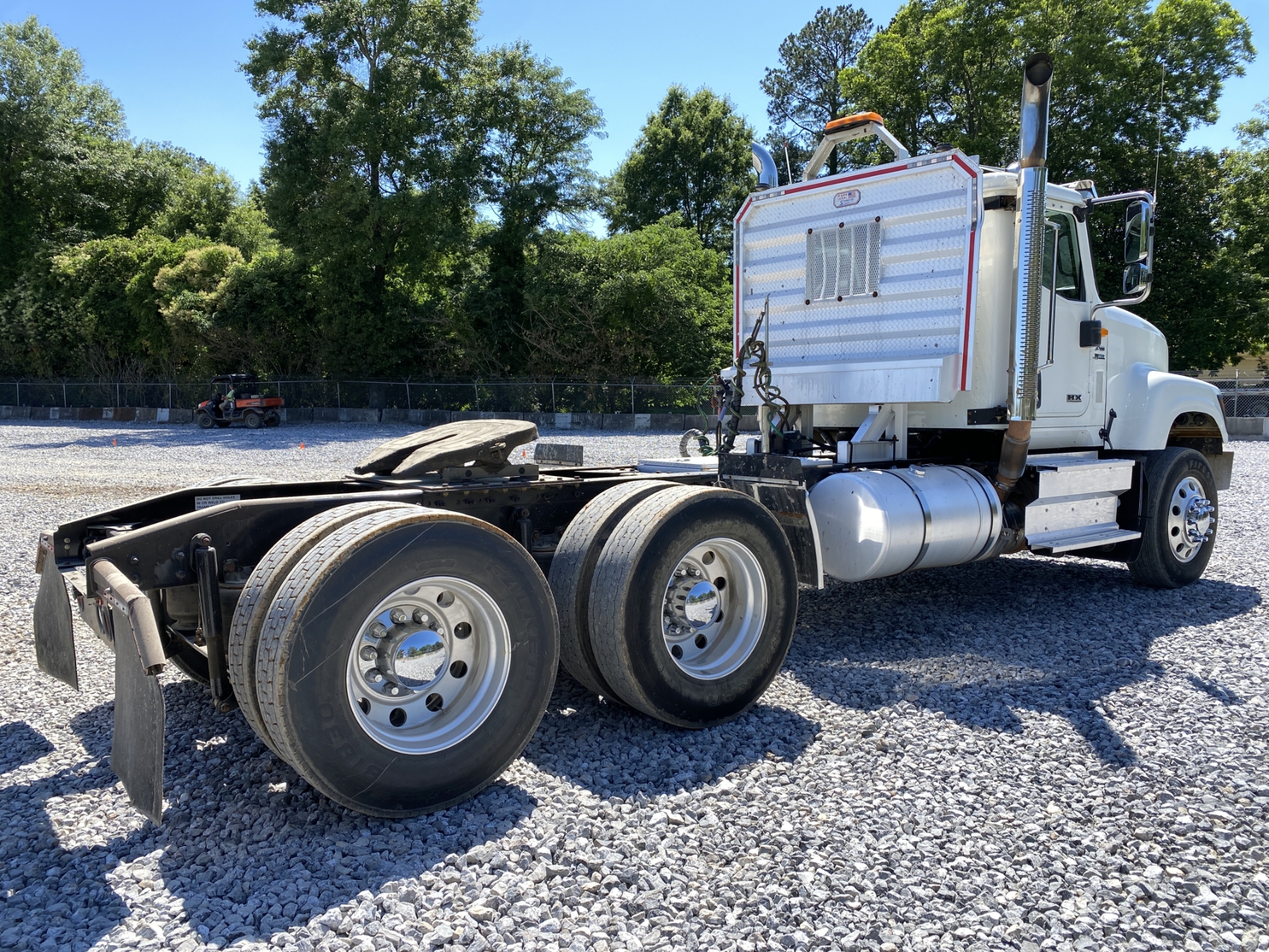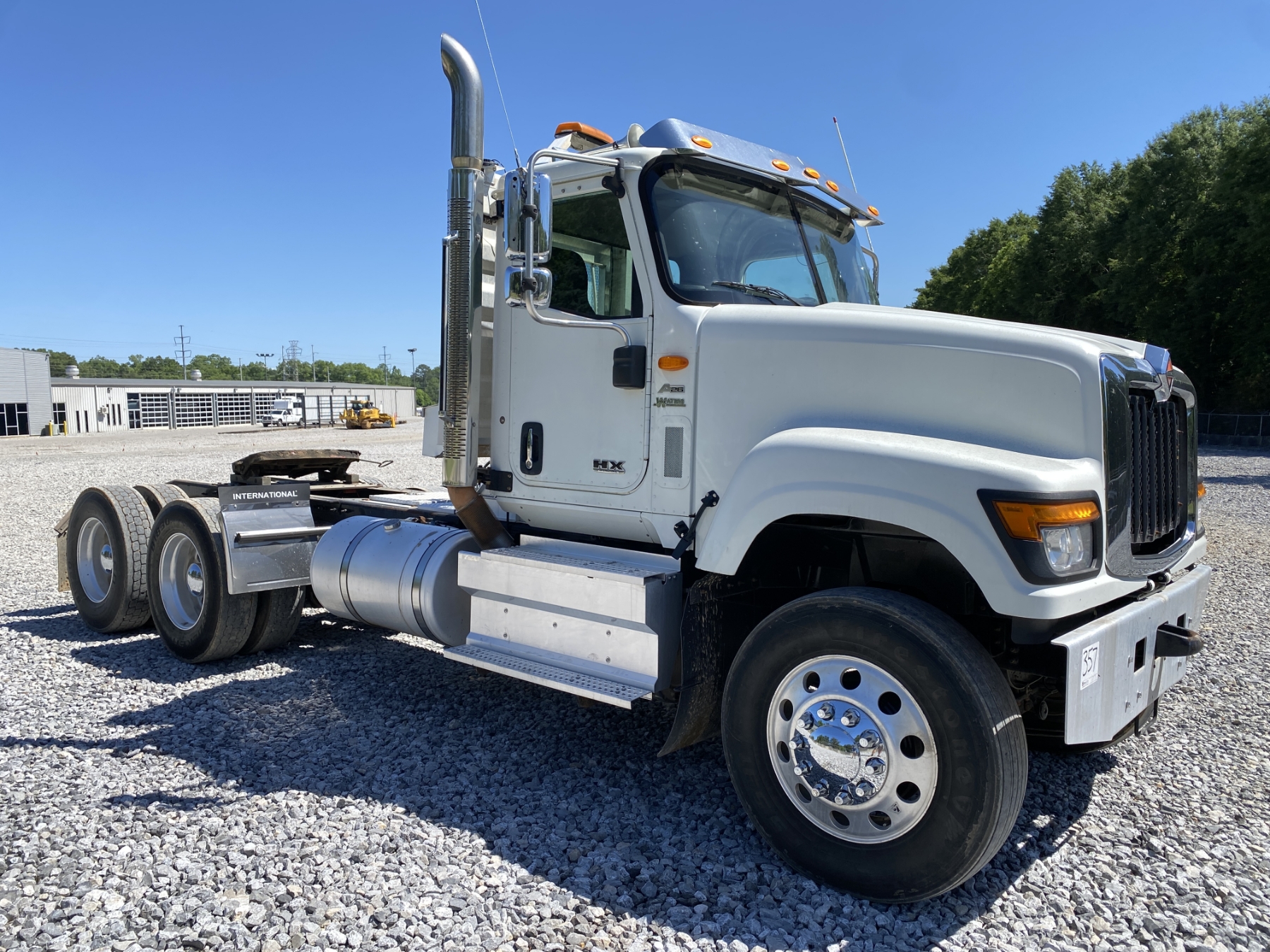 T/A, 500 HP International A26 engine, 13 speed A/T, 46K rears, air ride, 13,200 lb. front, 216" W/B, Vulcan V320 scale system, alum headache rack, 11R24.5 tires, all alum