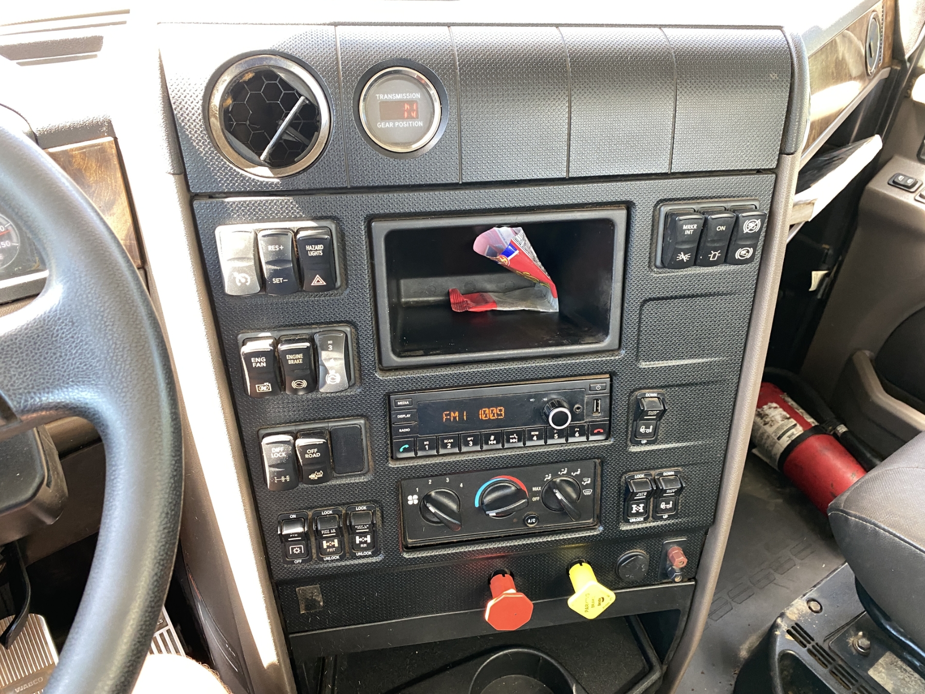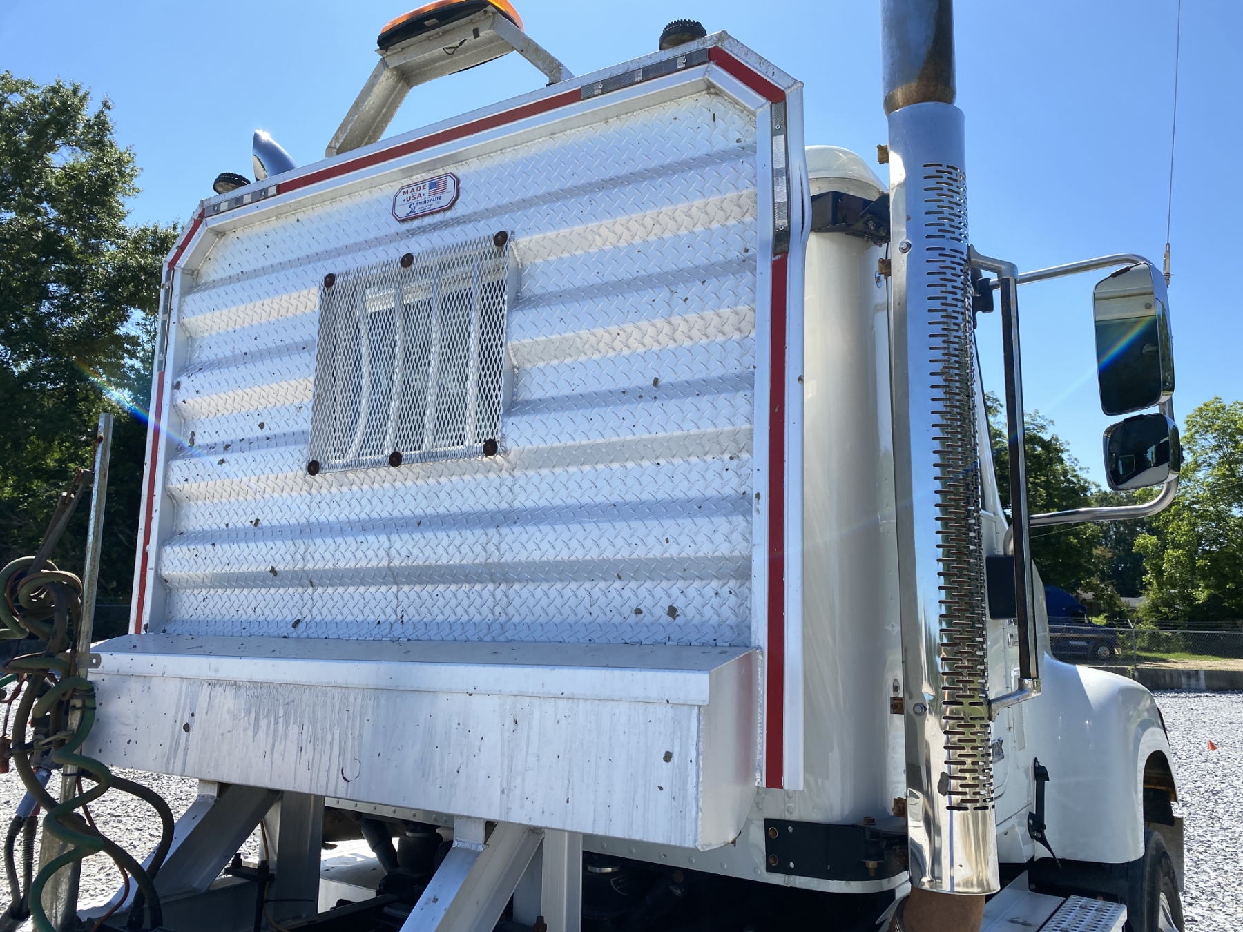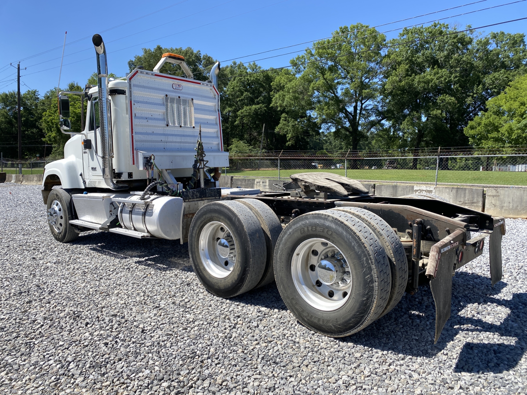 T/A, 500 HP International A26 engine, 13 speed A/T, 46K rears, air ride, 13,200 lb. front, 216" W/B, Vulcan V320 scale system, alum headache rack, 11R24.5 tires, all alum