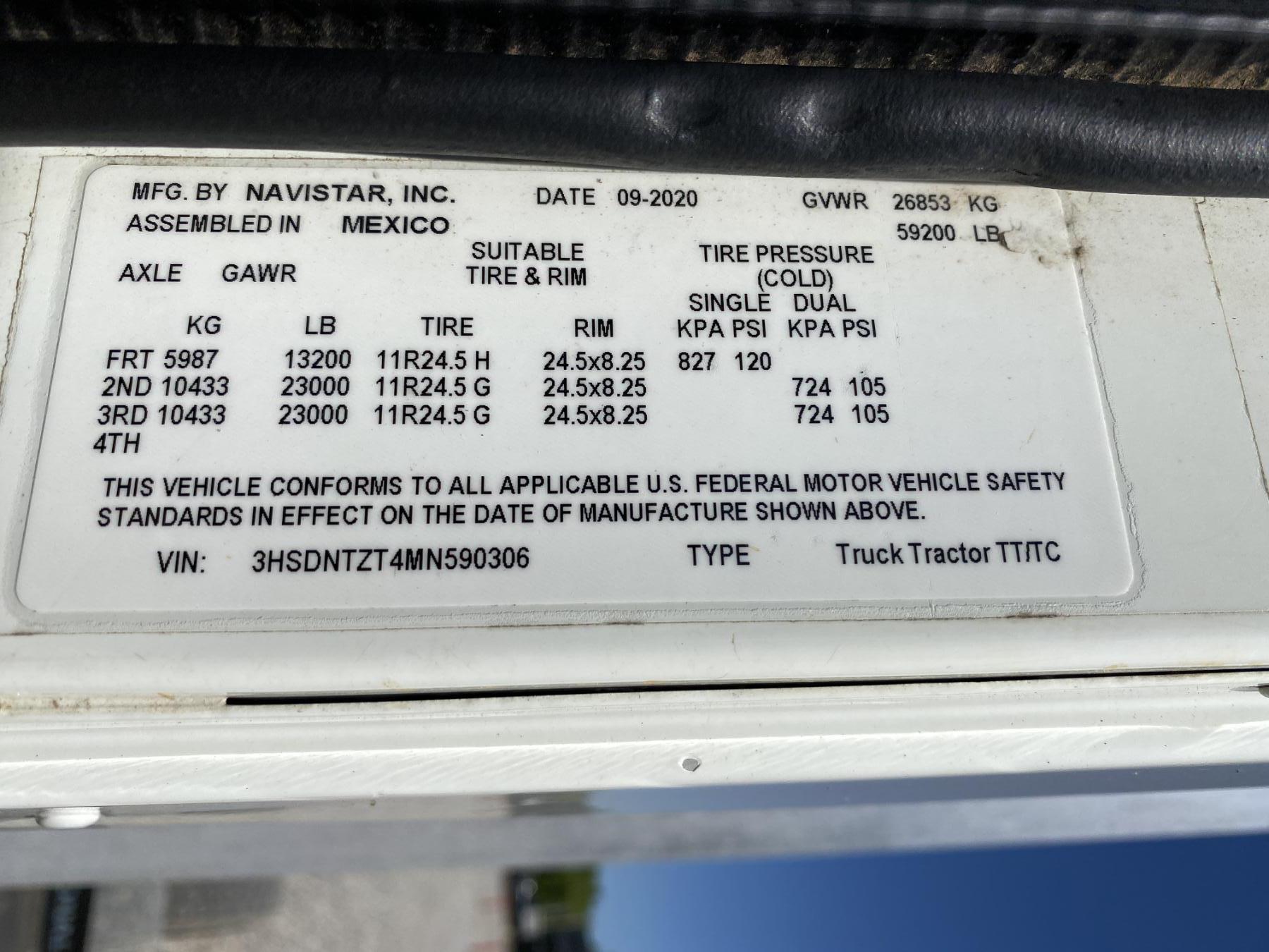 Vehicle ID Number: 3HSDNTZT4MN590306