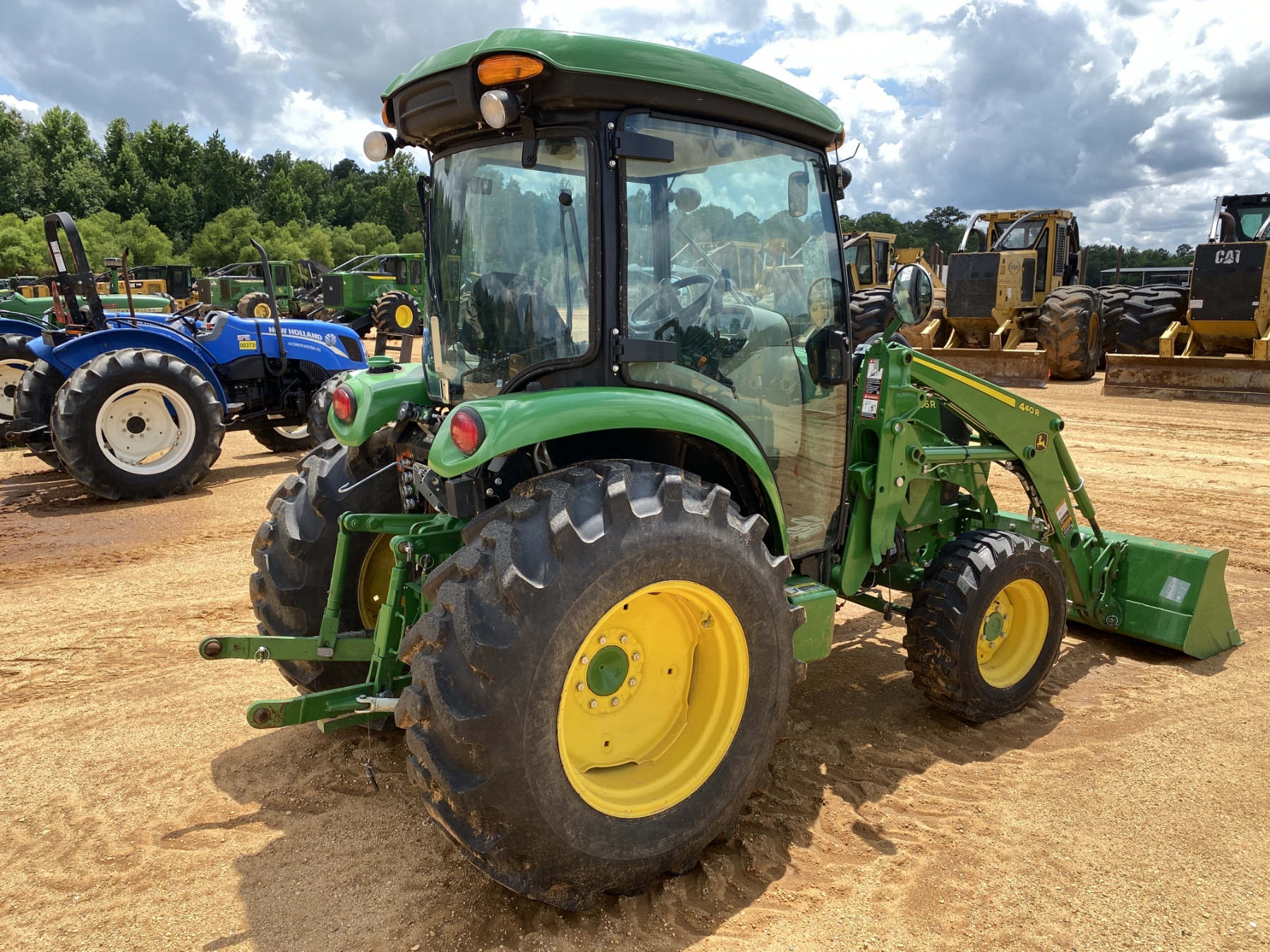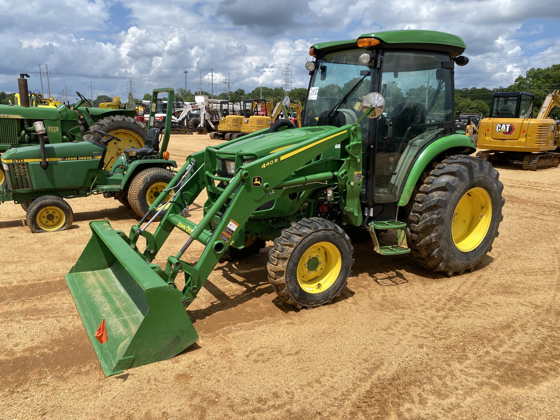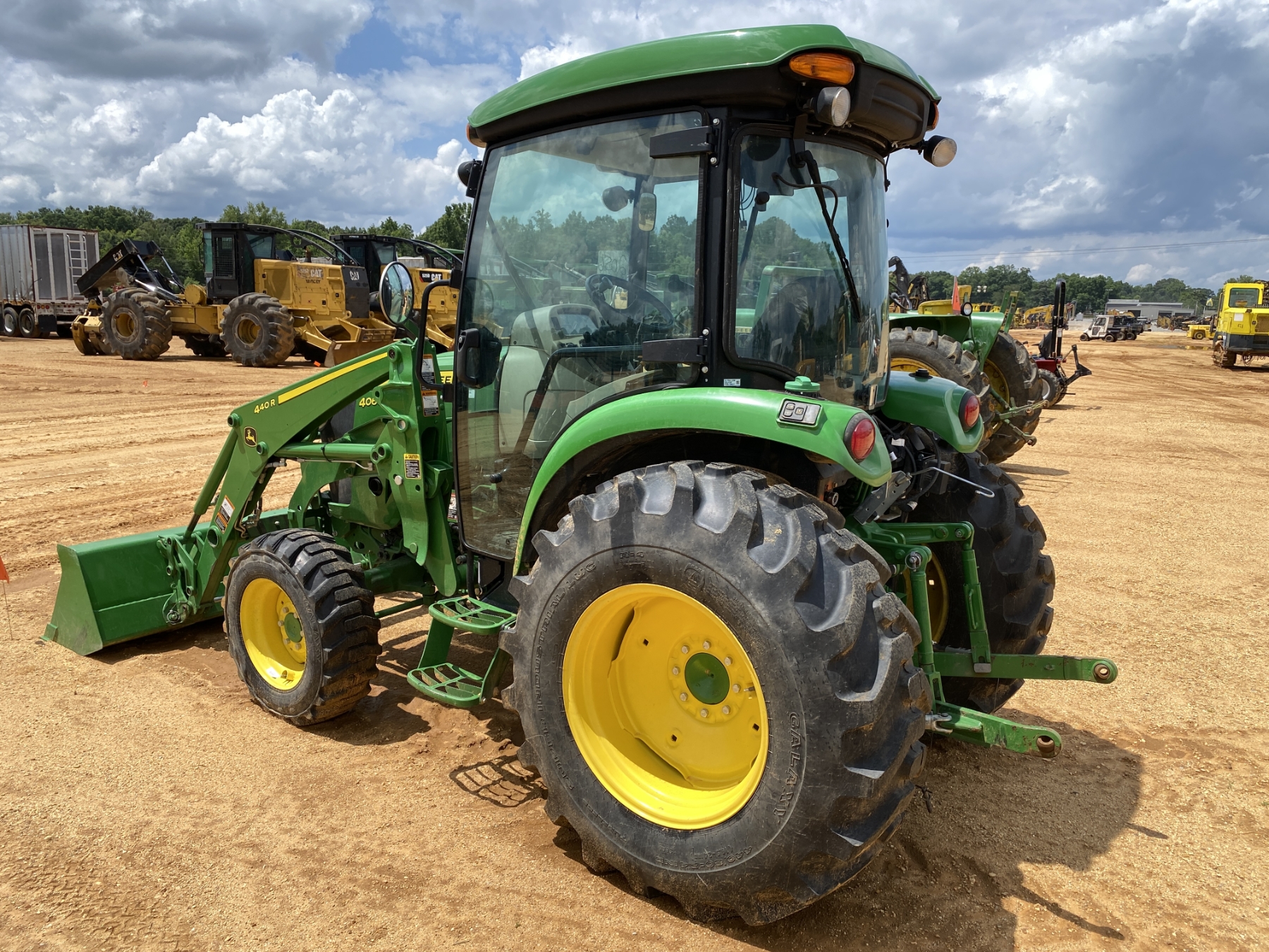 MFWD, (2) remotes, John Deere 440R front loader attach, bucket, cab, A/C