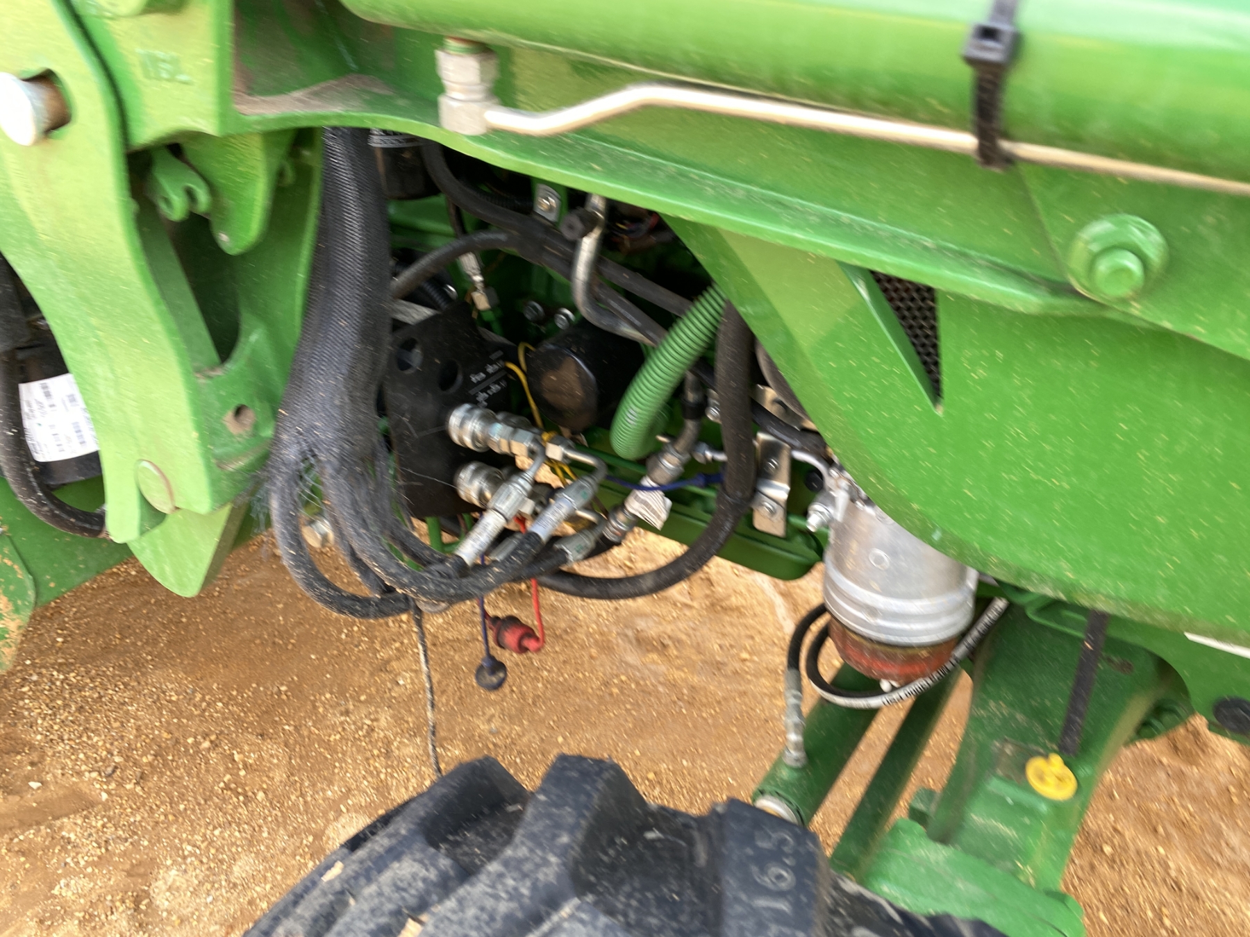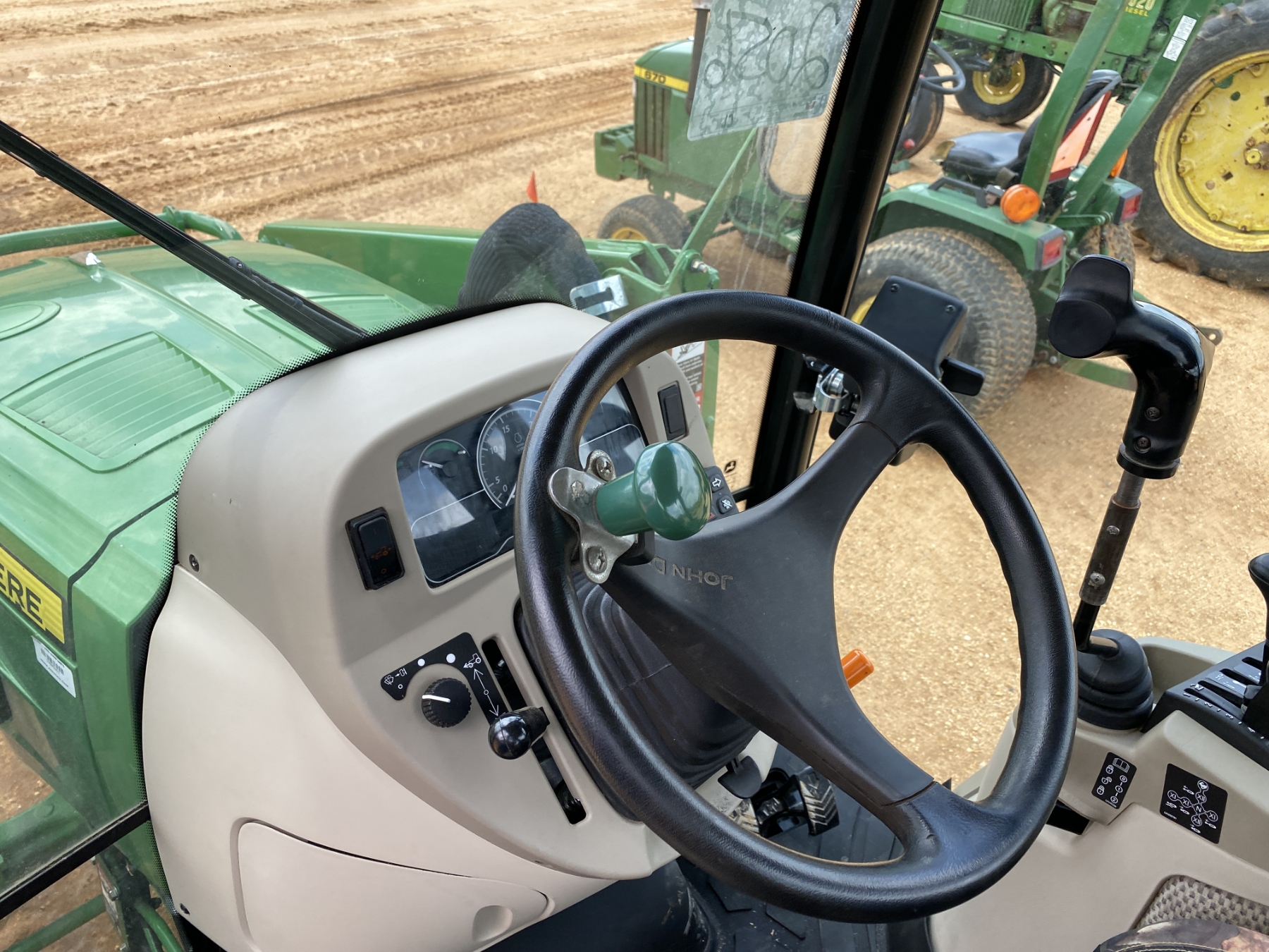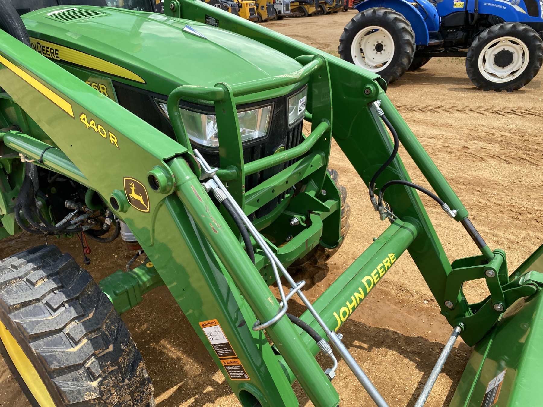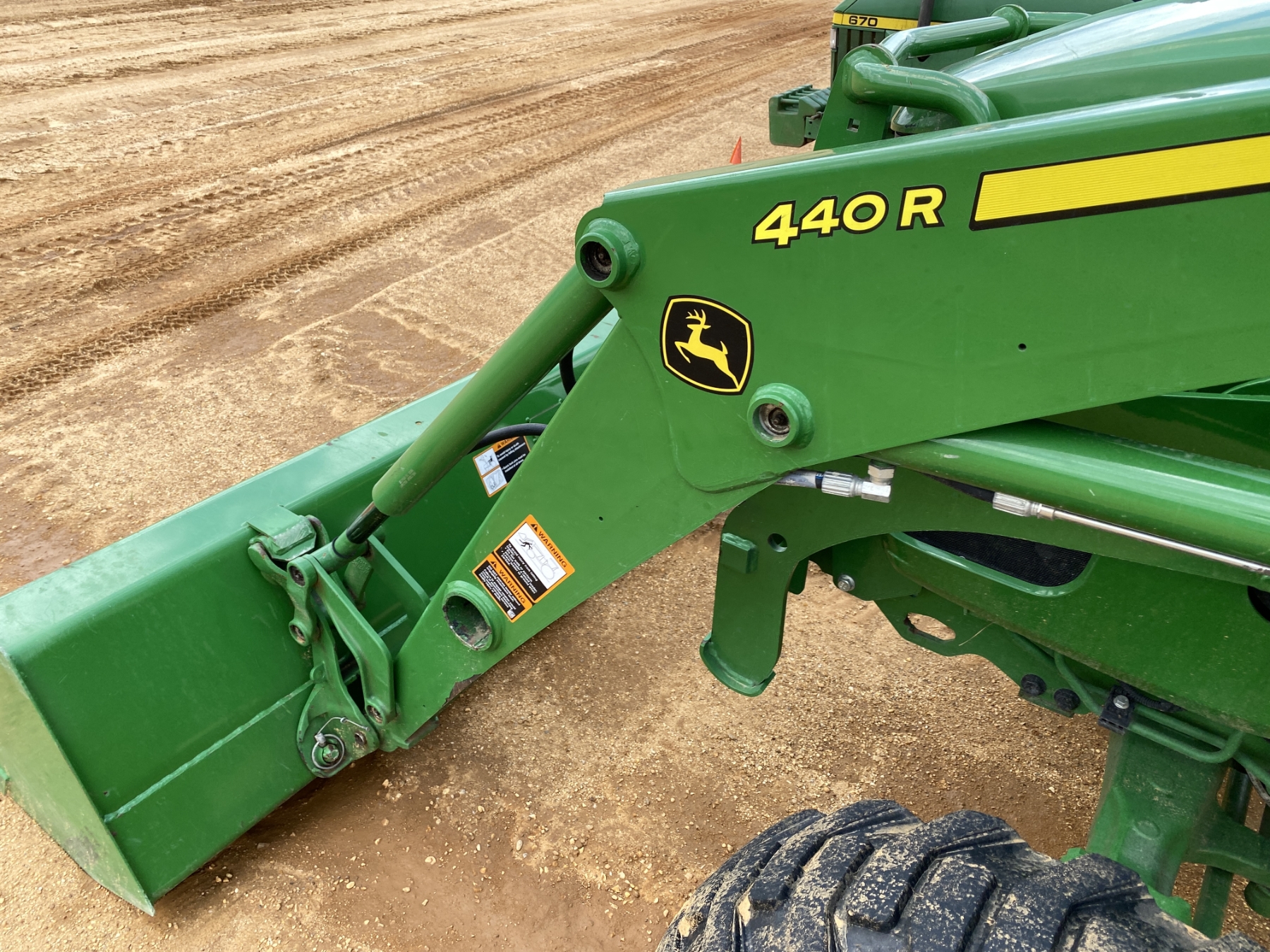 MFWD, (2) remotes, John Deere 440R front loader attach, bucket, cab, A/C