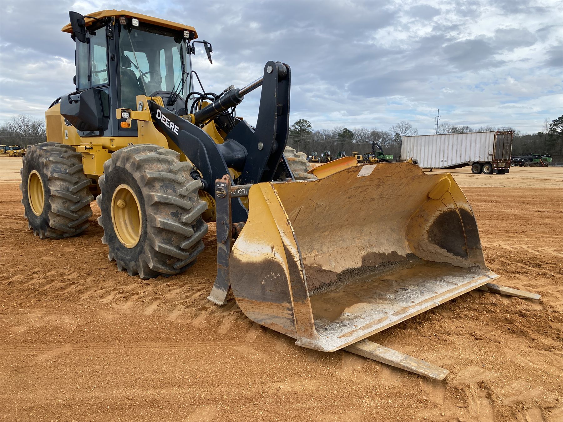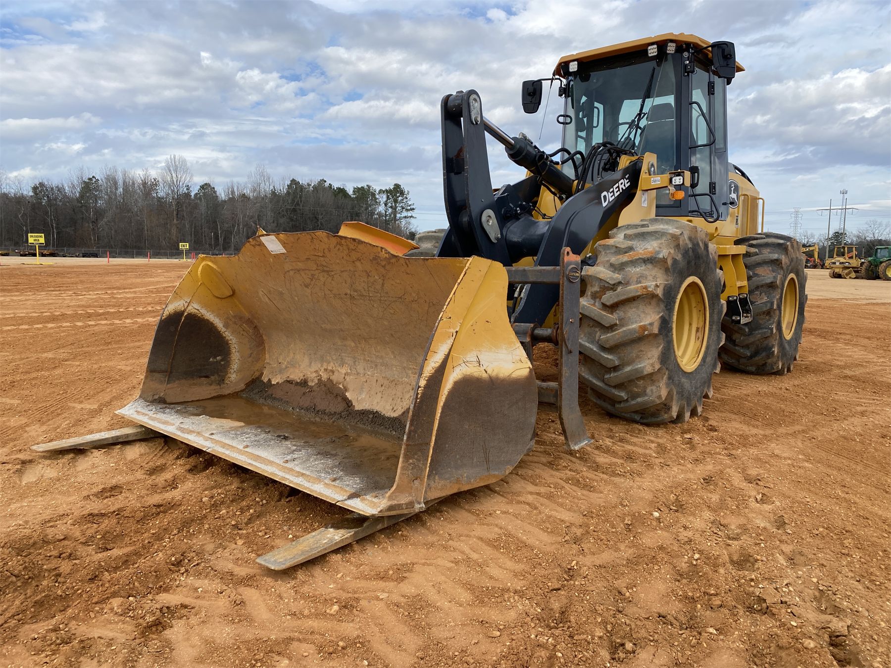 coupler, bucket, forks, aux hyd, cab, A/C, 23.1-26 tires