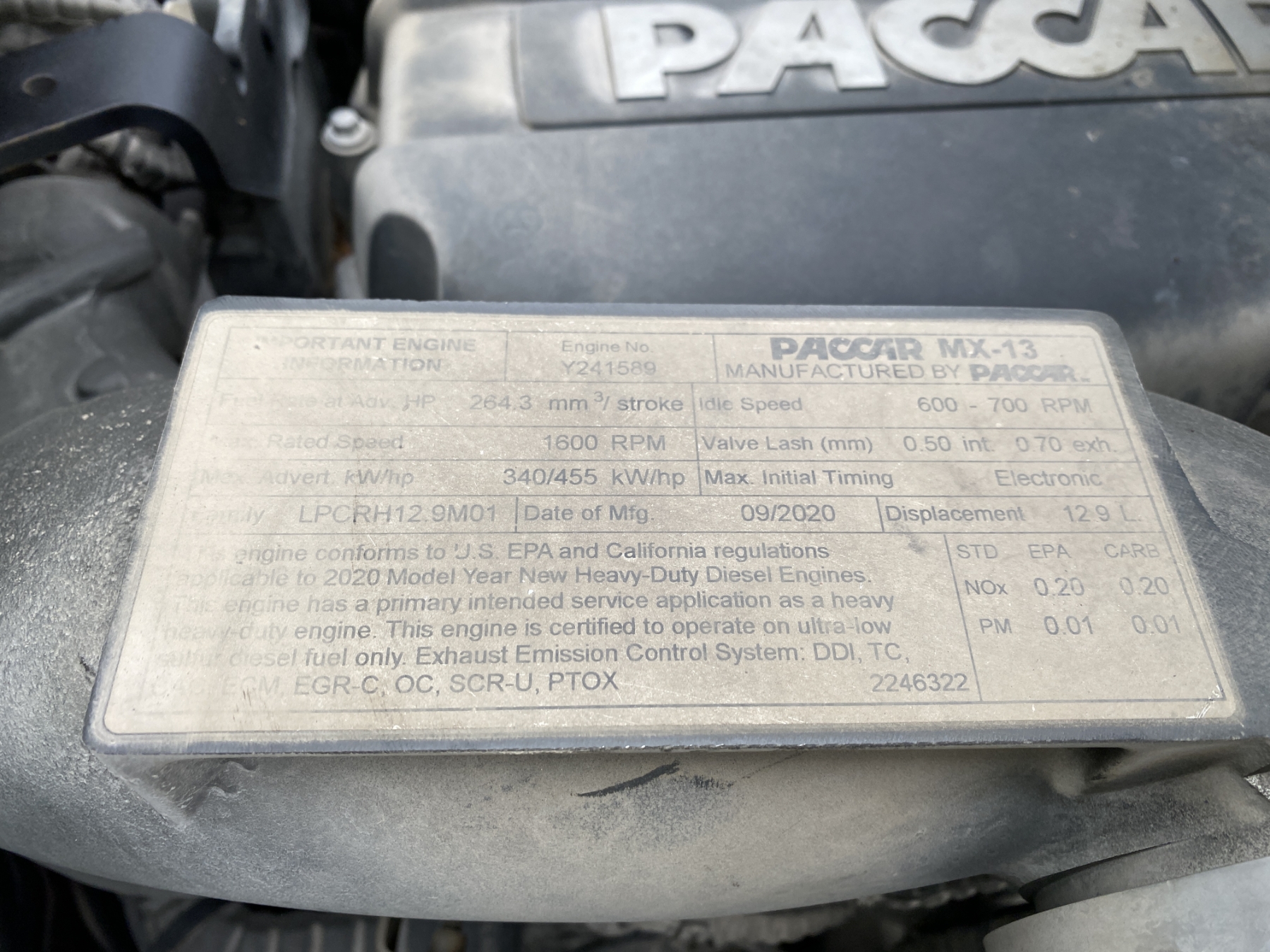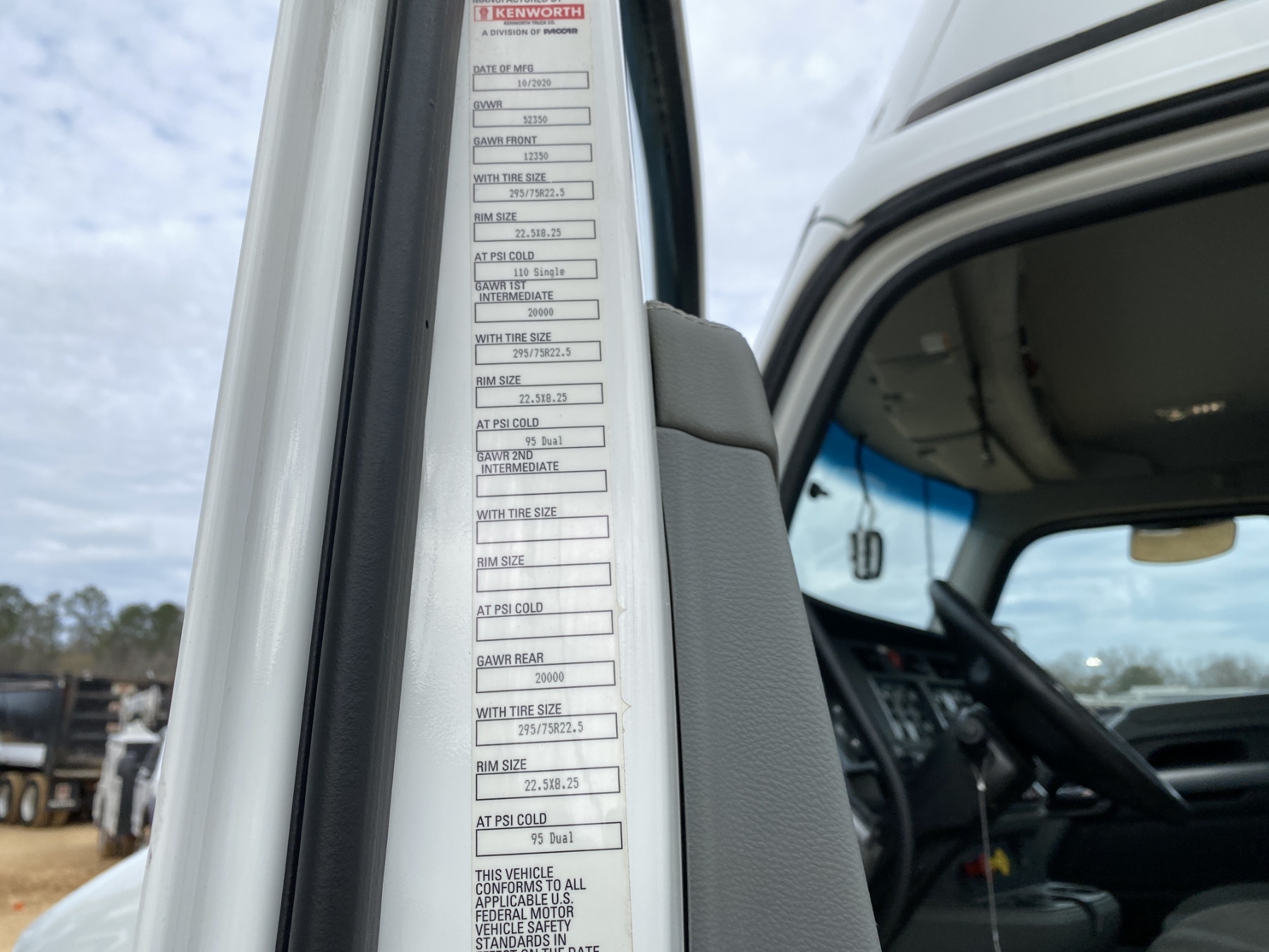 T/A, 455 HP Paccar MX-13 engine, A/T, 40K rears, air ride, 12,350 lb. front, 185" W/B, 295/75R22.5 tires, all alum