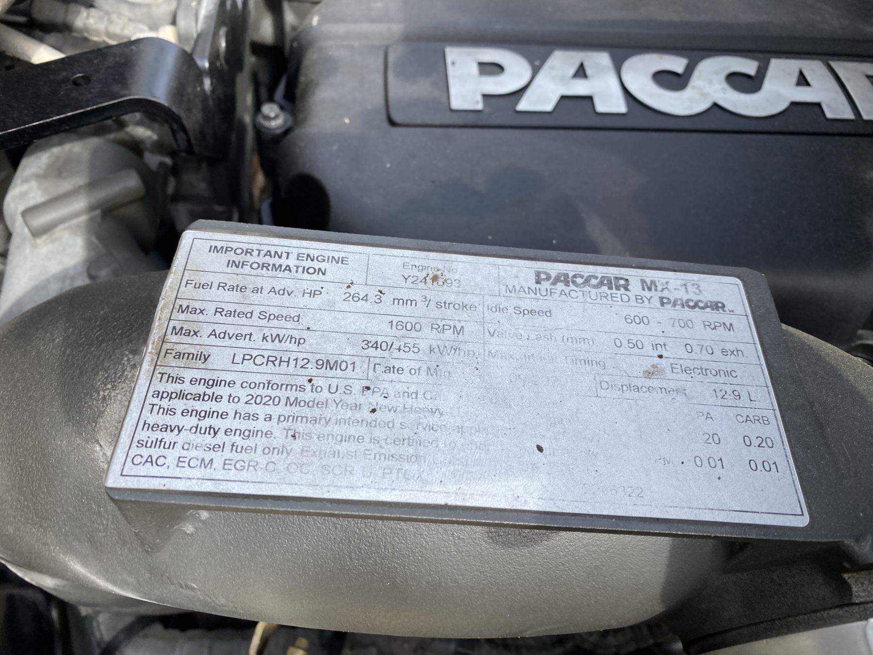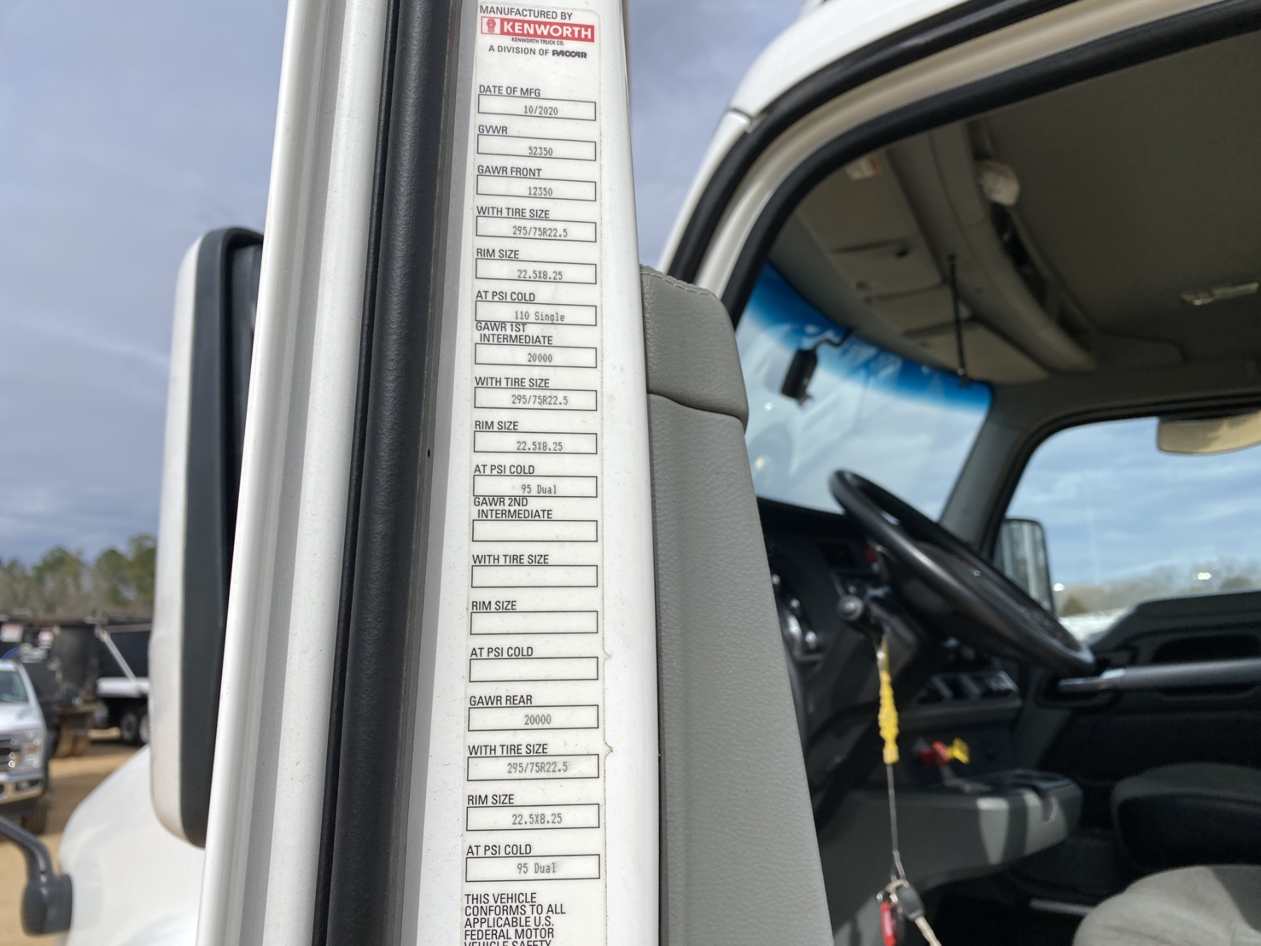 T/A, 455 HP Paccar MX-13 engine, A/T, 40K rears, air ride, 12,350 lb. front, 185" W/B, 295/75R22.5 tires, all alum