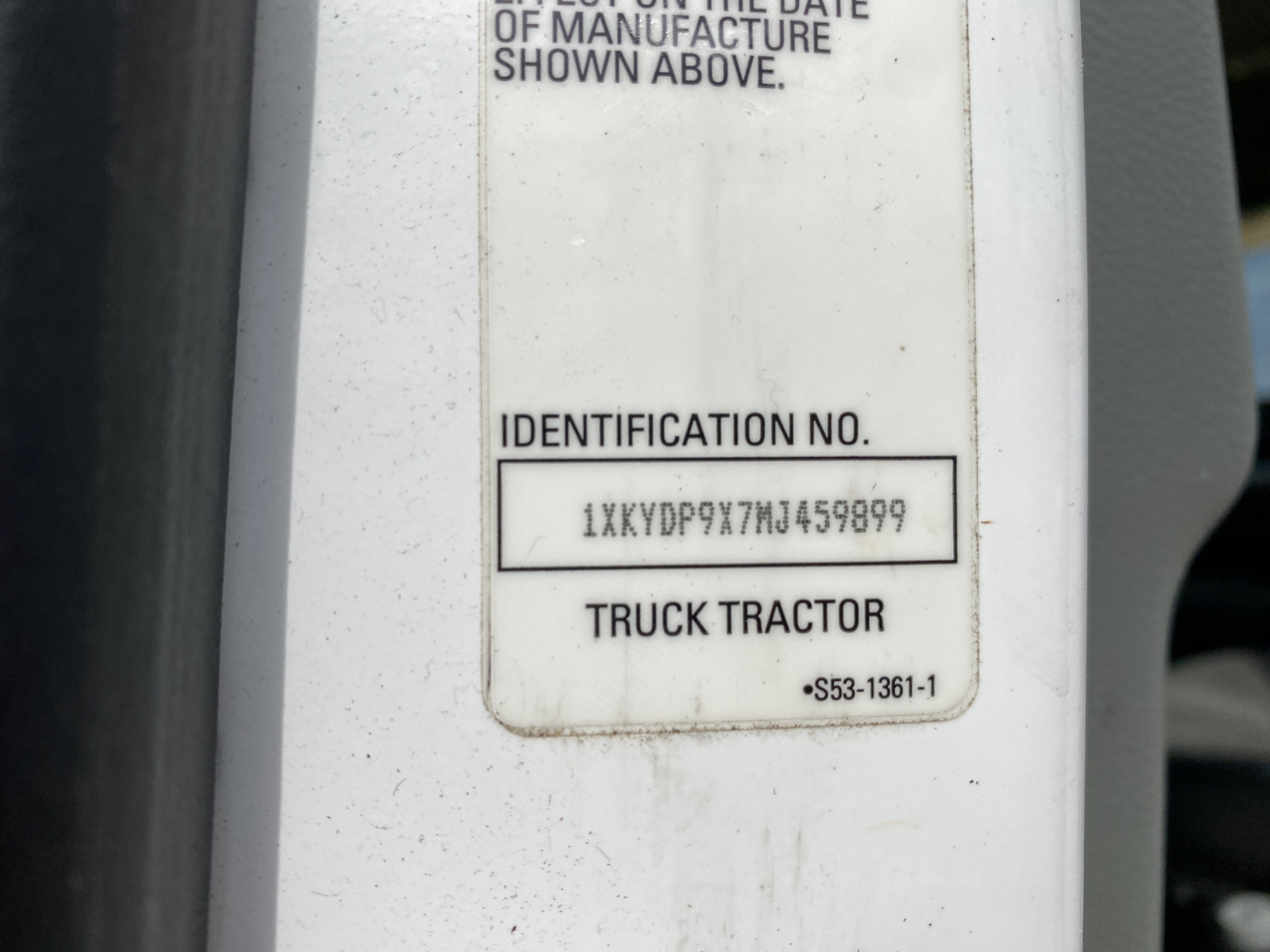 Vehicle ID Number: 1XKYDP9X7MJ459899