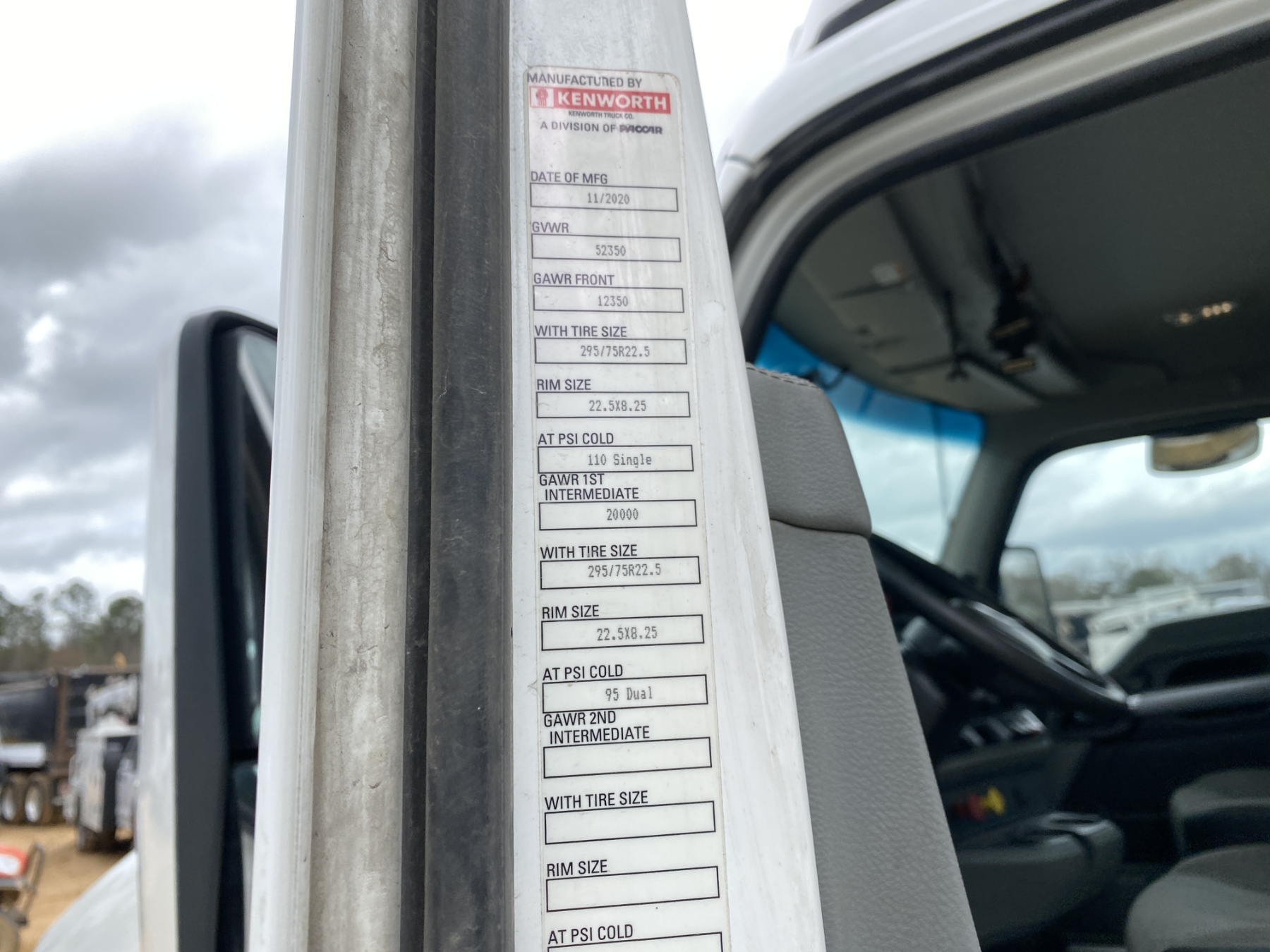 T/A, 455 HP Paccar MX-13 engine, A/T, 40K rears, air ride, 12,350 lb. front, 185" W/B, 295/75R22.5 tires, all alum