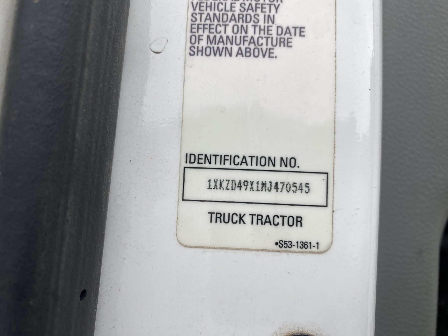 Vehicle ID Number: 1XKZD49X1MJ470545