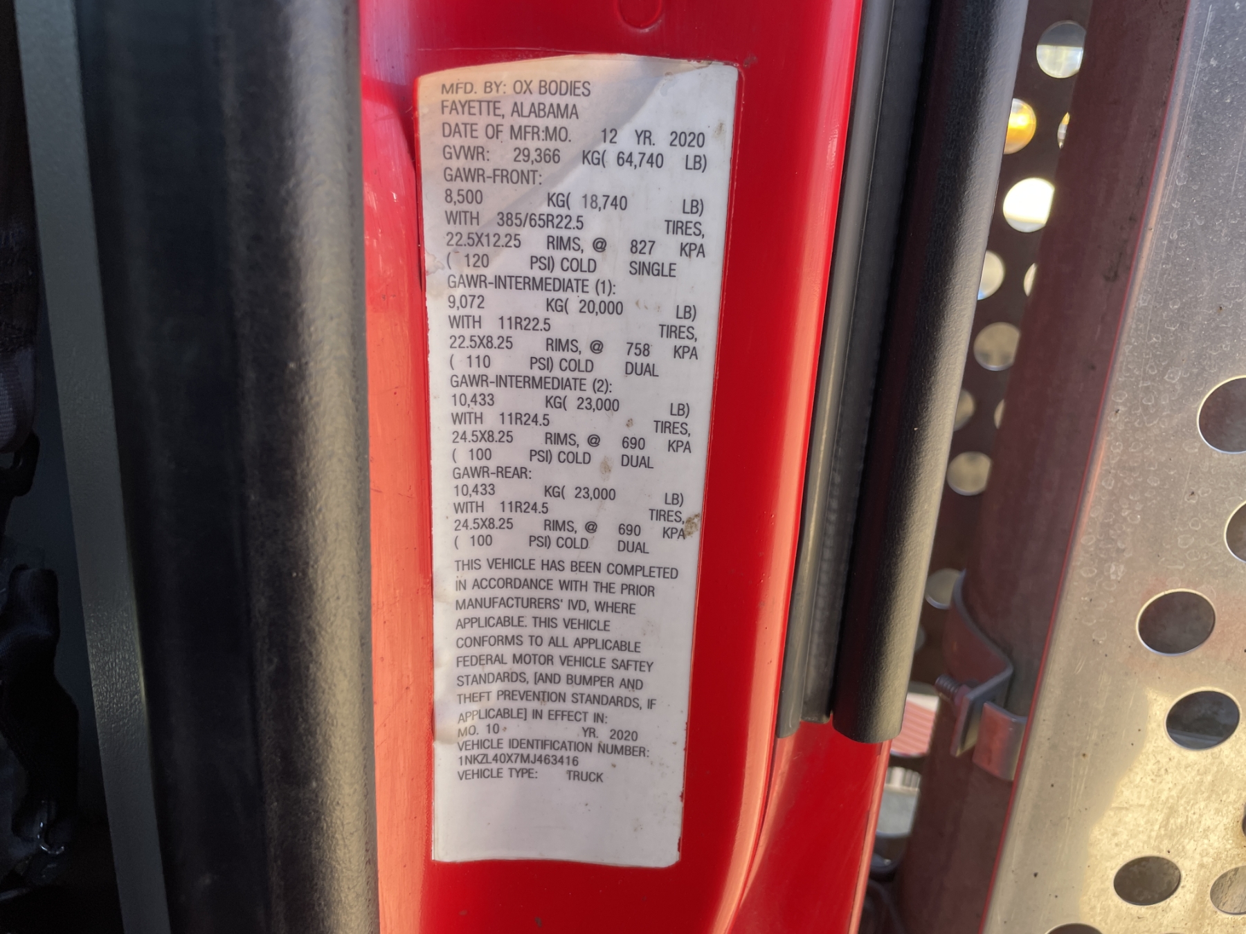 Vehicle ID Number: 1NKZL40X7MJ463416