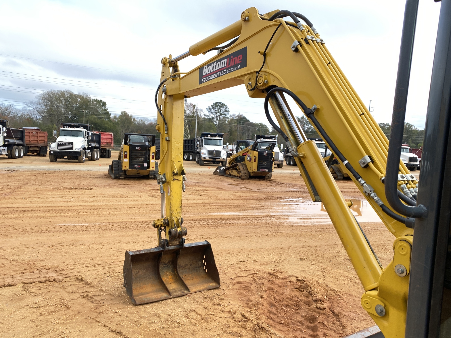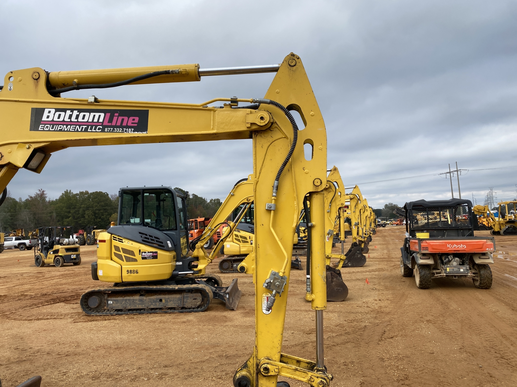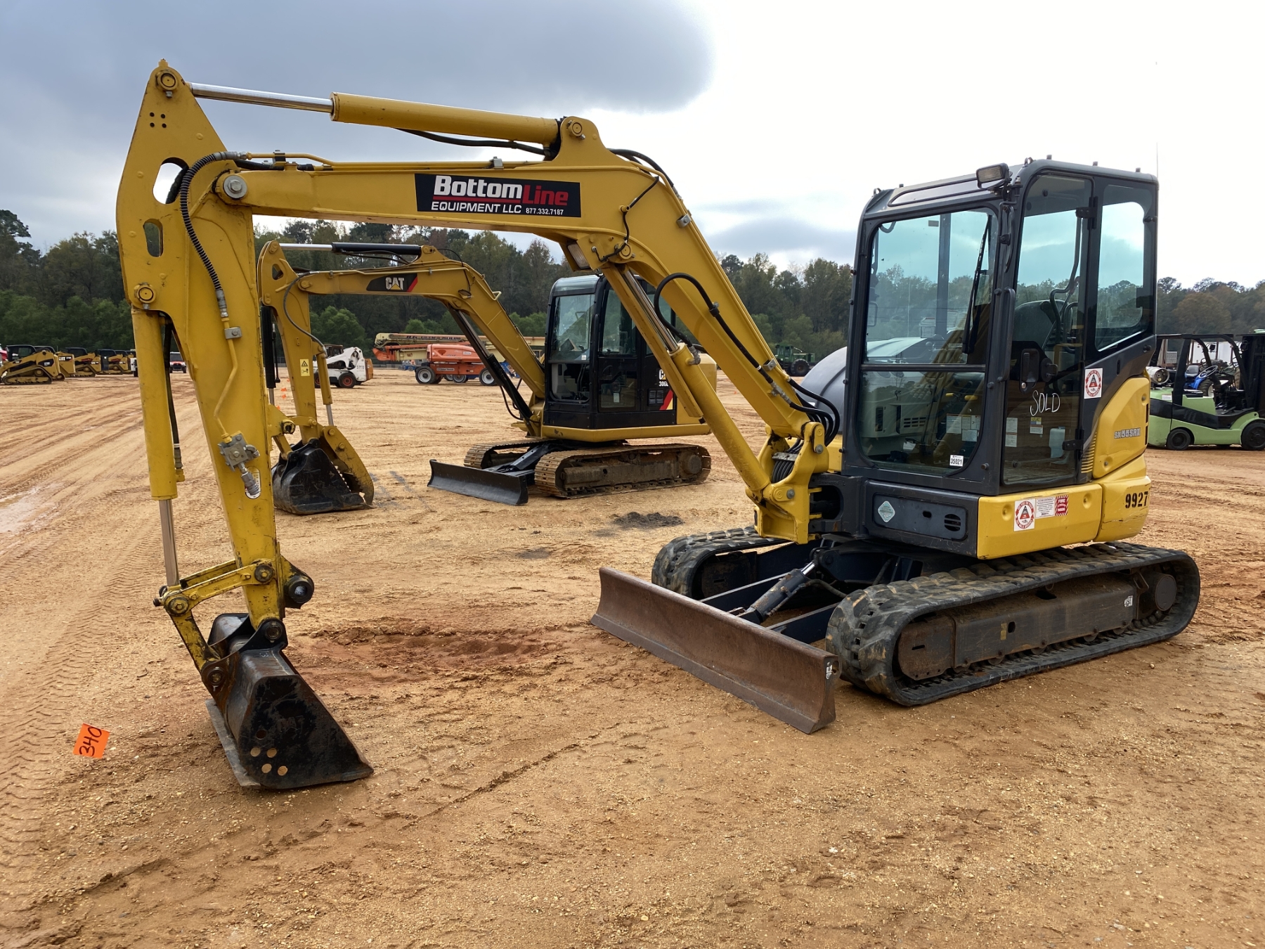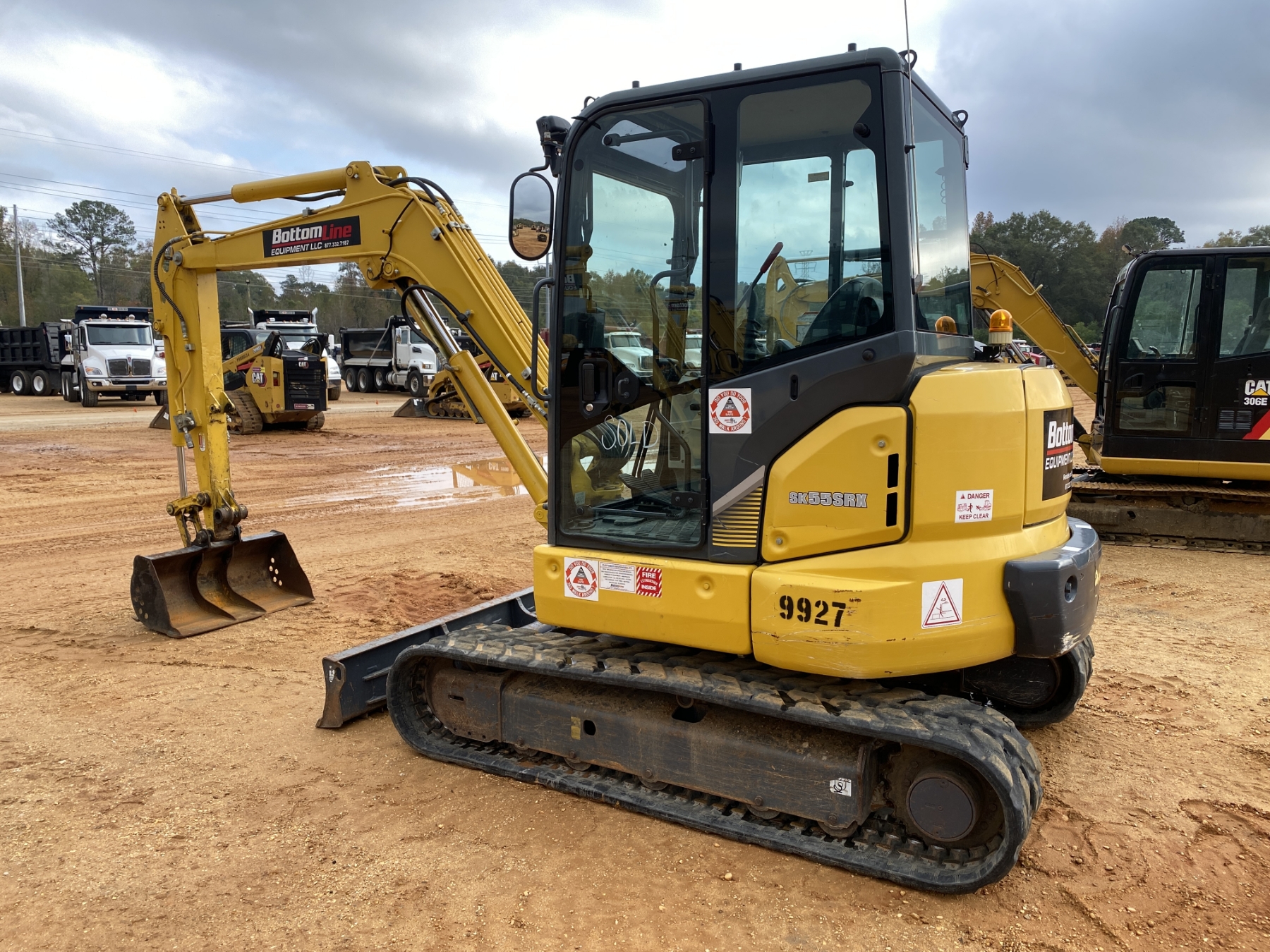 5' 6' stick, 39" bucket, aux hyd, blade, cab, A/C