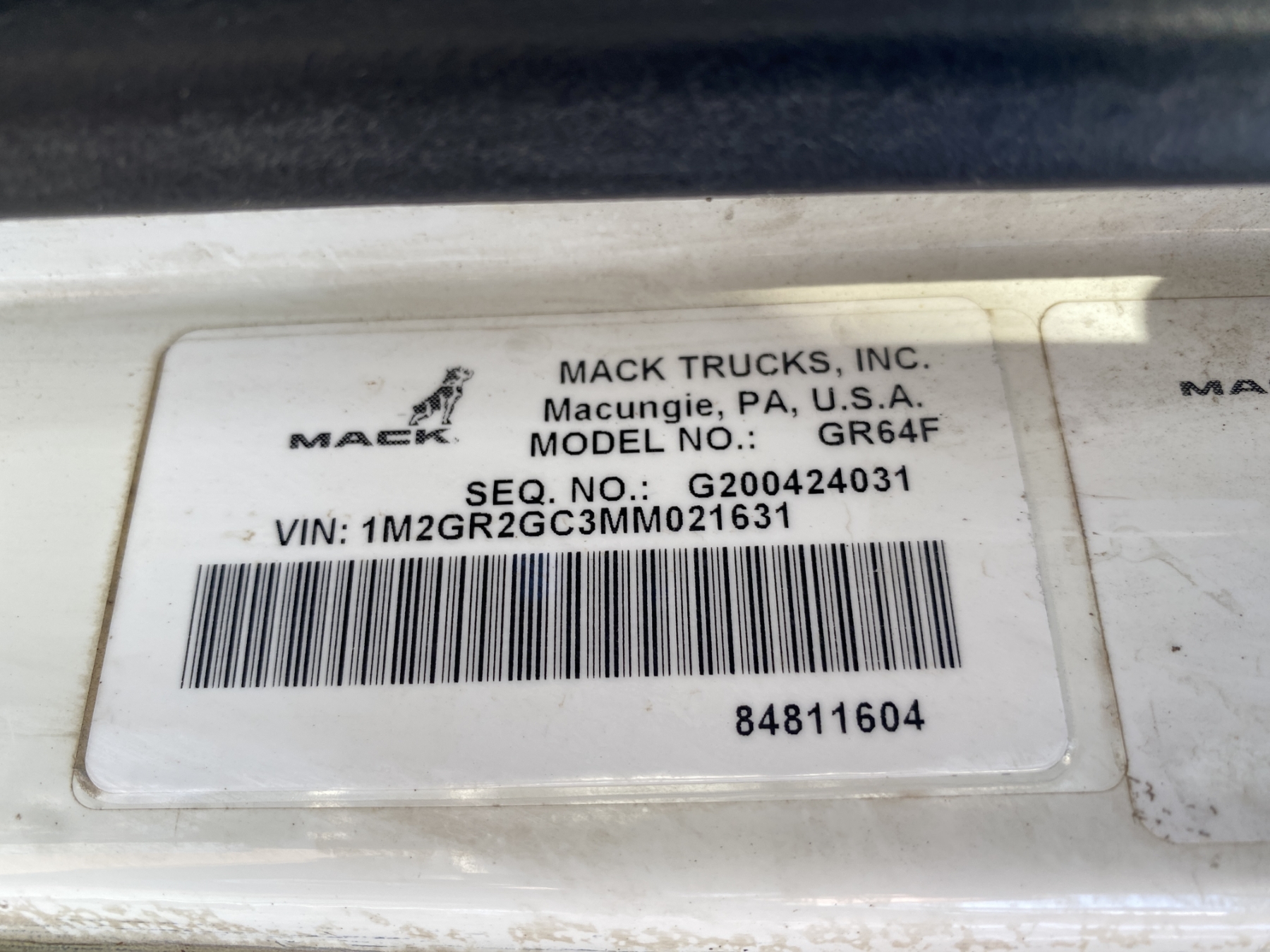 Vehicle ID Number: 1M2GR2GC3MM021631