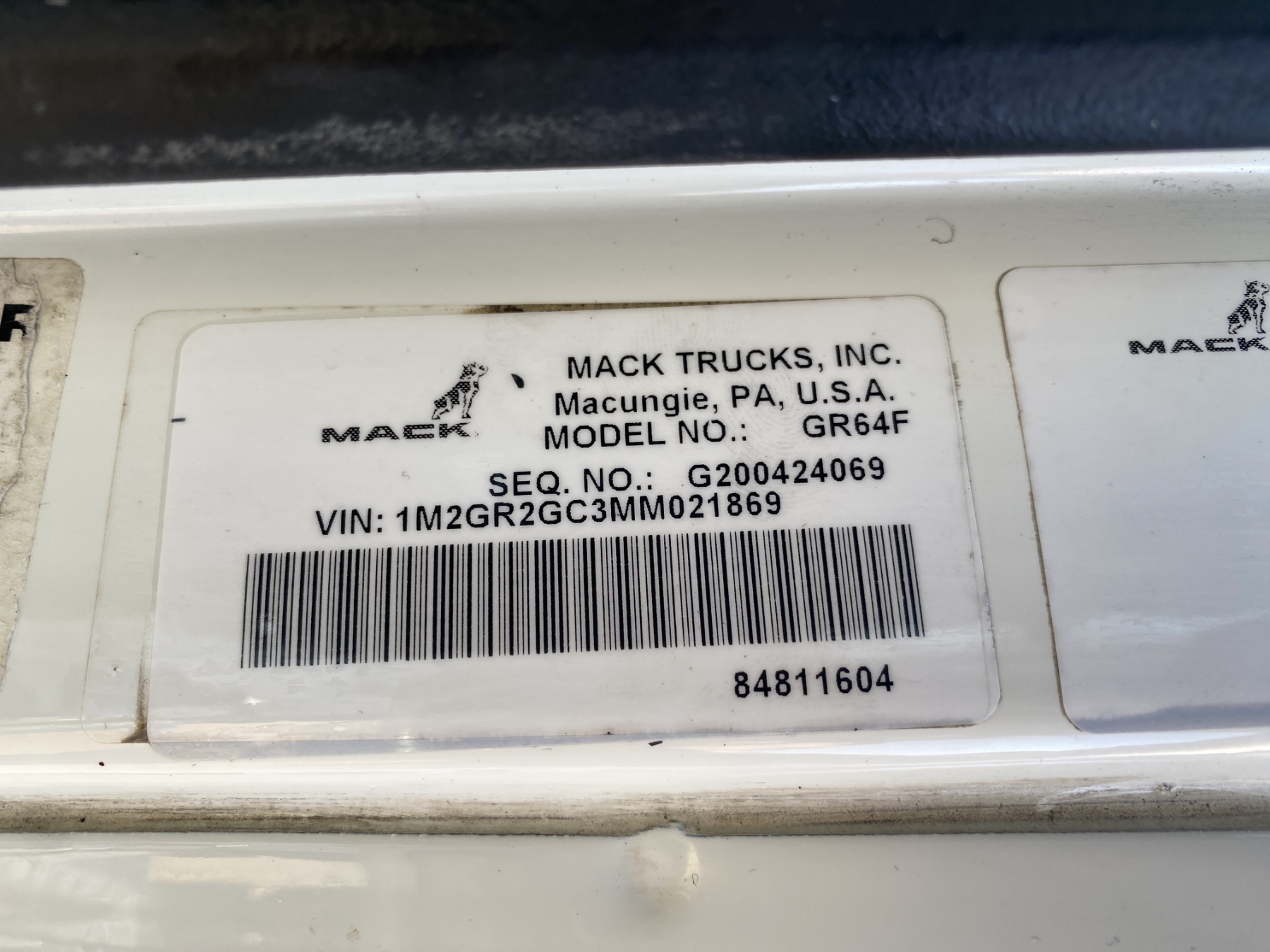 Vehicle ID Number: 1M2GR2GC3MM021869