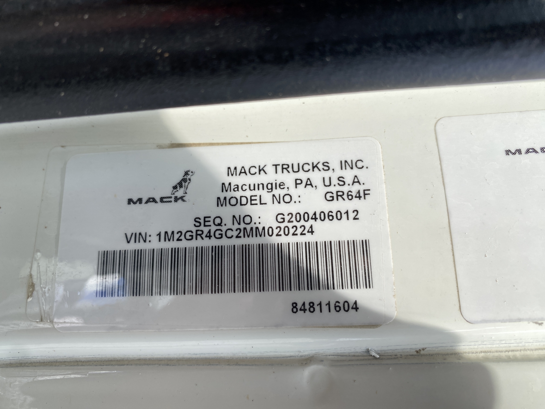 Vehicle ID Number: 1M2GR4GC2MM020224