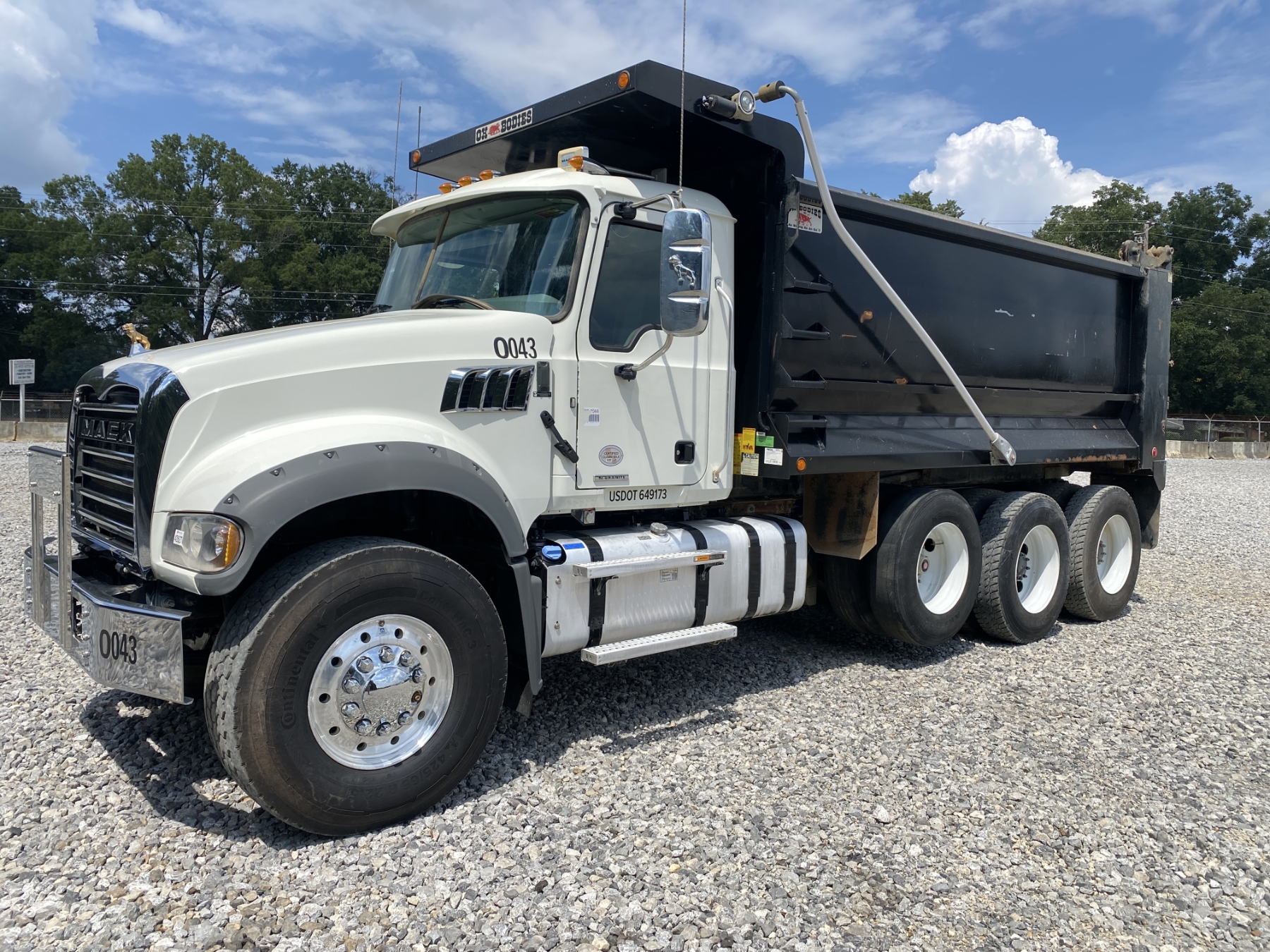 Tri Axle, 455 HP Mack MP8 engine, Mack mDrive auto shift trans, 44K rears, 20K front, 16' Hard Ox body, high-lift gate, 11R24.5 rear tires, 425/65R22.5 front tires