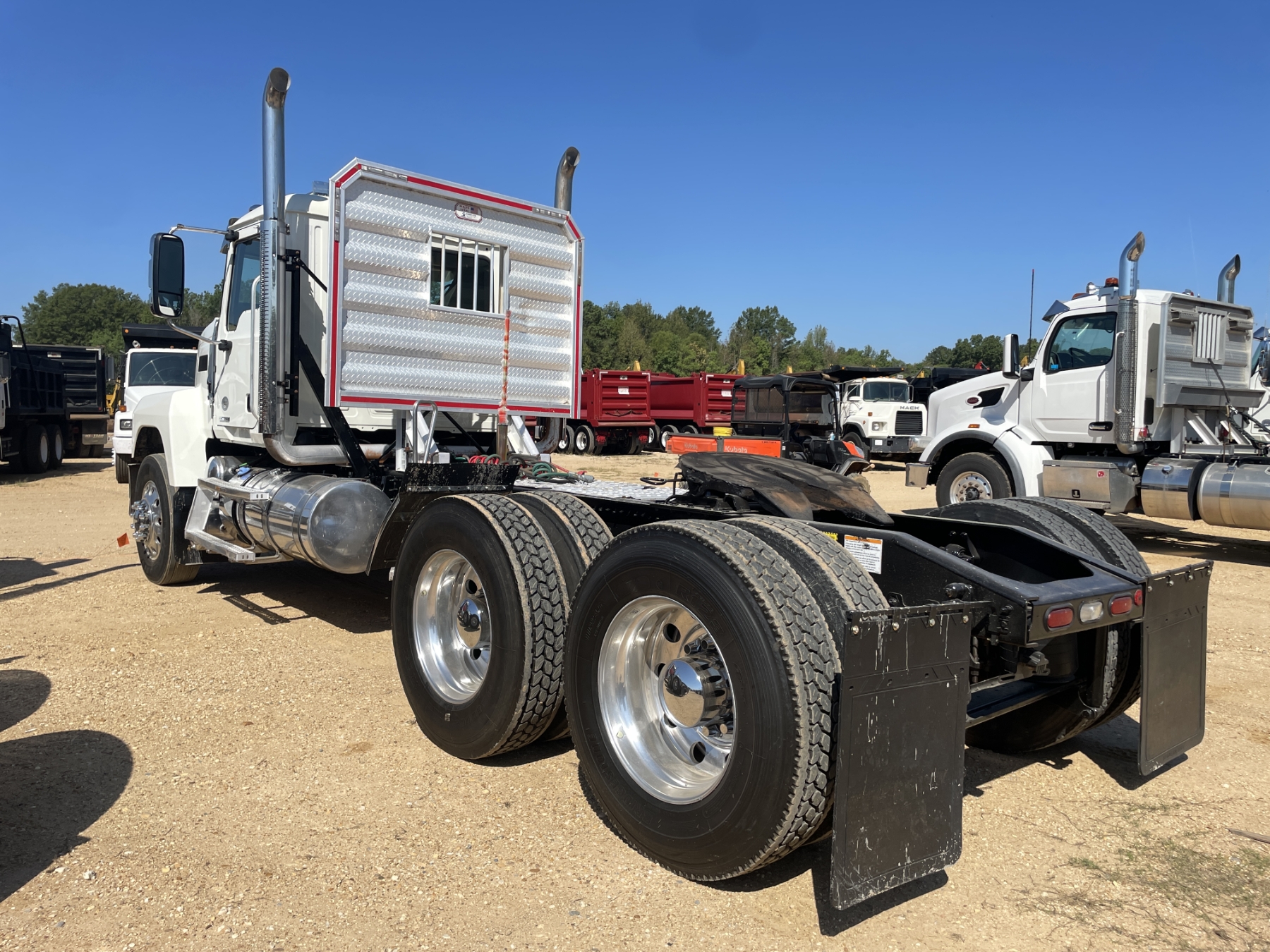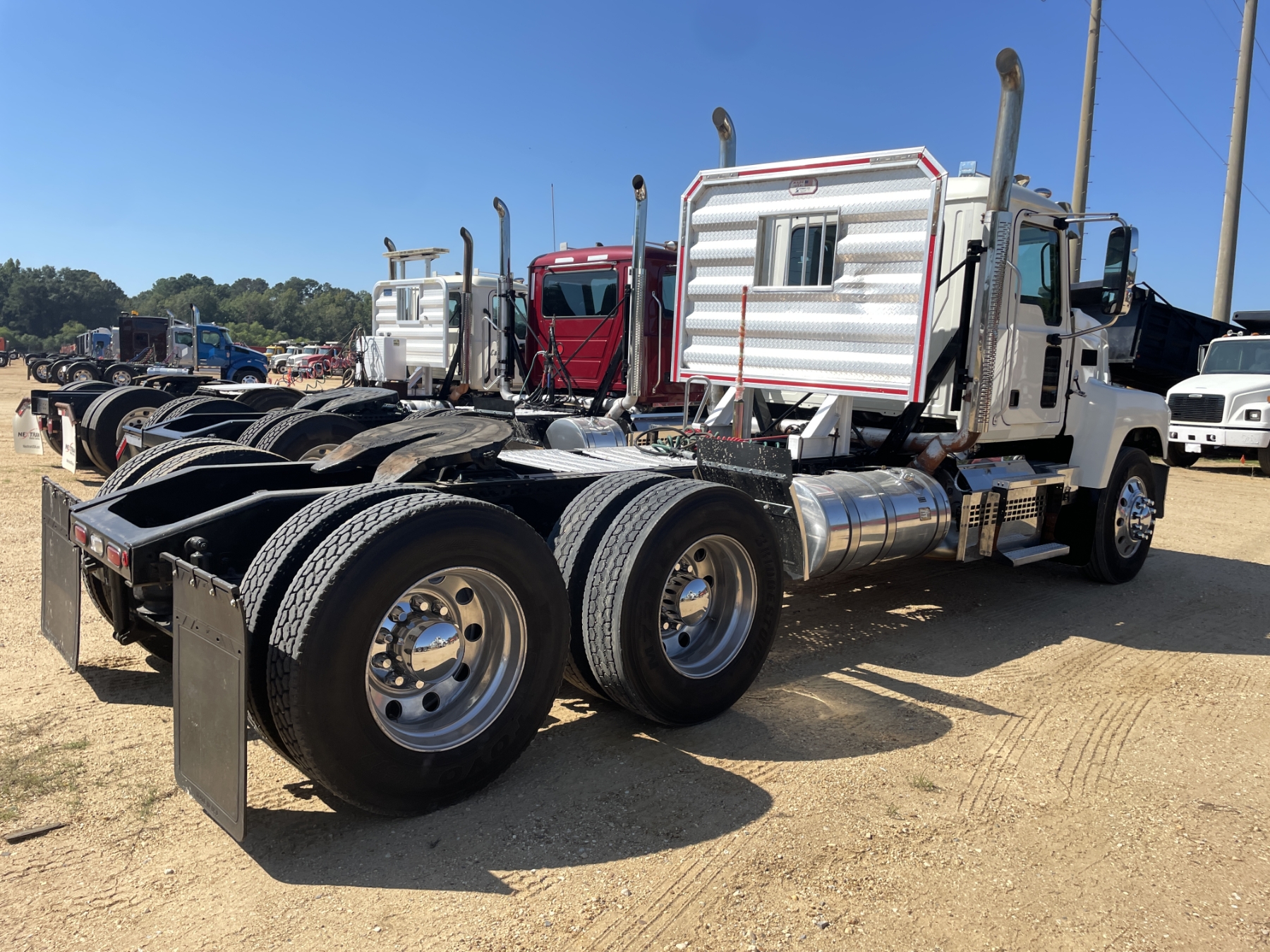 T/A, 505 HP Mack MP8 engine, Mack mDrive auto shift trans, 46K rears, air ride, 12K front, 215" W/B, alum headache rack, 11R24.5 tires, all alum