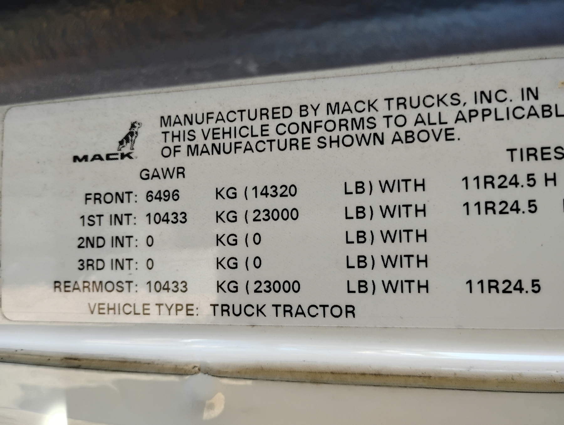 T/A, 505 HP Mack MP8 engine, Mack mDrive A/T, 46K rears, air ride, 14,320 lb. front, 240" W/B, wet kit, alum headache rack, 11R24.5 tires, all alum