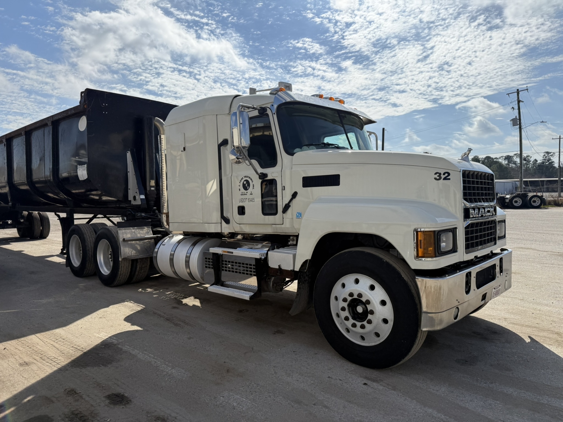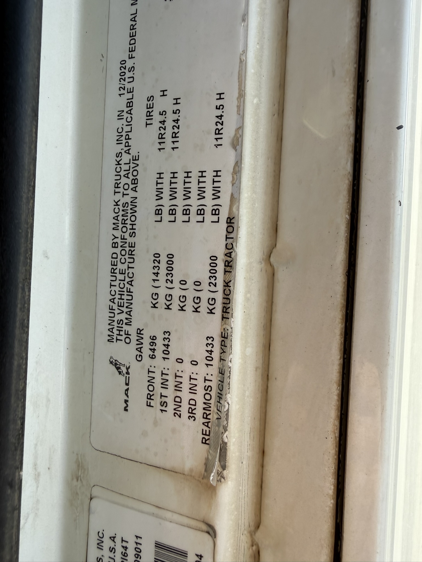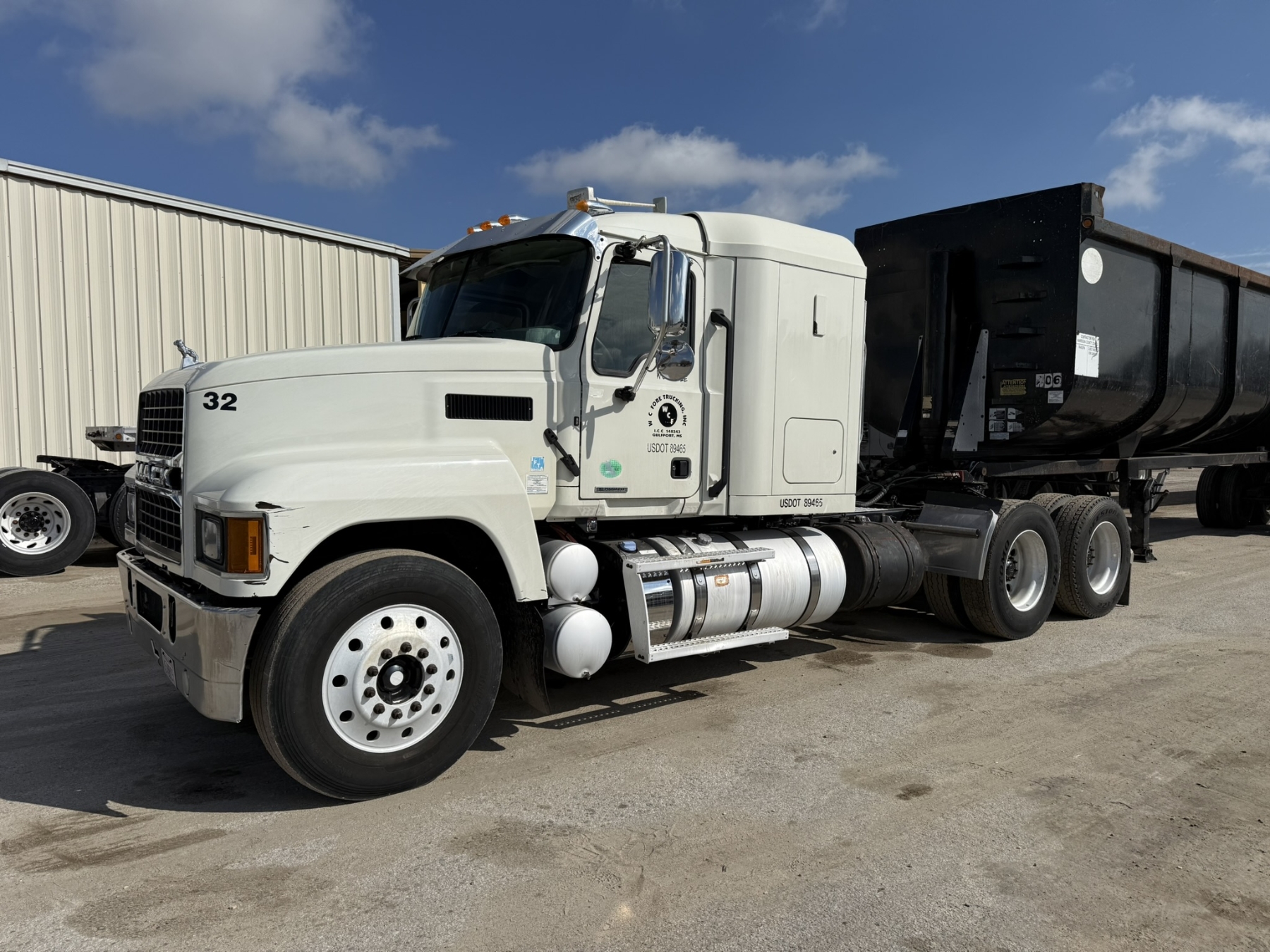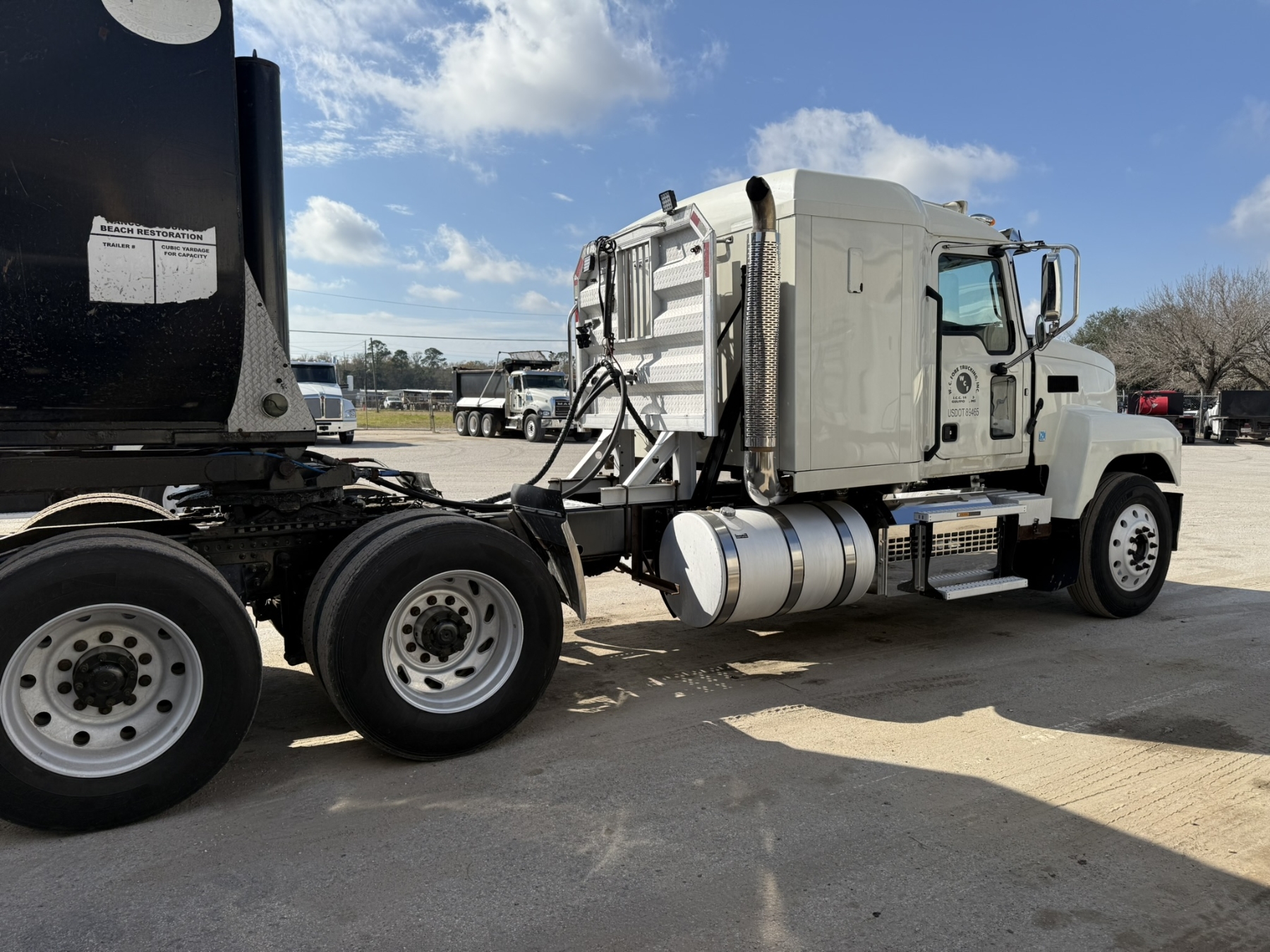 T/A, Mack MP8 engine, 13 speed trans, 46K rears, air ride, 14,320 lb. front, wet kit, alum headache rack, 11R24.5 tires
