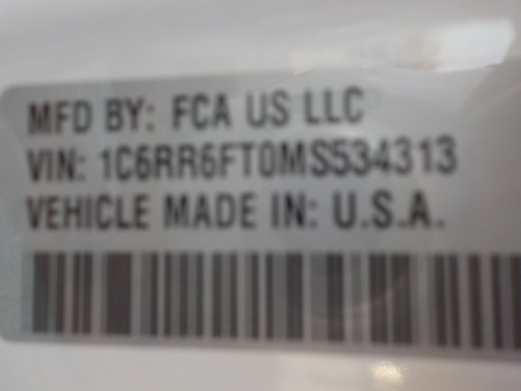 Vehicle ID Number: 1C6RR6FT0MS534313