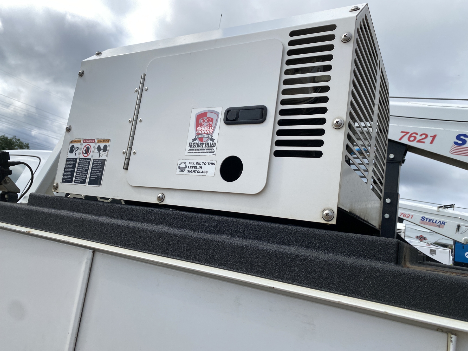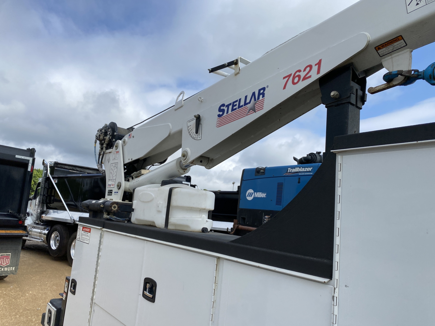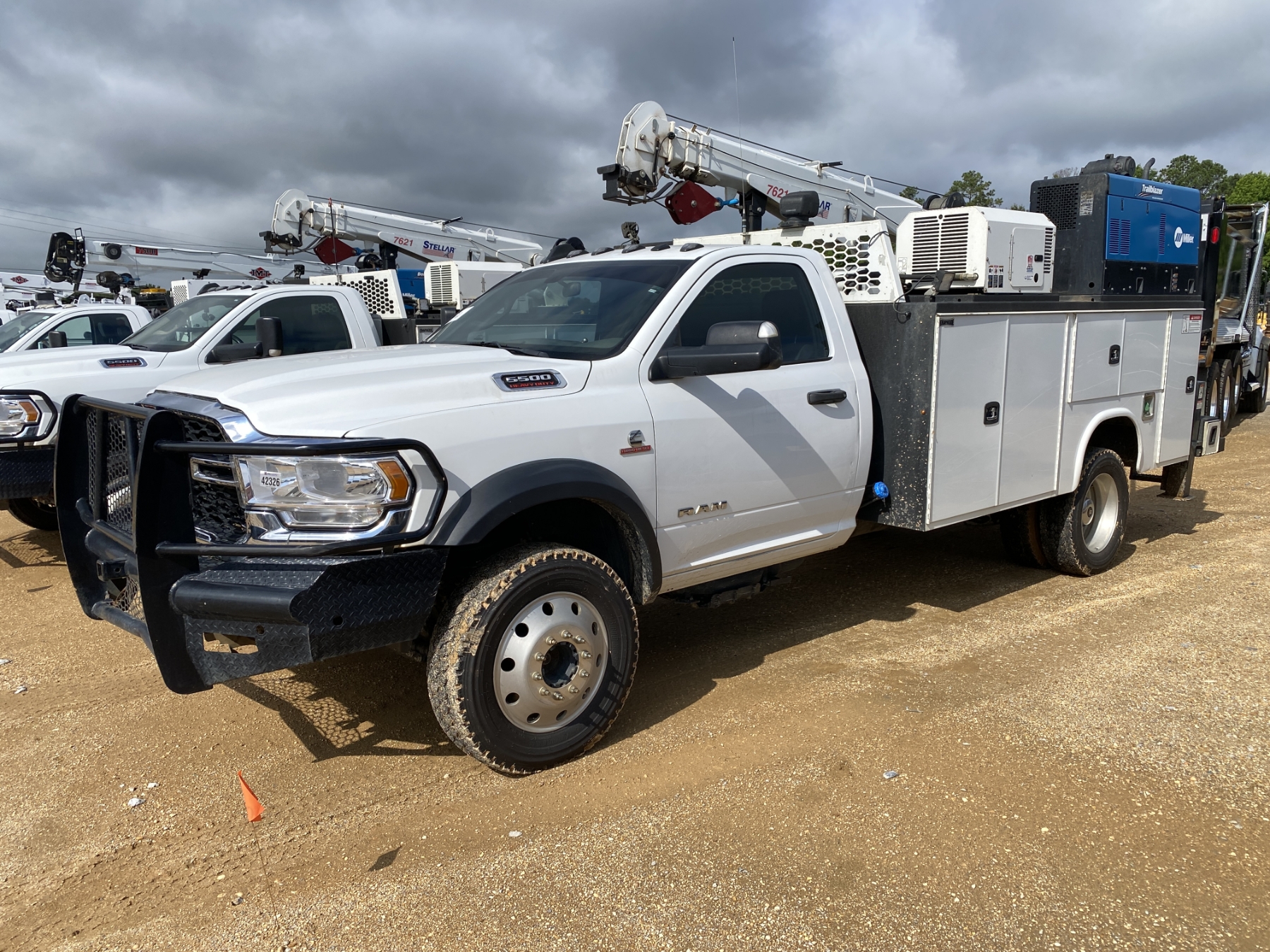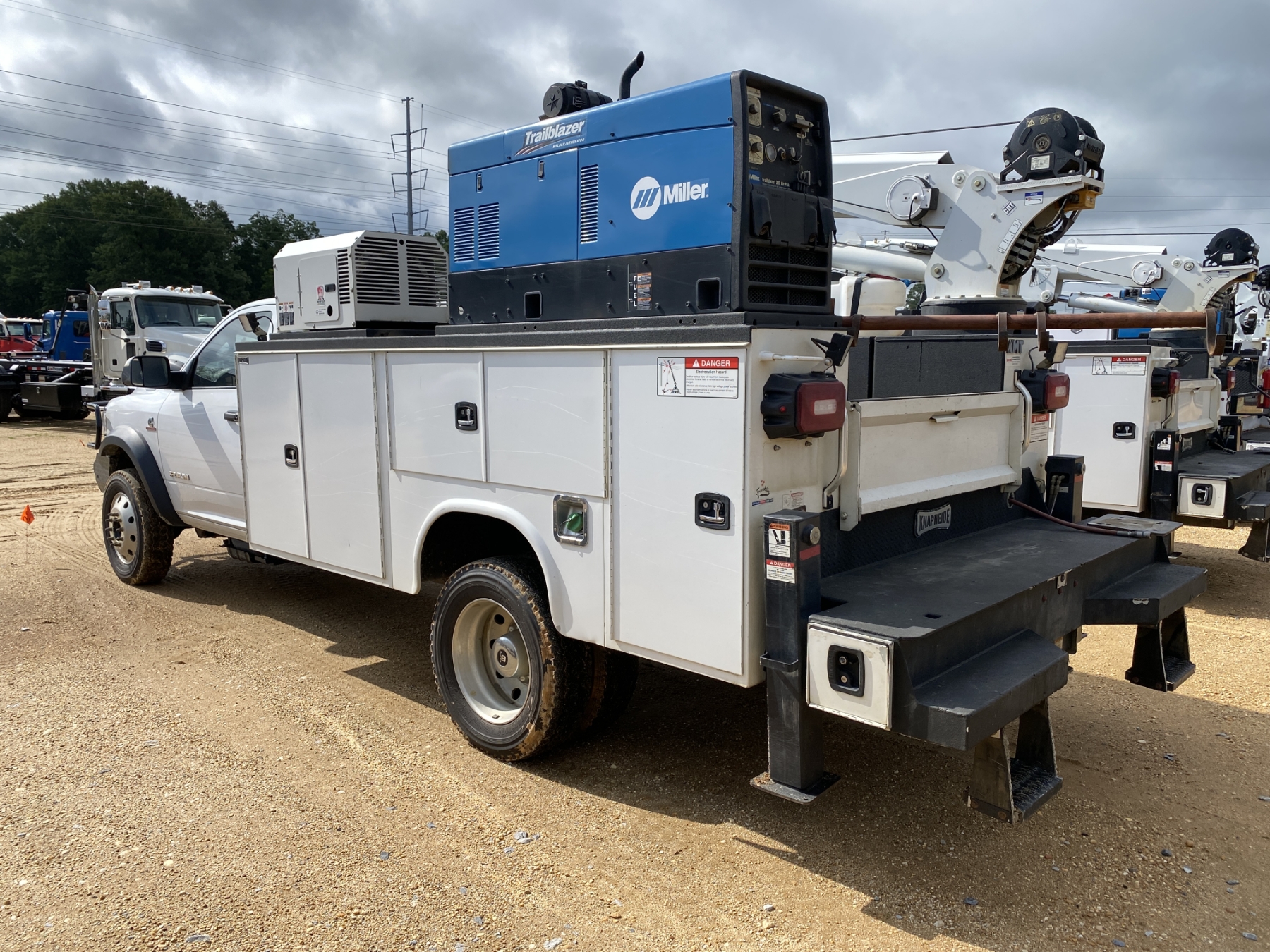 4x4, Cummins diesel, A/T, Knapheide service body, Stellar 7621 crane, Miller Trailblazer welder, hyd air compressor, outriggers