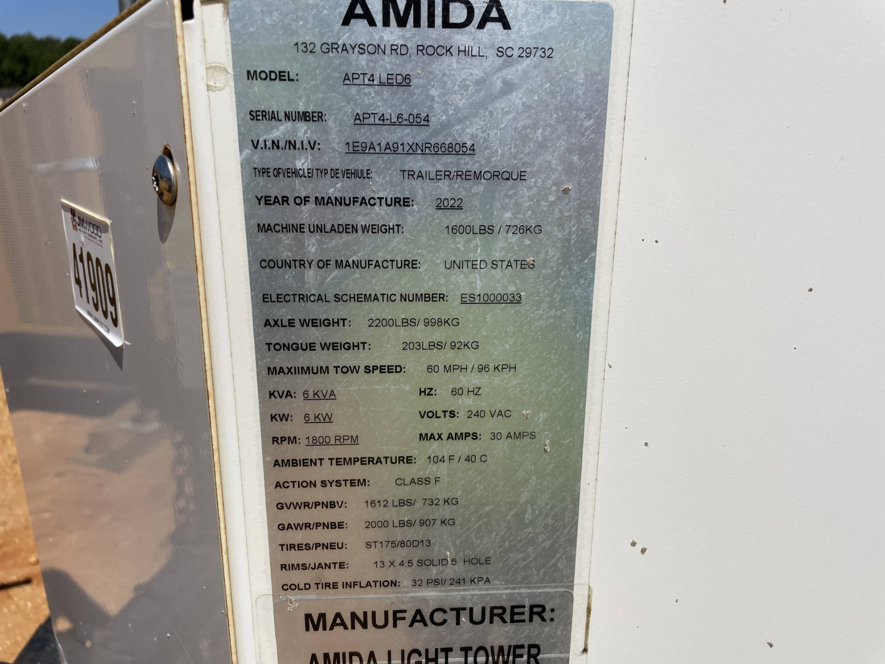 2022 AMIDA APT4 LED6 Light Tower