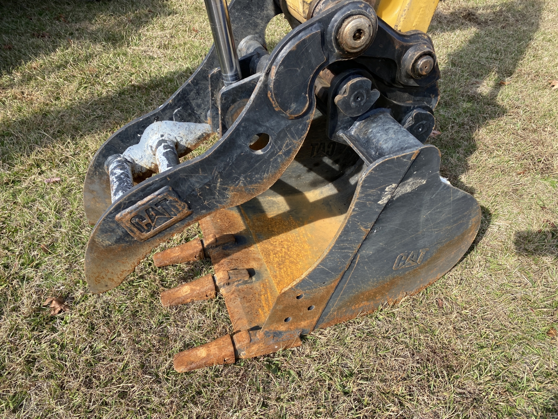 5' 8" stick, 24" bucket, coupler, hyd thumb, angle blade, canopy