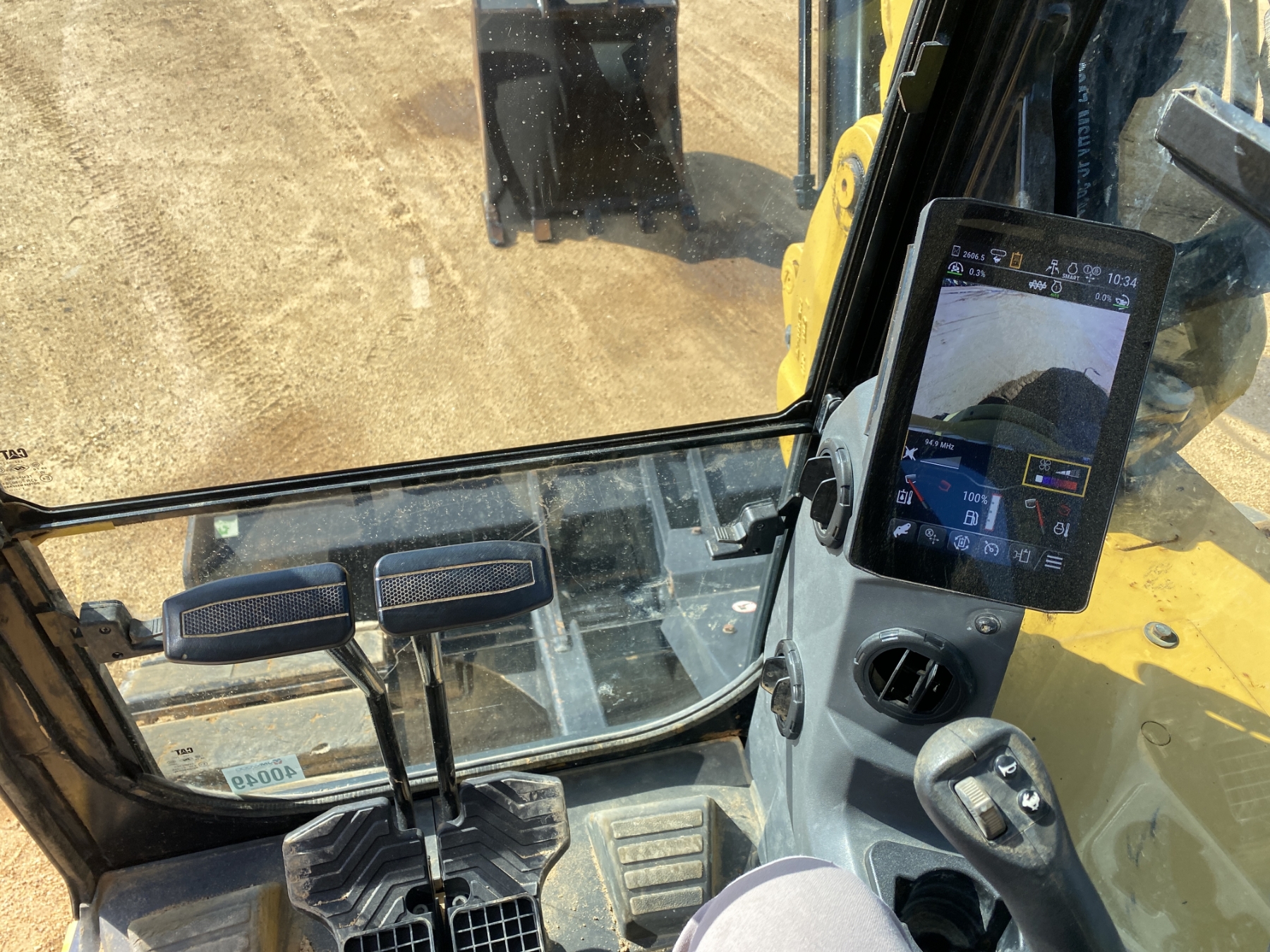 7' 9" stick, 36" bucket, aux hyd, blade, rubber pad inserts, cab, A/C