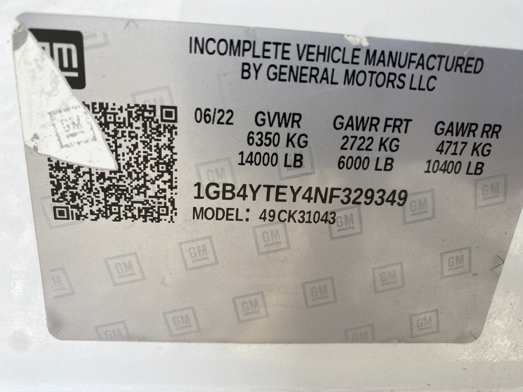 Vehicle ID Number: 1GB4YTEY4NF329349