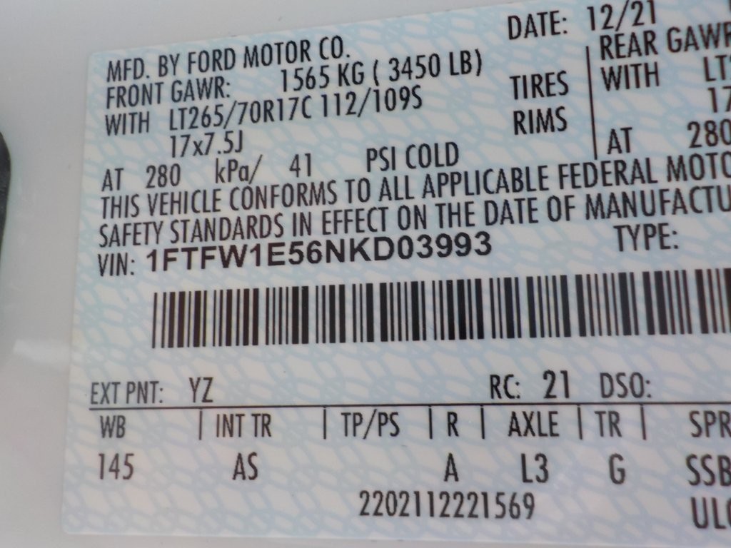 Vehicle ID Number: 1FTFW1E56NKD03993