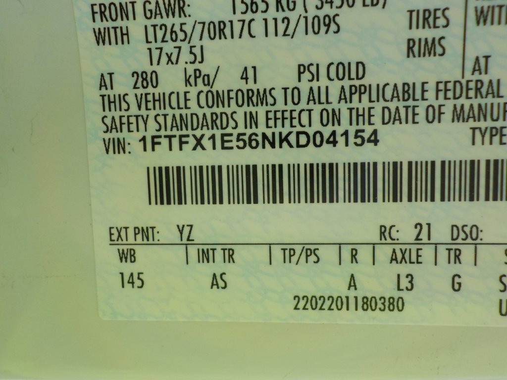 Vehicle ID Number: 1FTFX1E56NKD04154