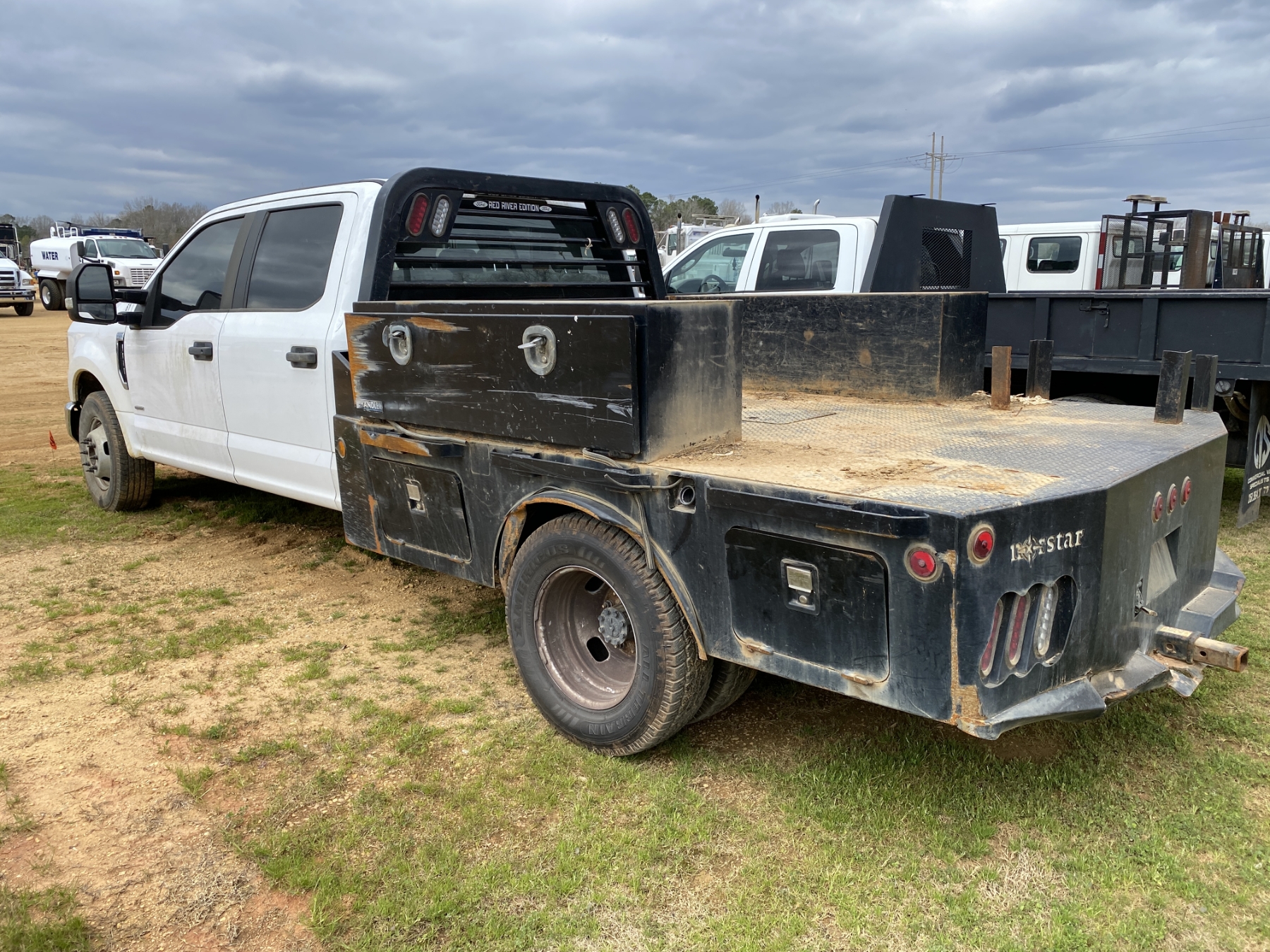 dually, crew cab, gas, A/T, 9' Norstar flatbed
