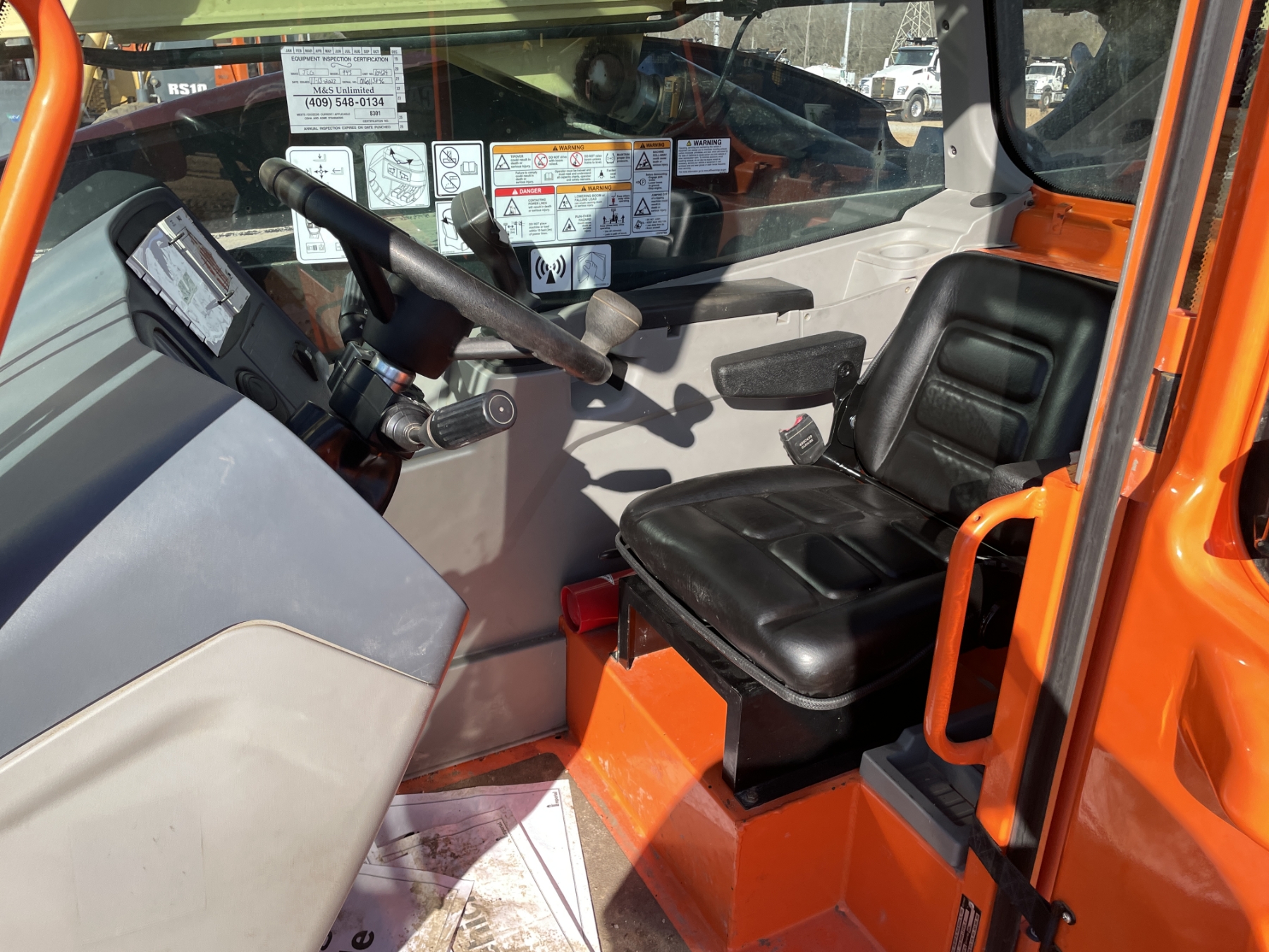 9,000 lb. capacity, 43' reach, cab, A/C, 370/75-28 tires