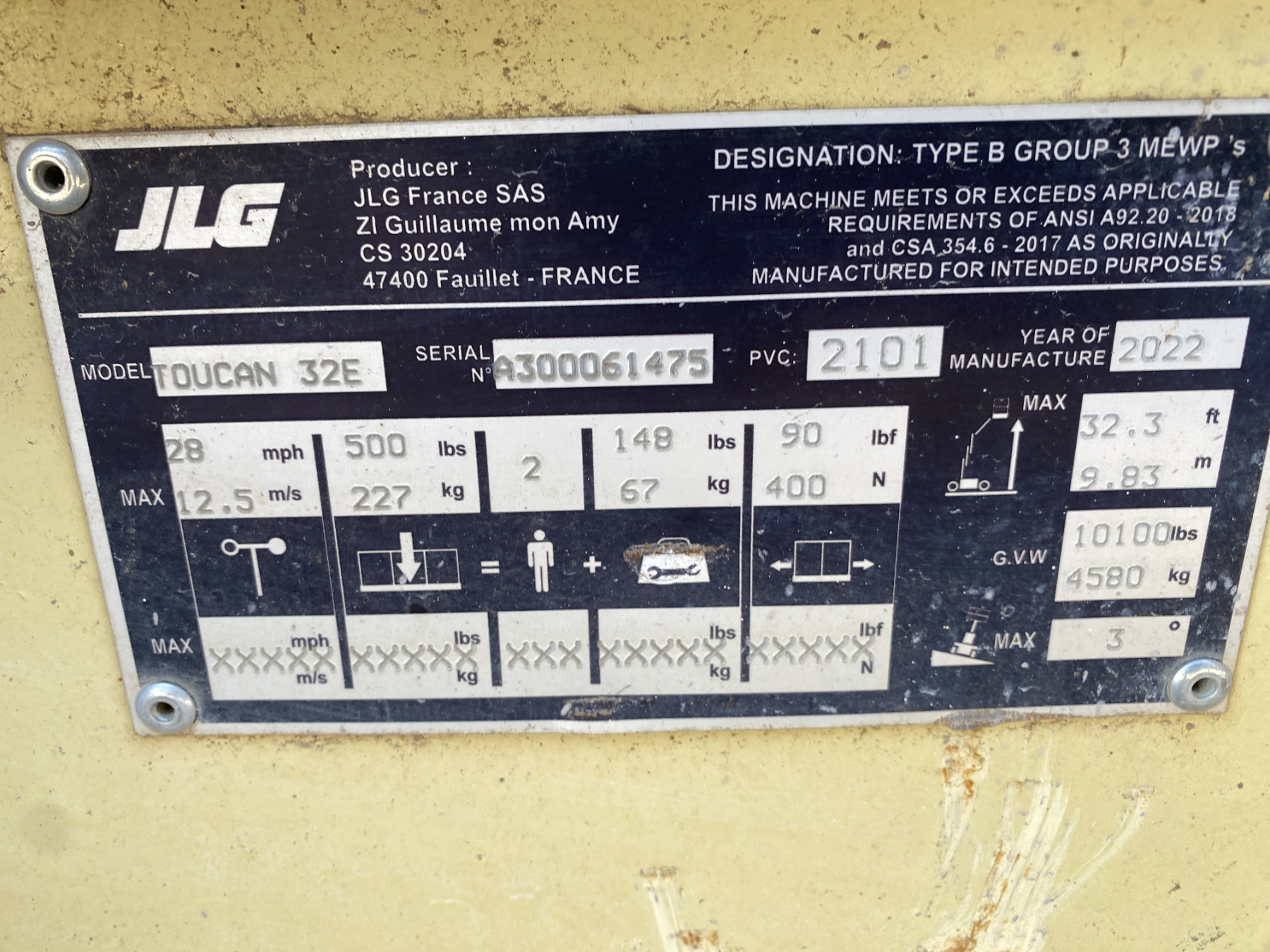 32' platform height, 500 lb. capacity, electric