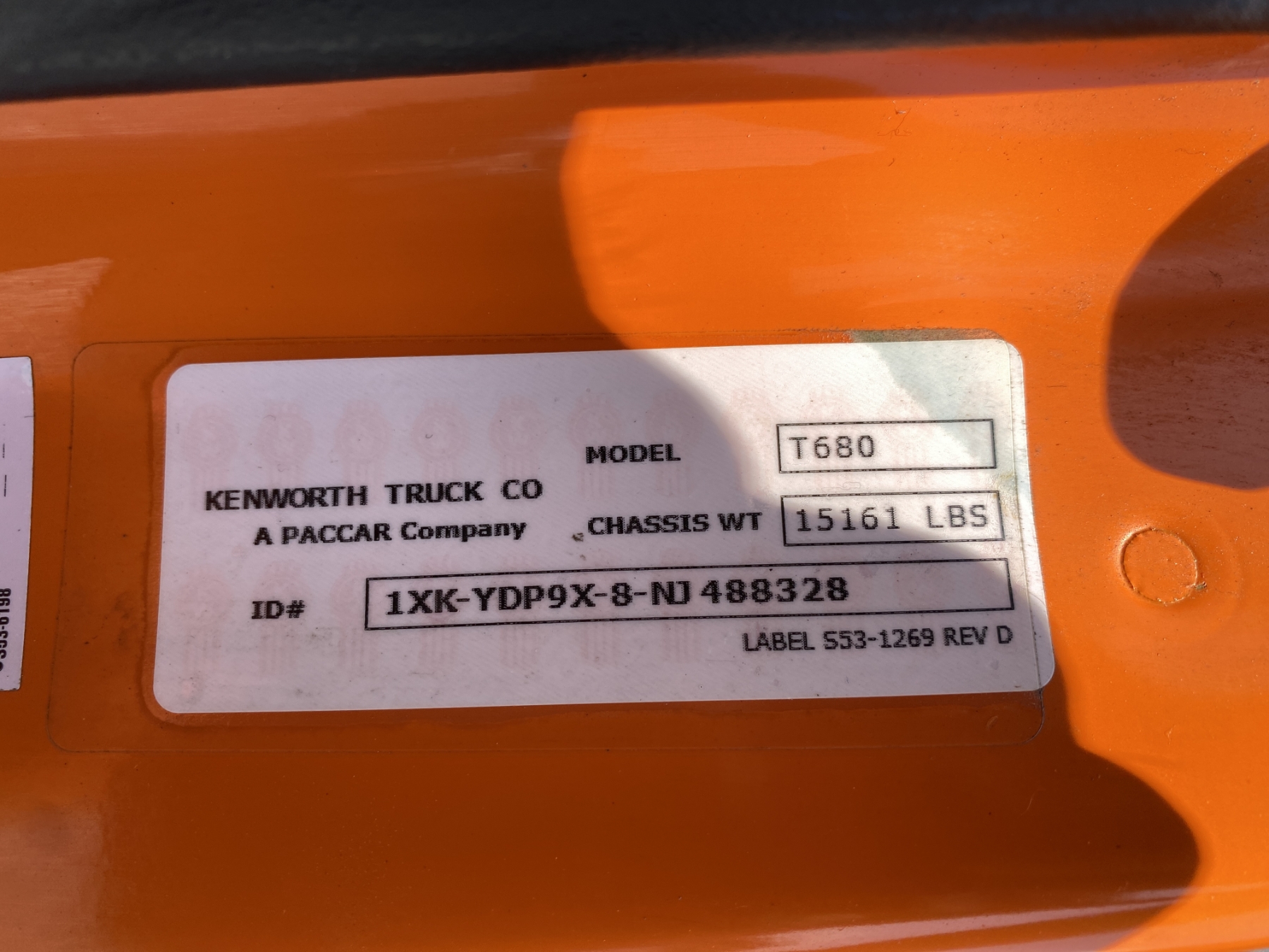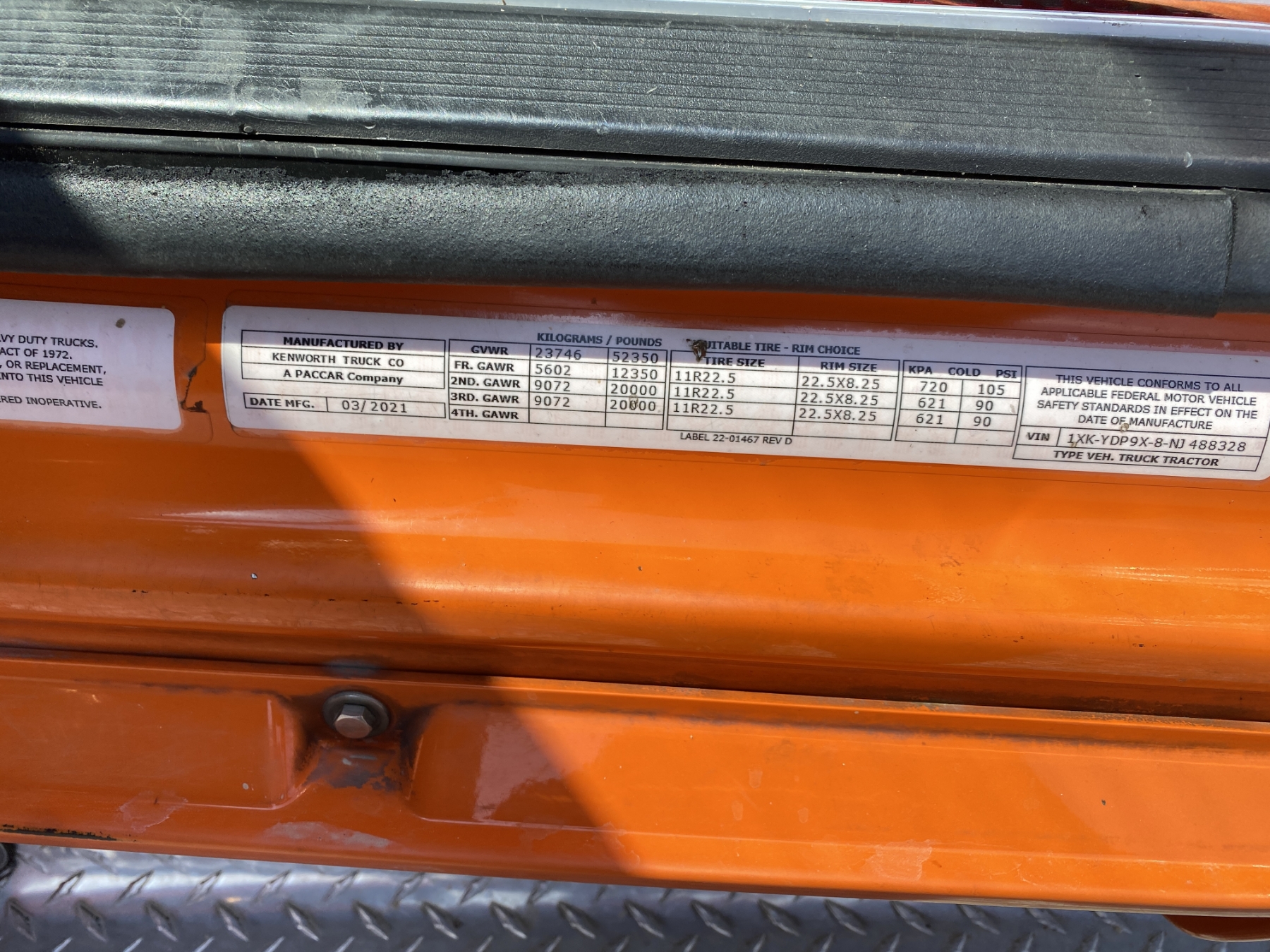 Vehicle ID Number: 1XKYDP9X8NJ488328