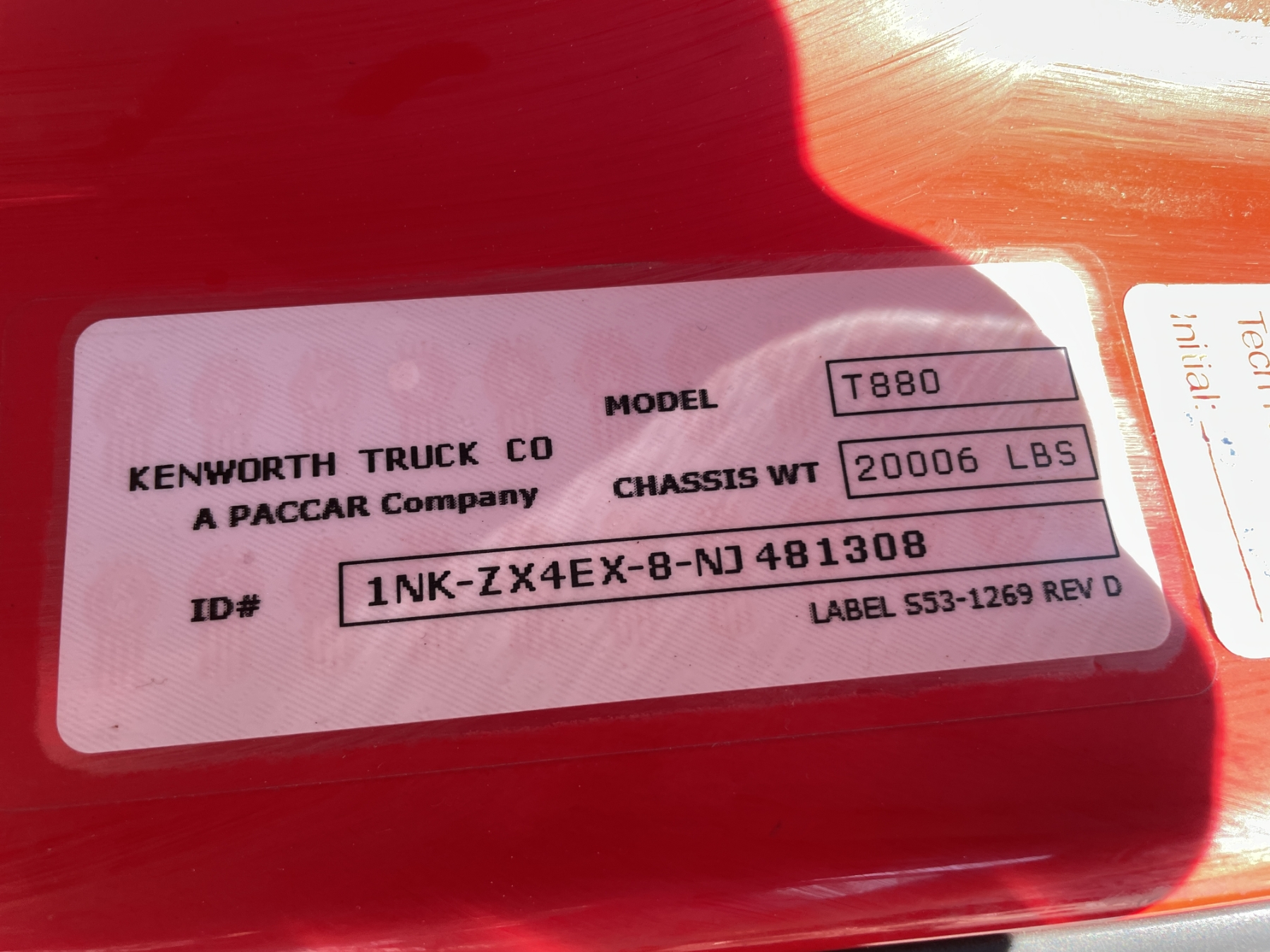 Vehicle ID Number: 1NKZX4EX8NJ481308