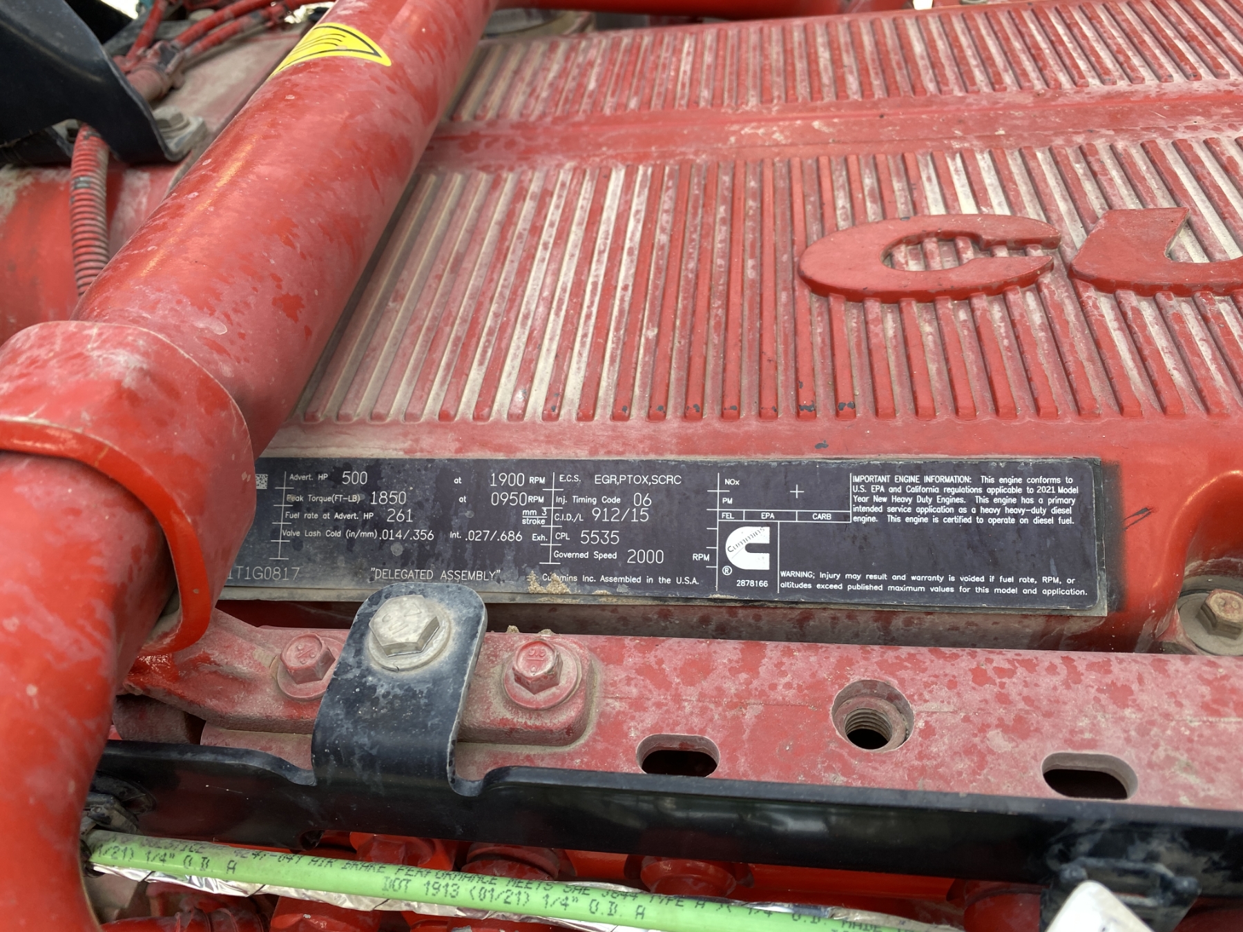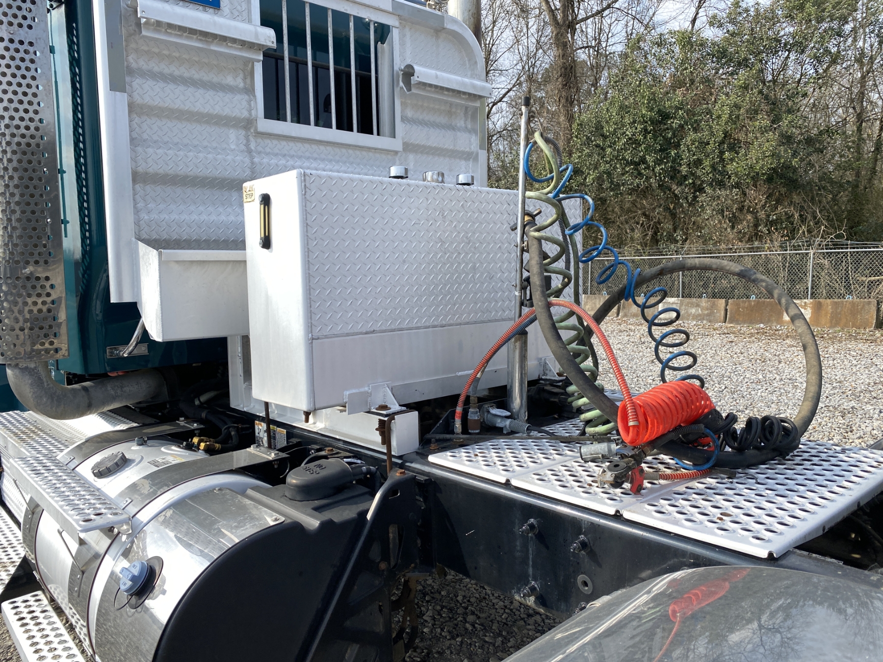 T/A, 500 HP Cummins X15 engine, Eaton 10 speed trans, 46K rears, air ride, 13,200 lb. front, 232" W/B, wet kit, alum headache rack, 11R24.5 tires, all alum
