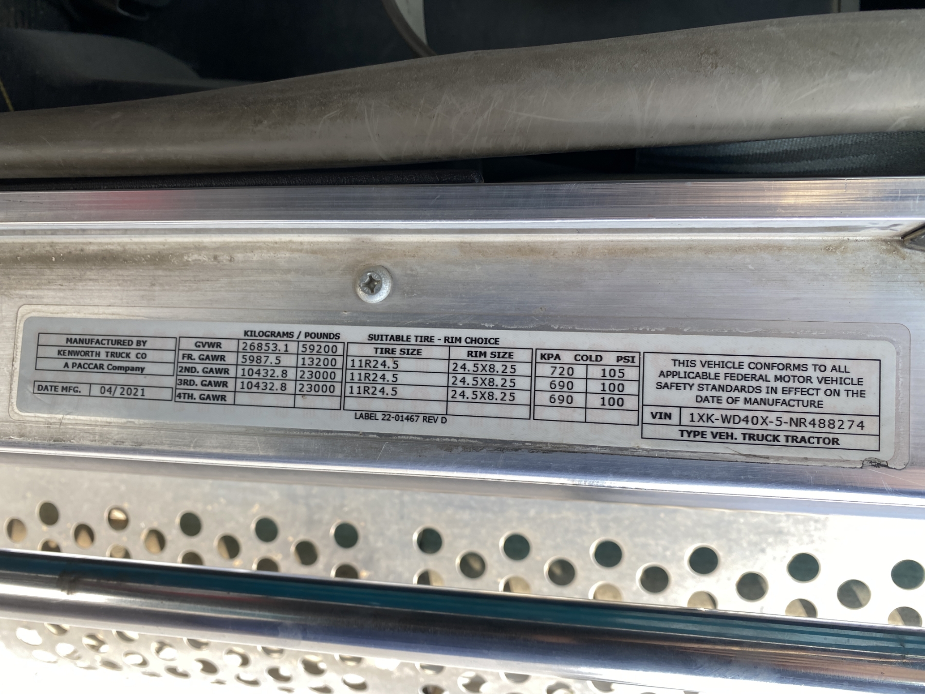 Vehicle ID Number: 1XKWD40X5NR488274