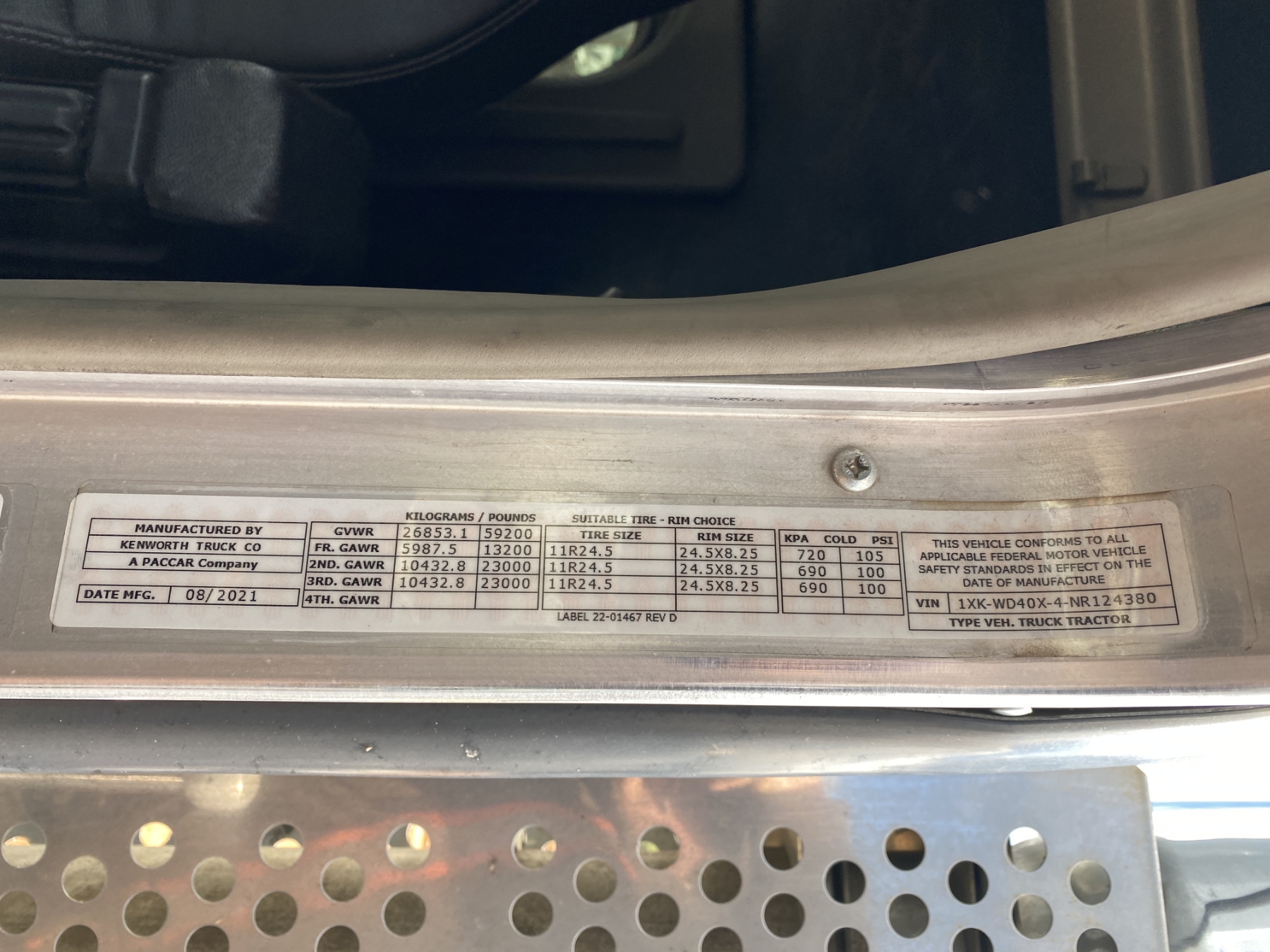 Vehicle ID Number: 1XKWD40X4NR124380
