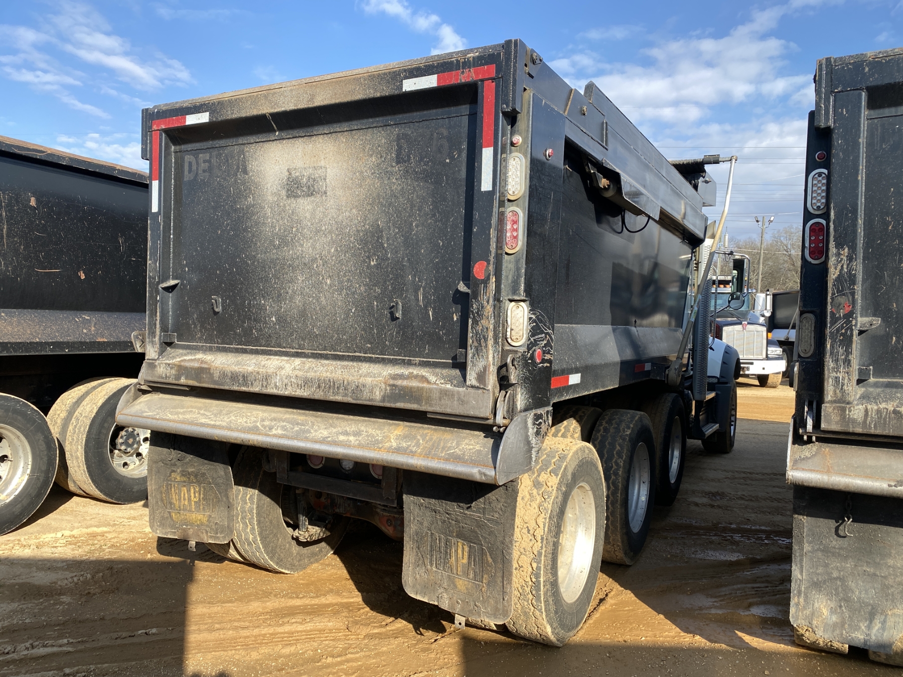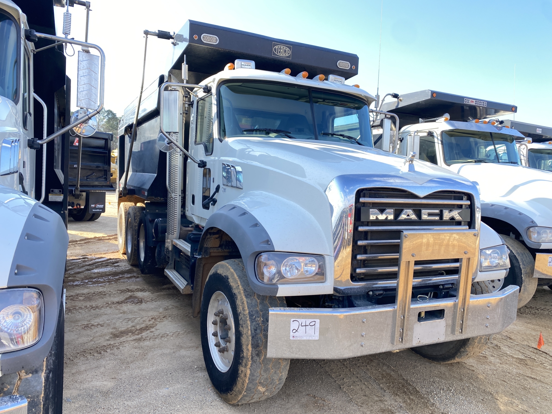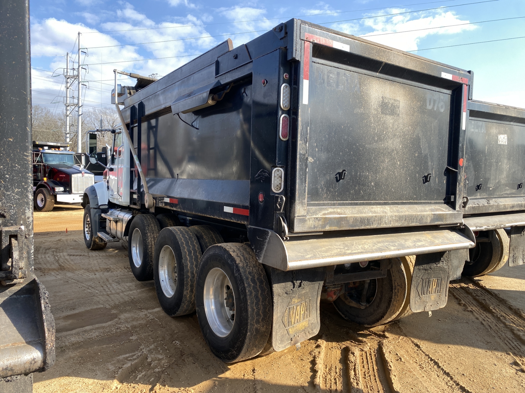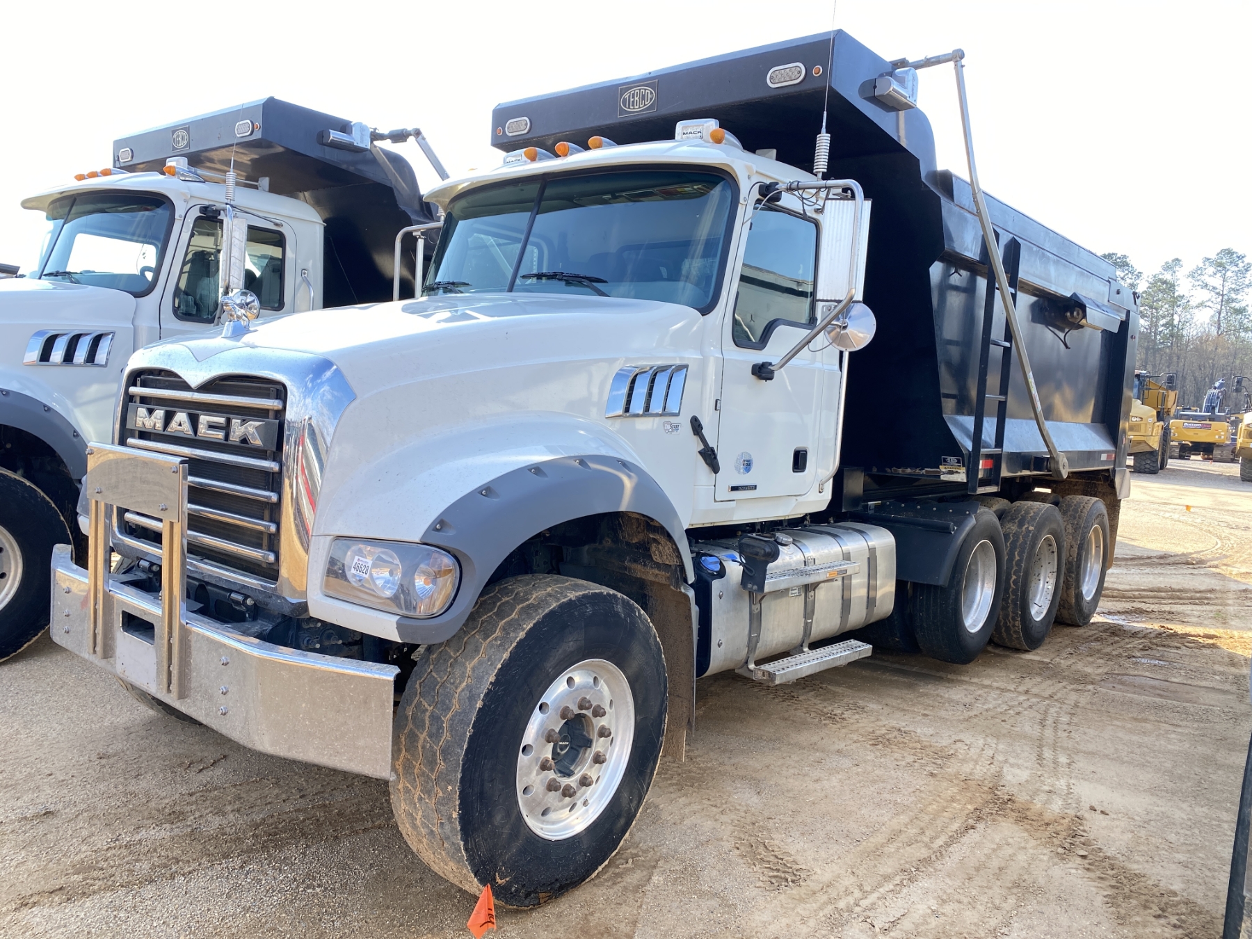Tri Axle, 455 HP Mack MP8 engine, Allison A/T, 46K rears, 18K front, 15.5' Tebco body, high-lift gate, 11R24.5 rear tires, 385/65R22.5 front tires, all alum