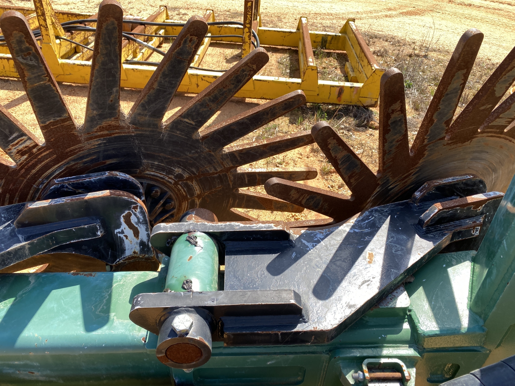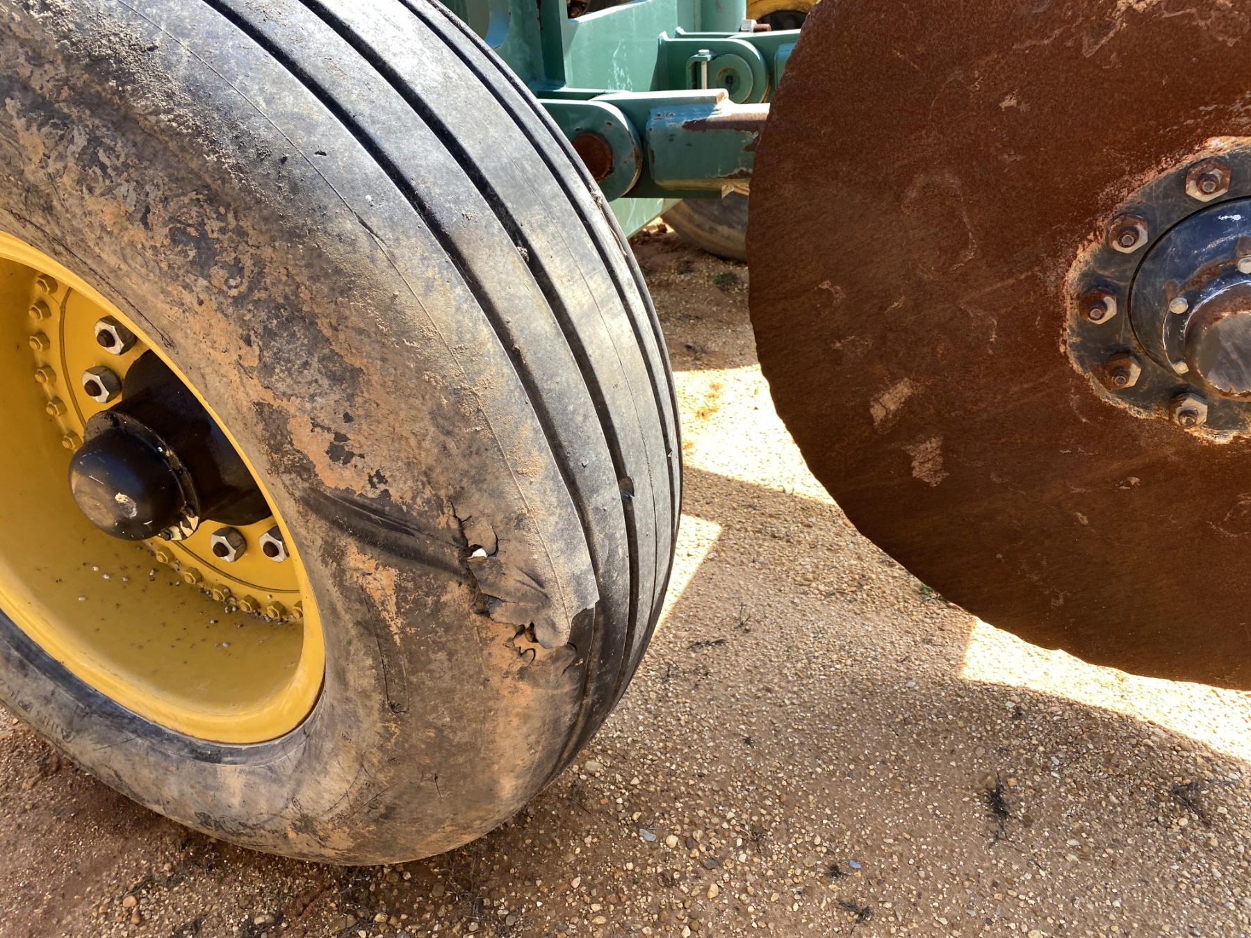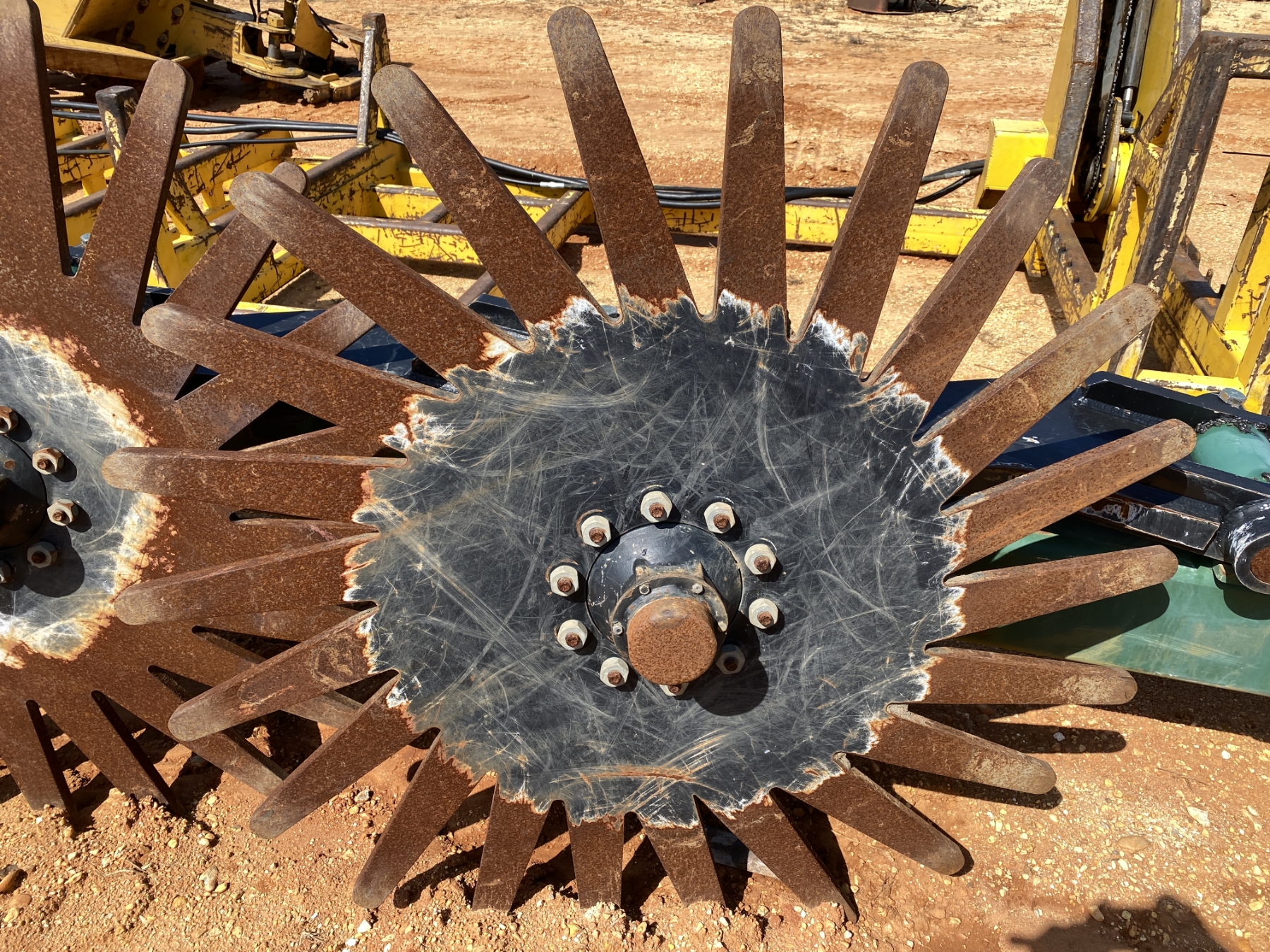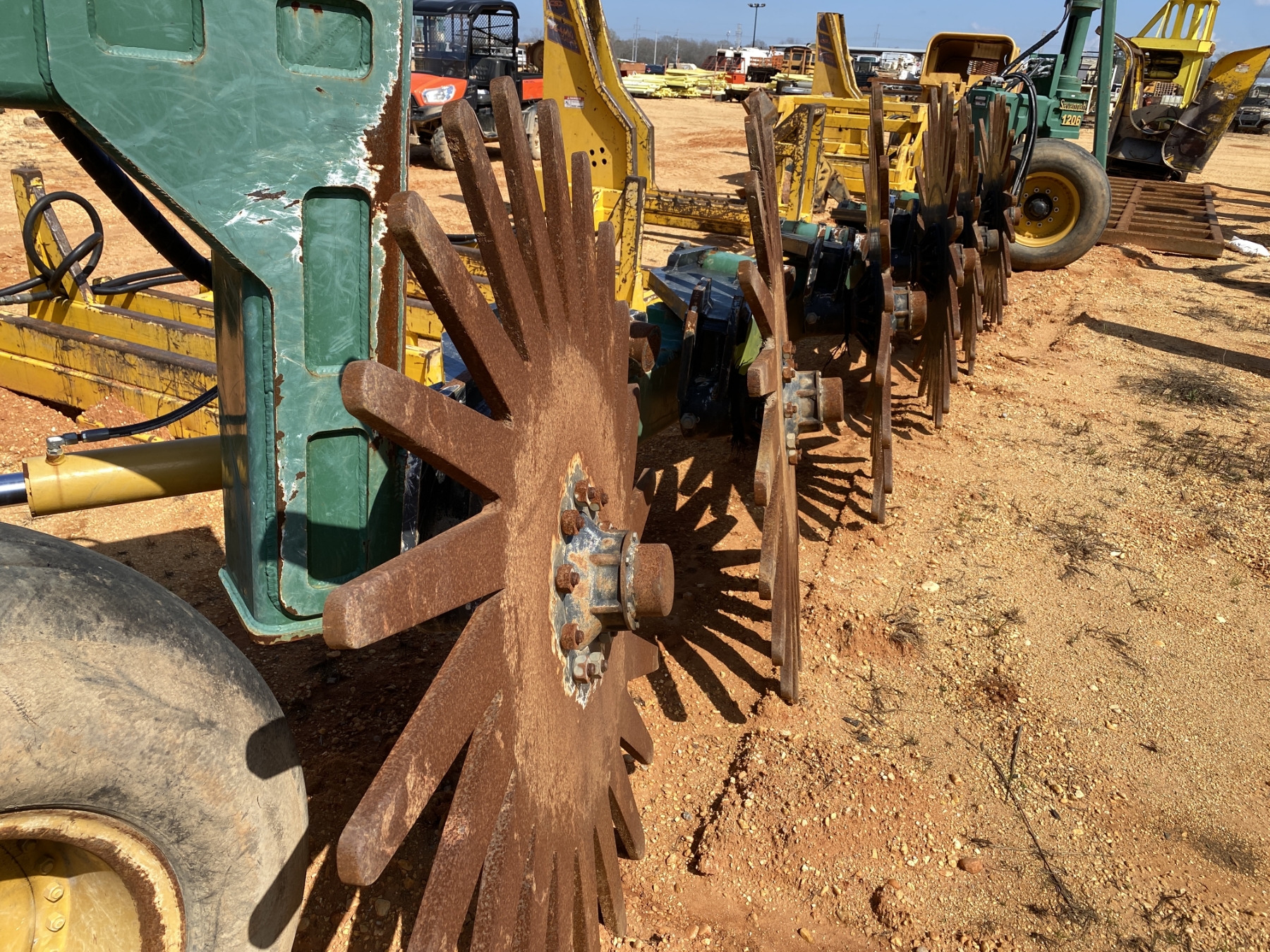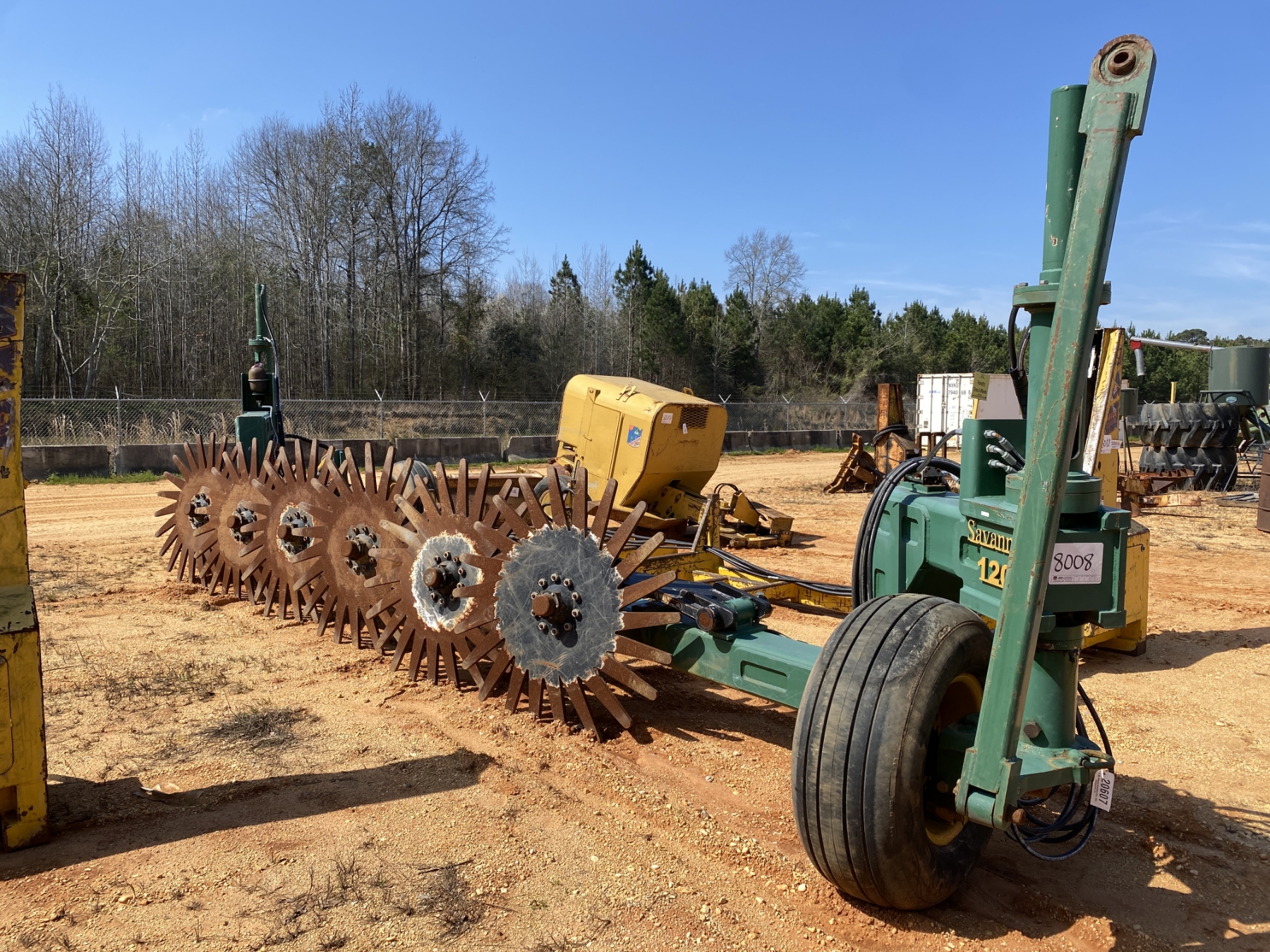 (6) 5' pin wheels, rear wheel coulter, 20x50 flotation tires