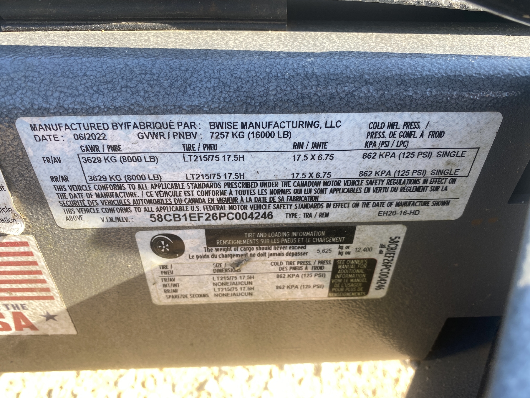 Vehicle ID Number: 58CB1EF26PC004246