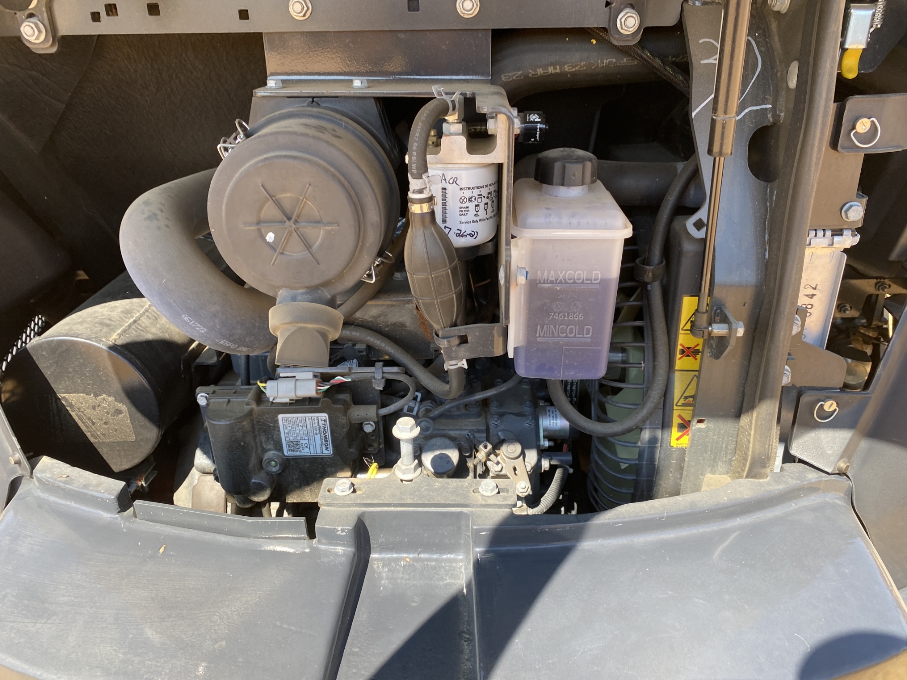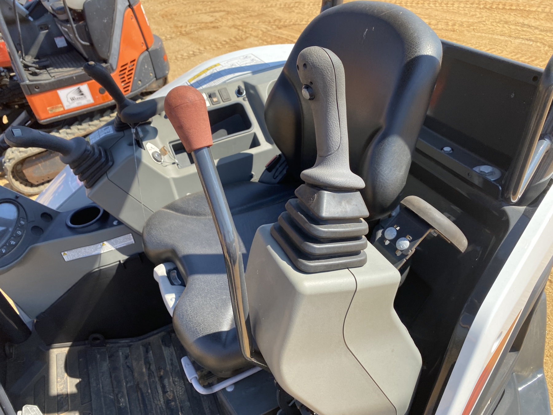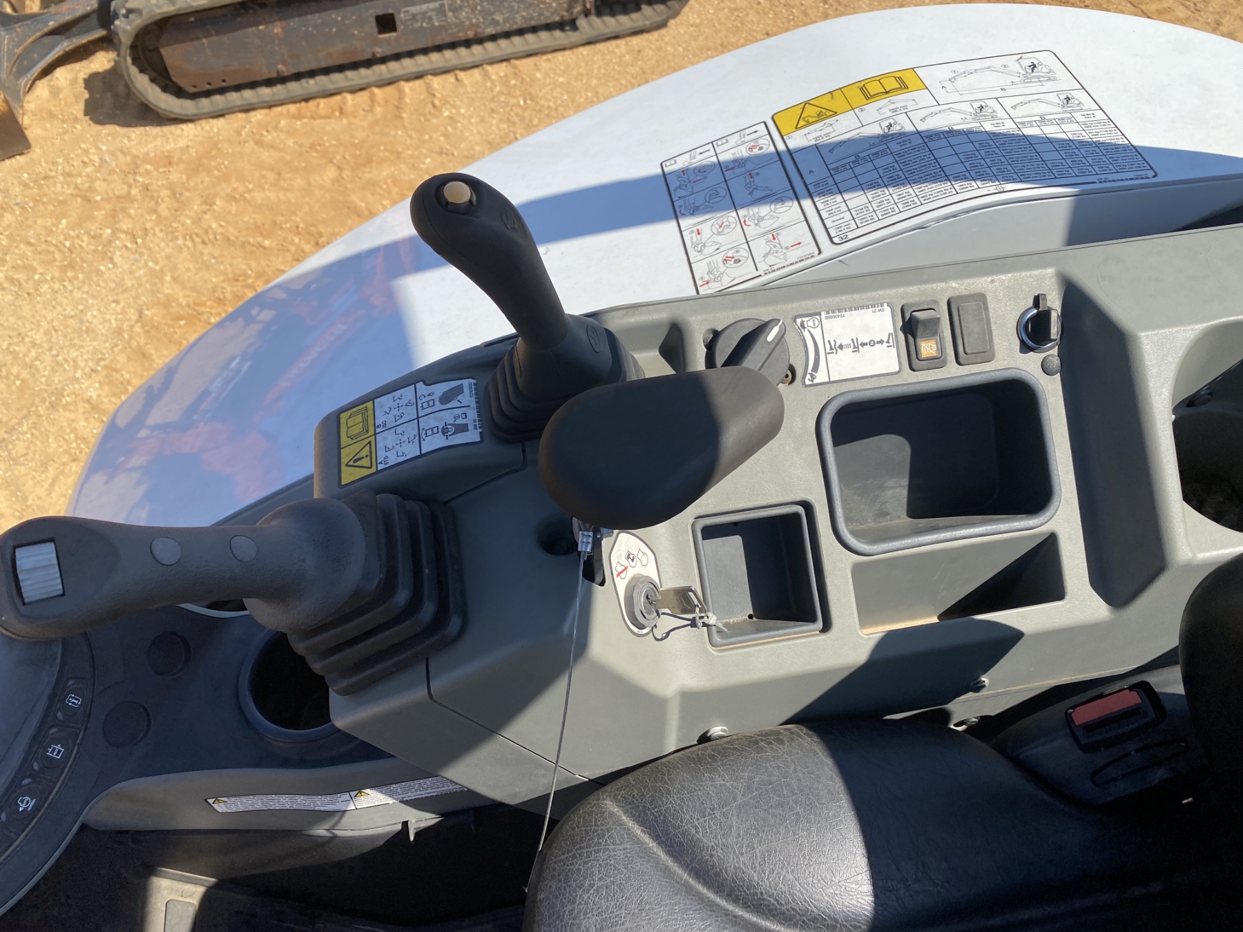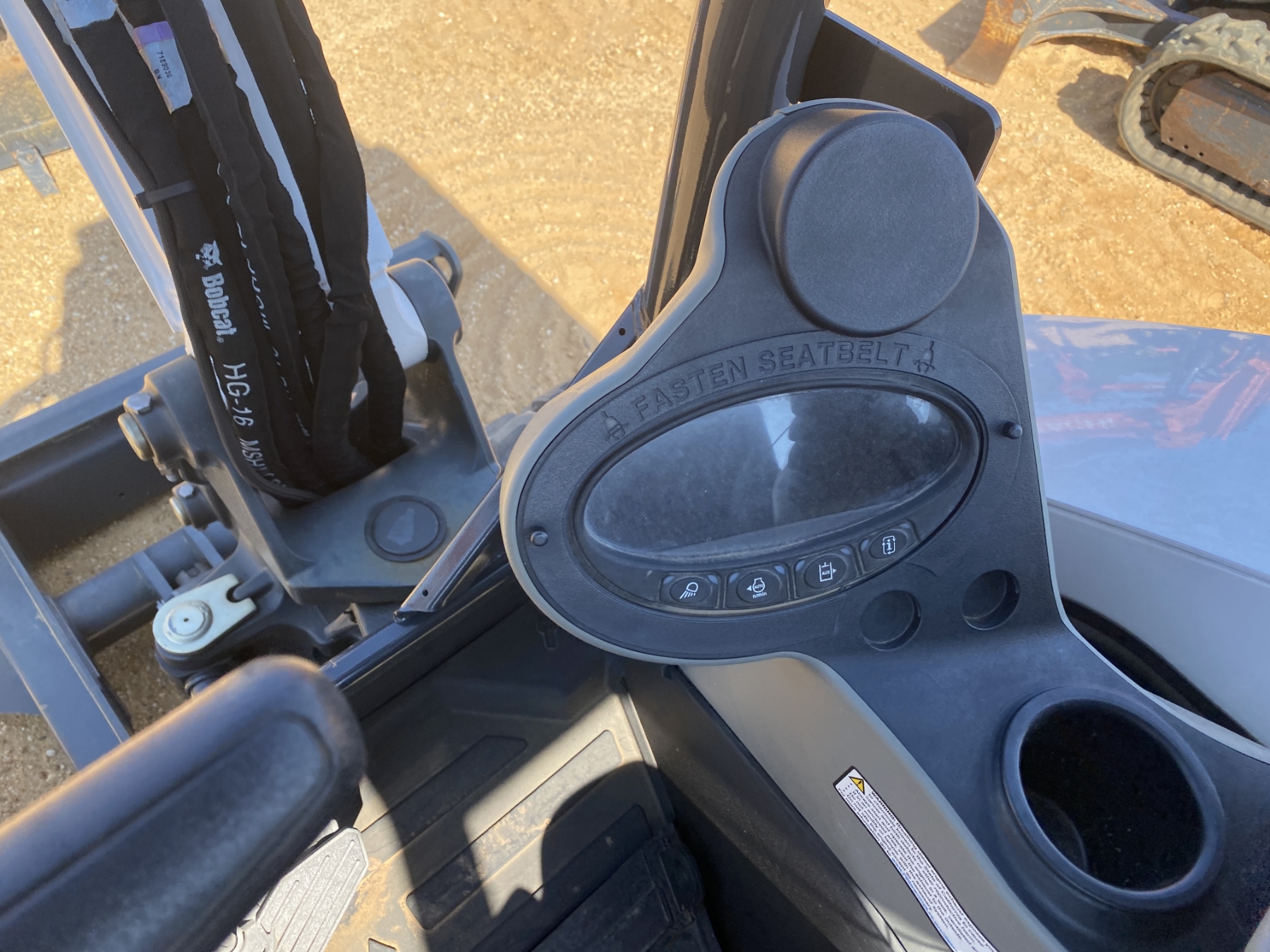 5' 9" stick, 24" bucket, coupler, hyd thumb, aux hyd, blade, canopy